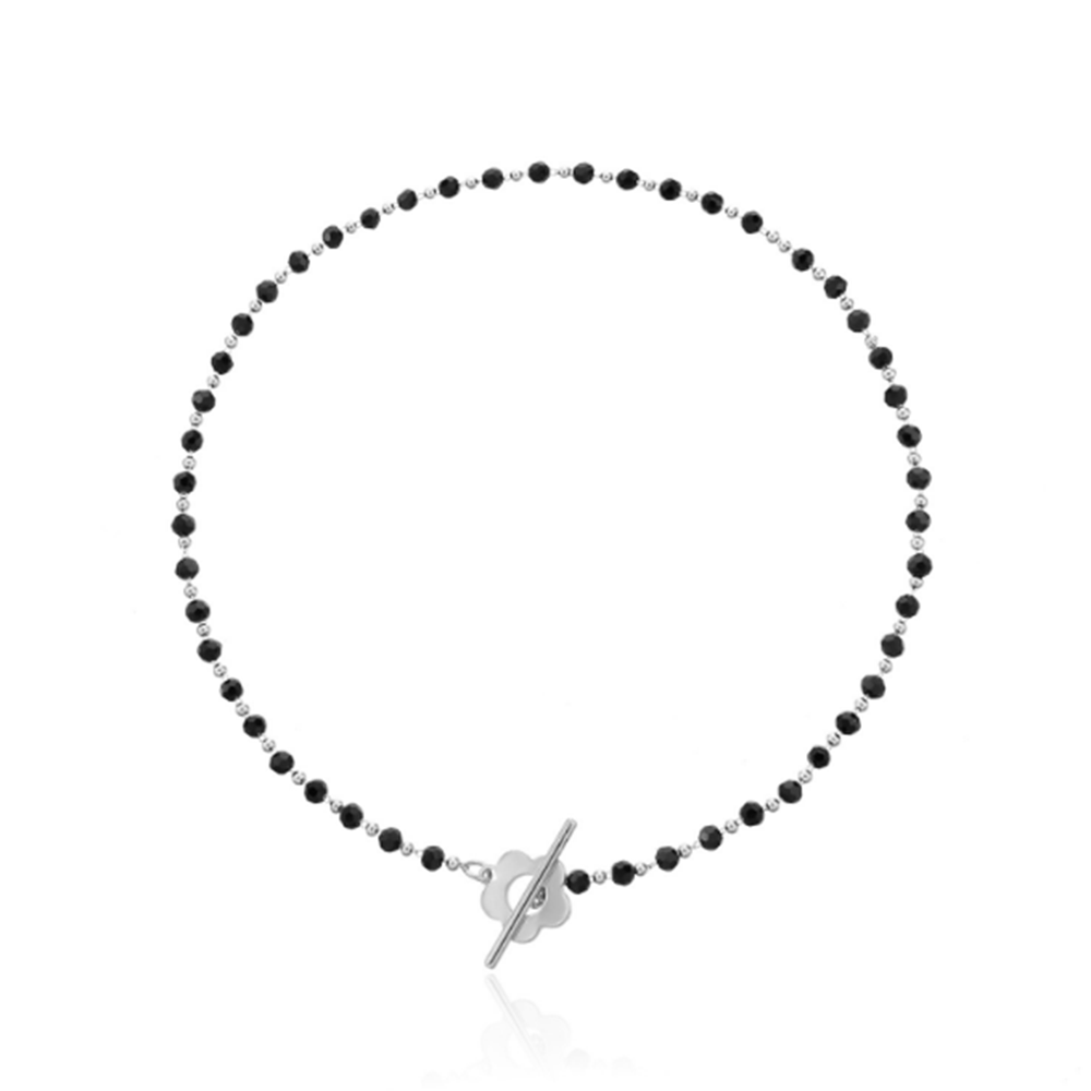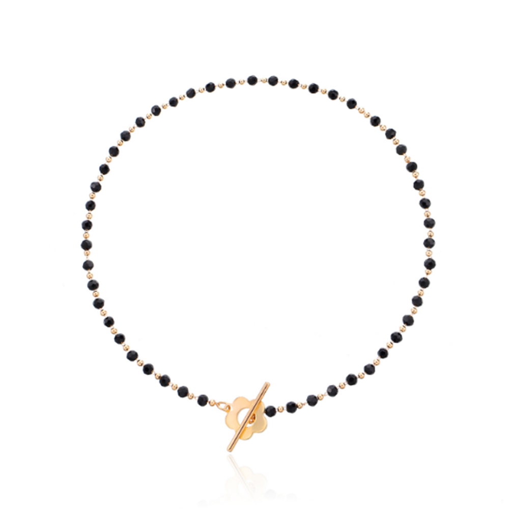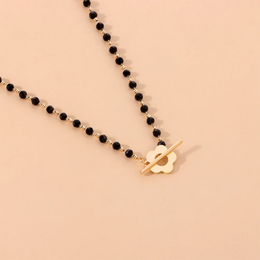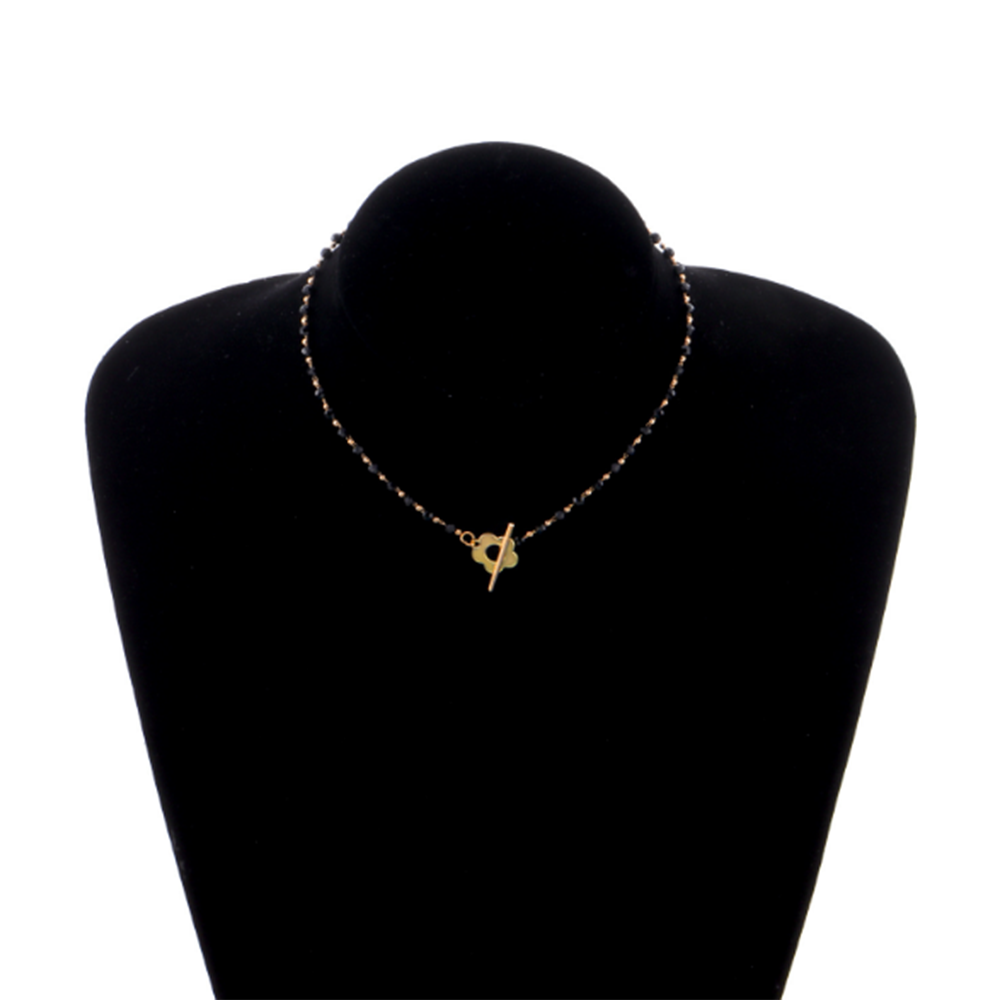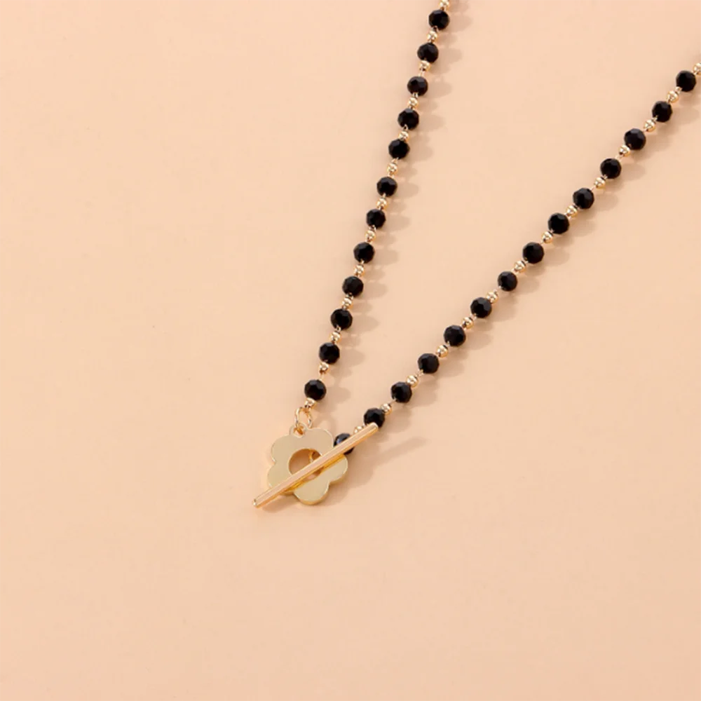 Black Crystal Glass Bead Choker Necklace Flower Lariat Lock Collar Necklace Elegant Temperament Clavicle Chain