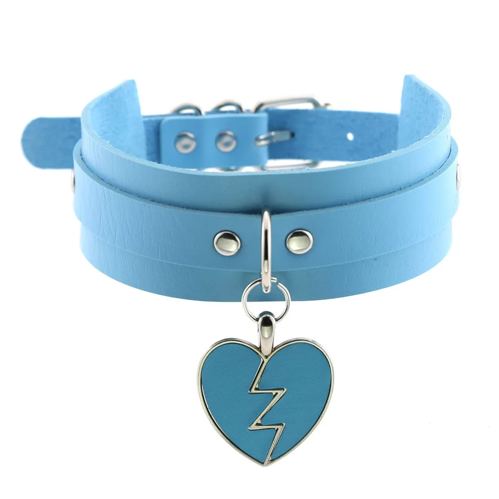 Black Harajuku Spike Round Heart Choker Necklaces Sky Blue Goth Punk Y2K Belt Necklace Women Mens Jewelry Holloween Cosplay Emo