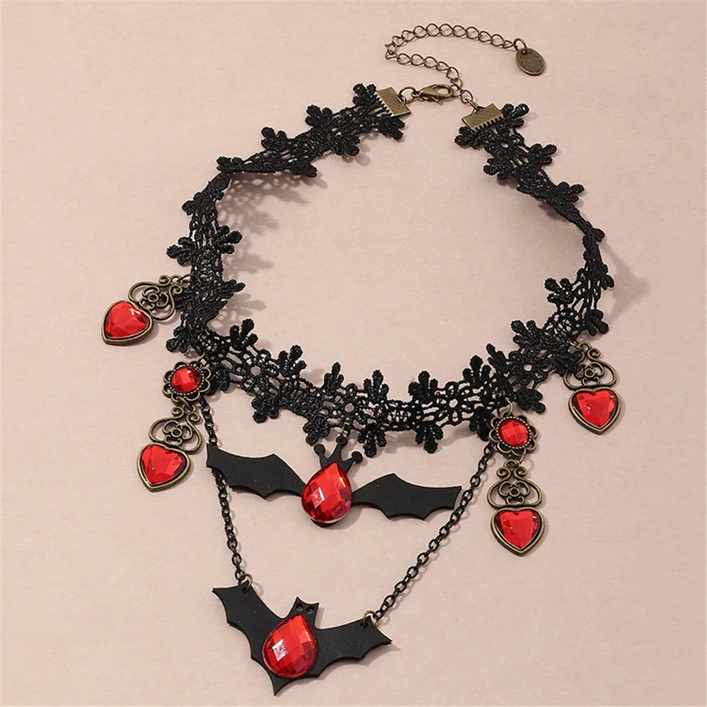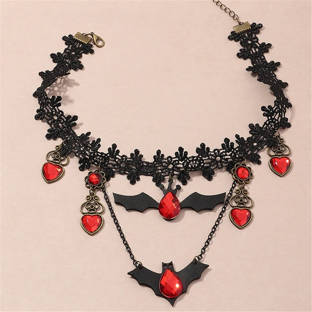 Black Lace Choker Gothic Victorian Necklace with Crystal For Women Girl Halloween Party Custume Vintage Thick Choke Jewelry Gift