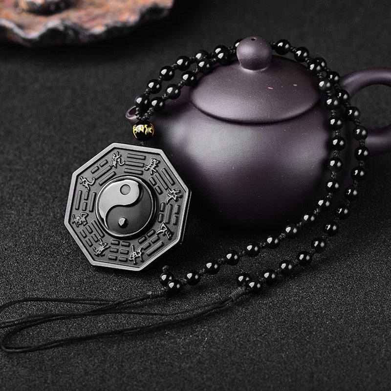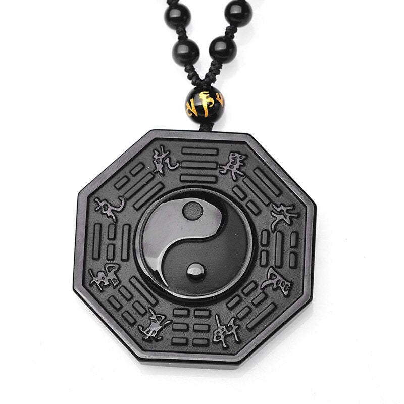 Black Obsidian Chinese Philosophy Taoist Symbol Taichi Yoga Necklace Eight Diagrams Yin Yang Amulet Pendant Jewelry