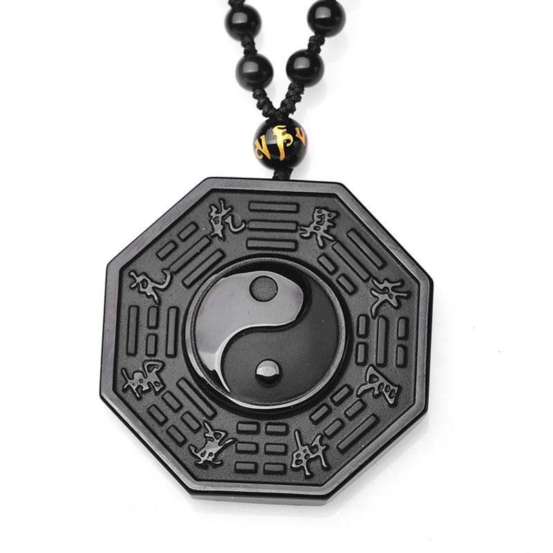Black Obsidian Necklace Chinese Ying Yang Eight Diagrams Amulet Pendant Jewelry