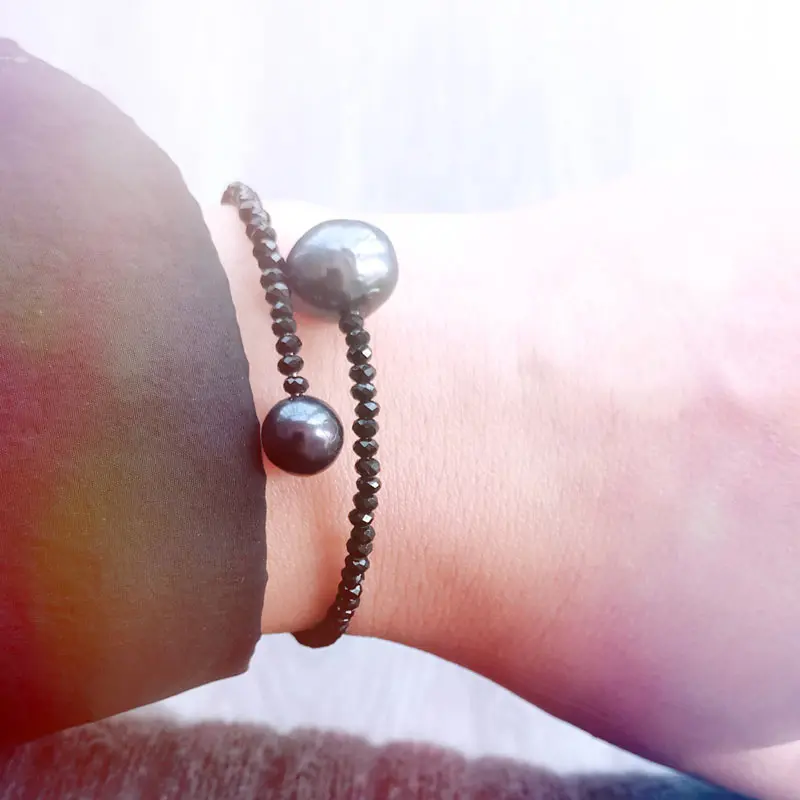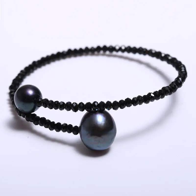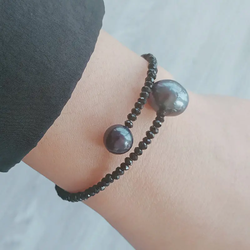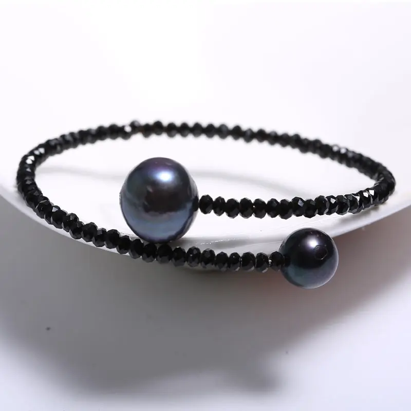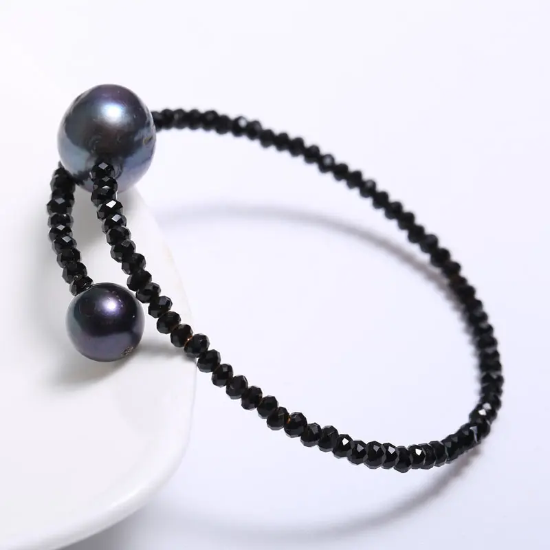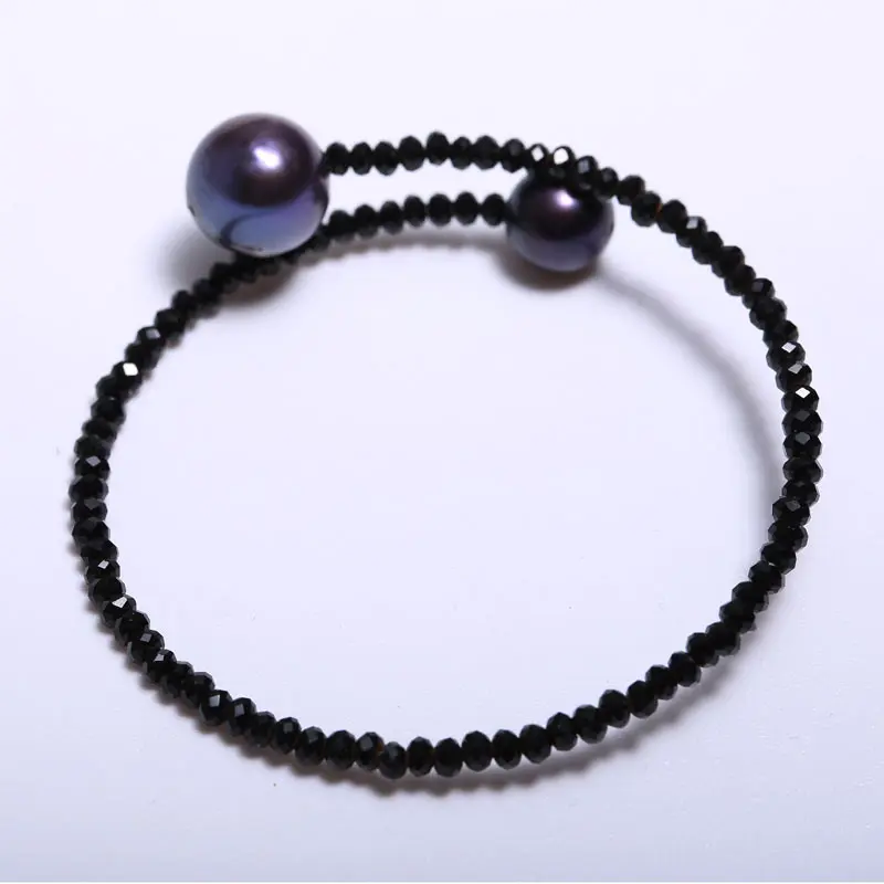 Black Pearl Bracelet Pearl Crystal Size 8 to 11 mm Diameter 3 mm Crystal, Holid Gifts