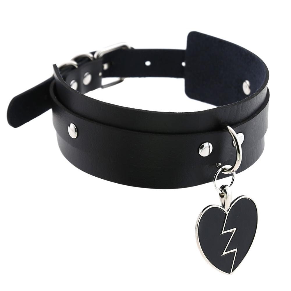 Black Punk Heart Choker Collar Goth Anime Necklaces Kawaii Leather Harness Choker Women Girls Rock Harajuku Emo Gothic Jewelry