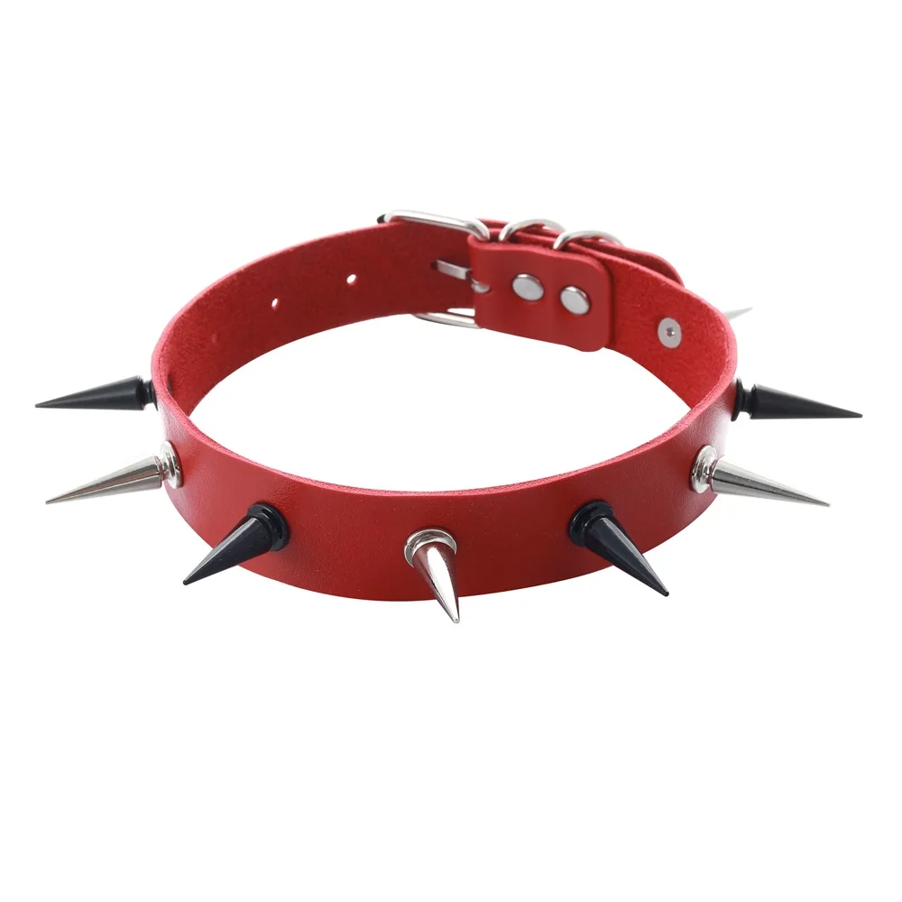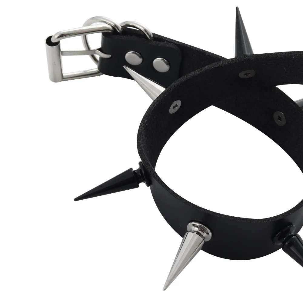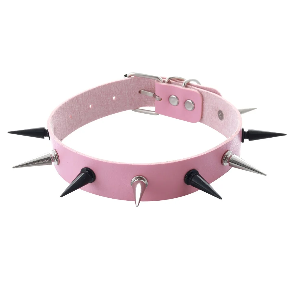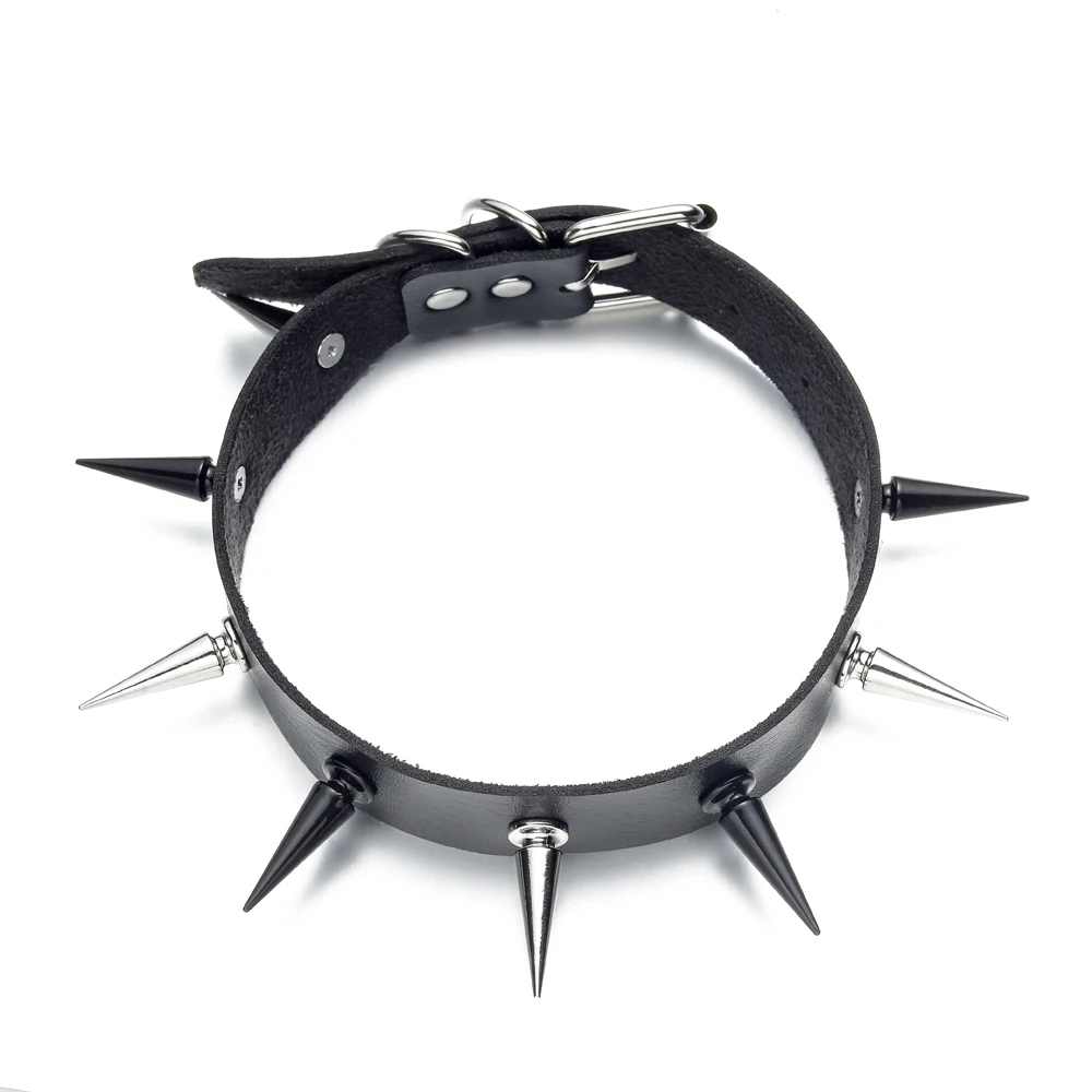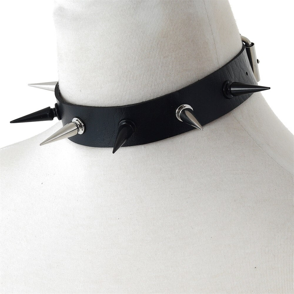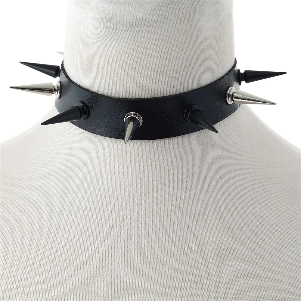 Black Spike Choker Punk Faux Leather Collar For Girls Handmade Chocker Goth Style Necklace Gothic Accessories