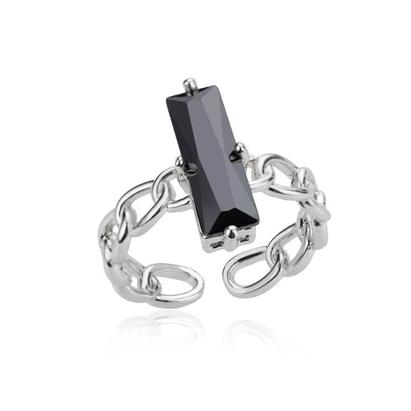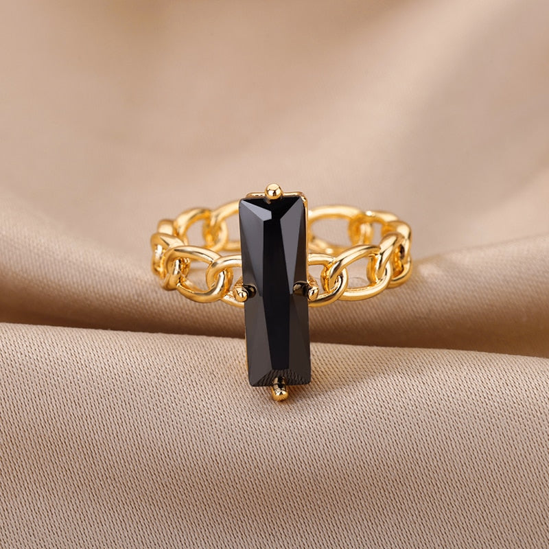 Black Zircon Rings for Women Open Adjustable Stainless Steel Chains Finger Ring 2023 Trend Wedding Jewelry Gift anillos mujer
