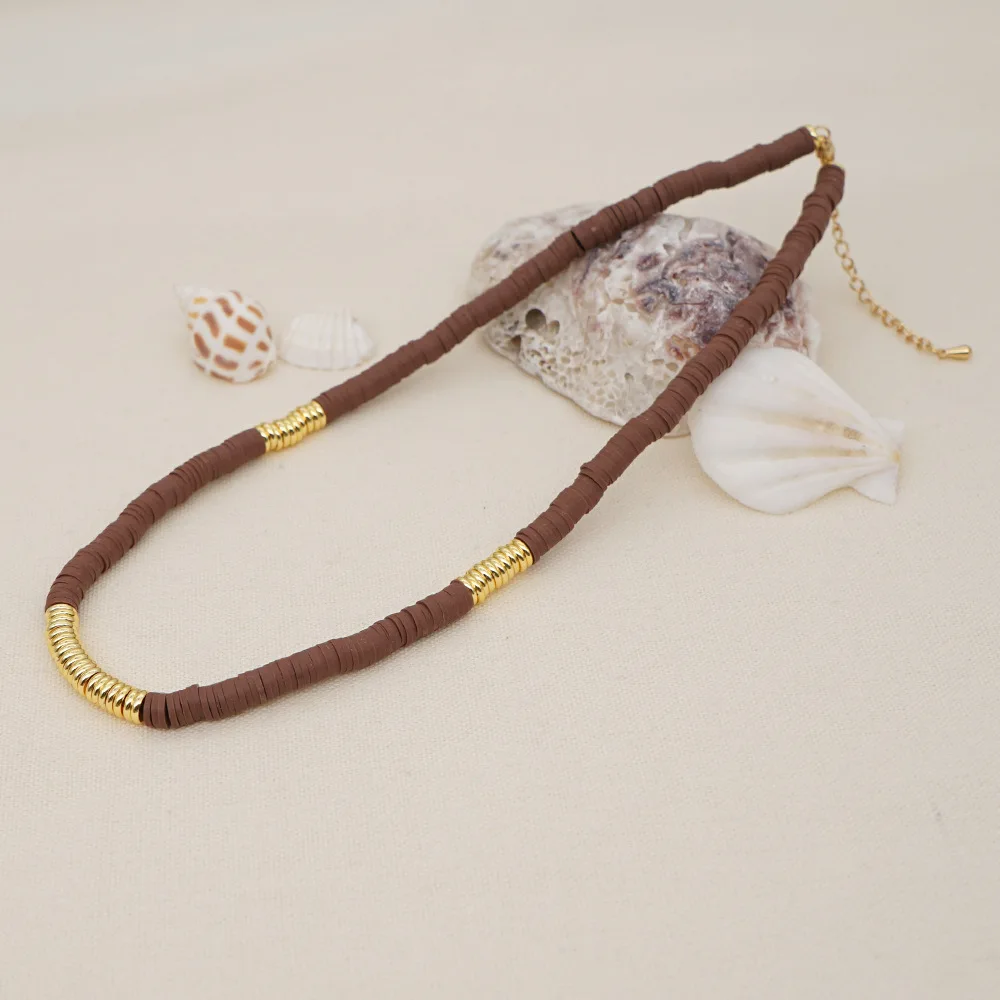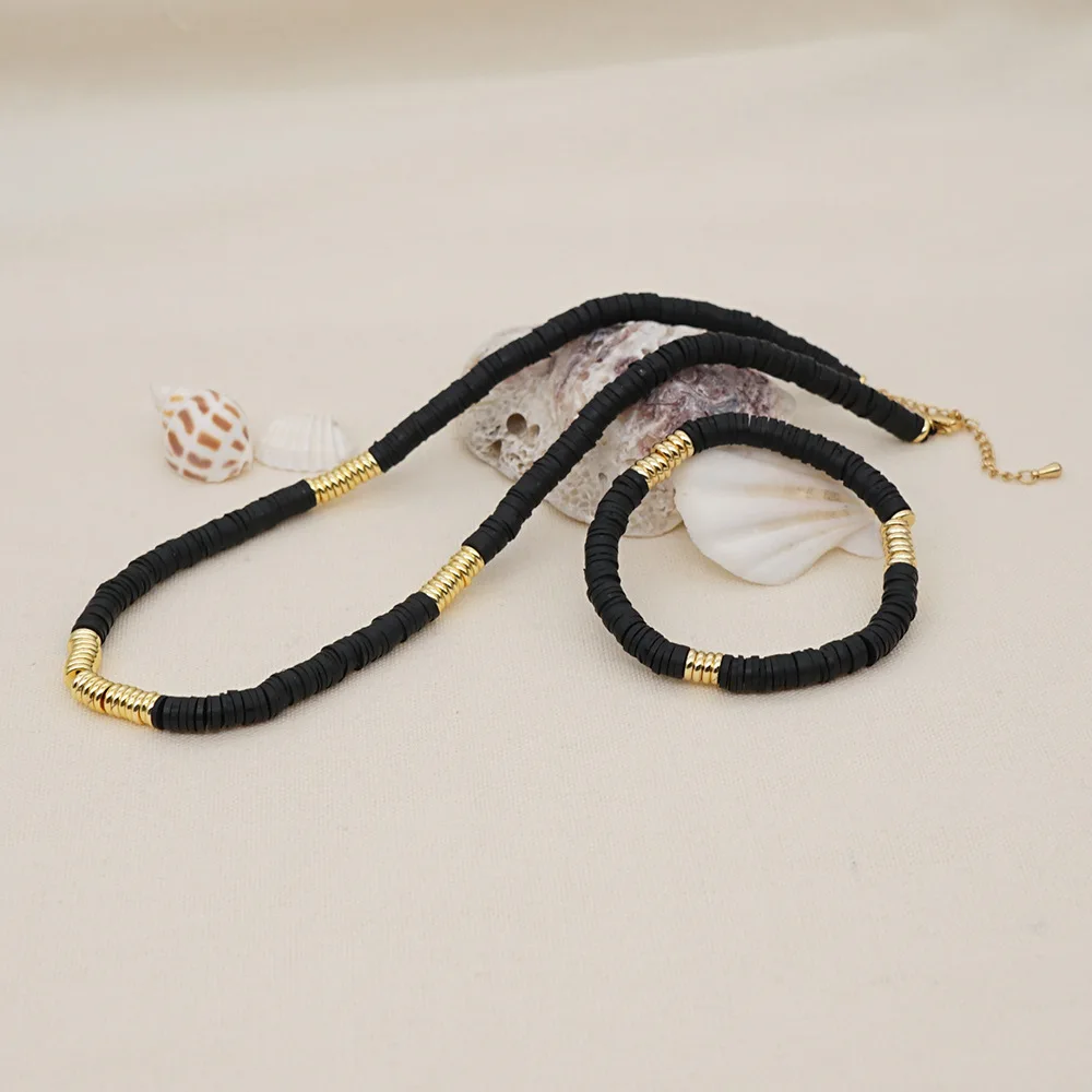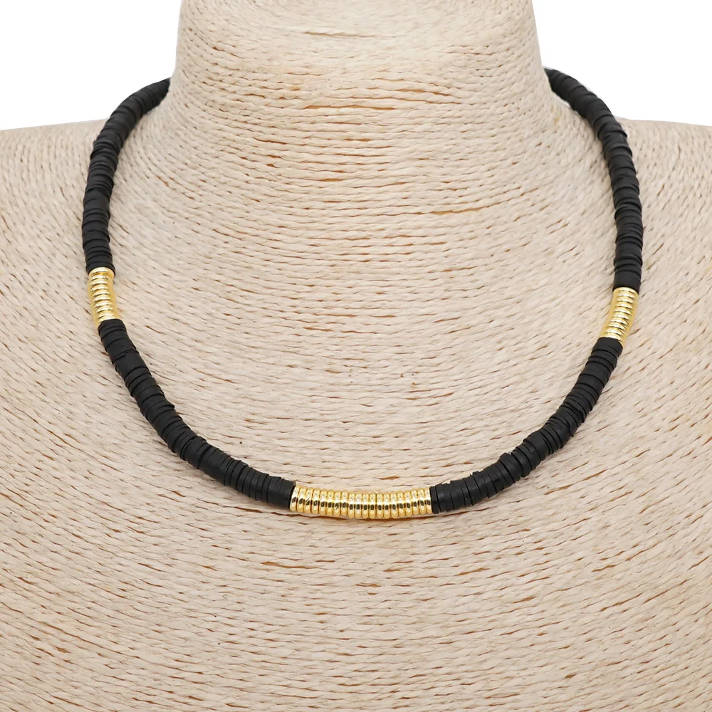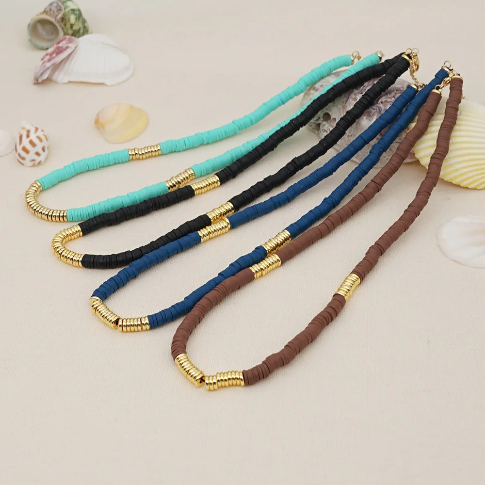 BLIN Color Soft Pottery Gold Stainless Steel Round Piece Strand Chokers Necklaces Women Ethnic African Necklace Jewelry
