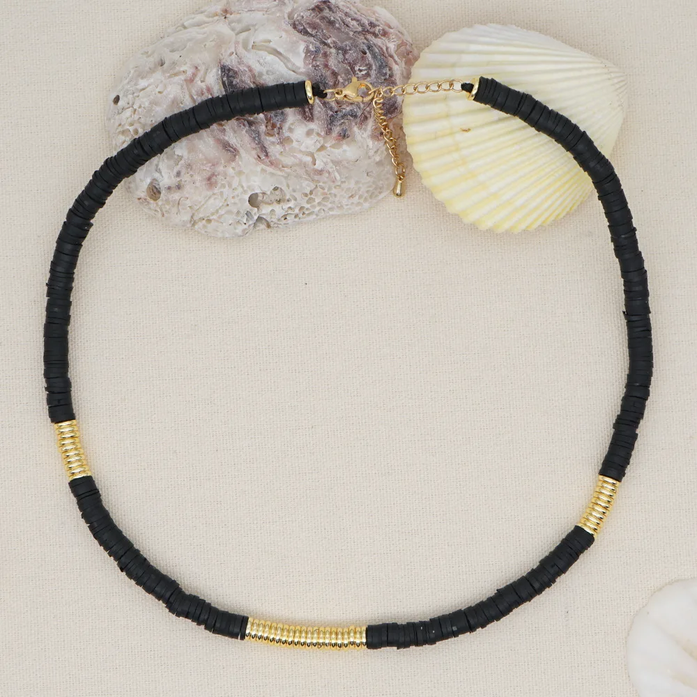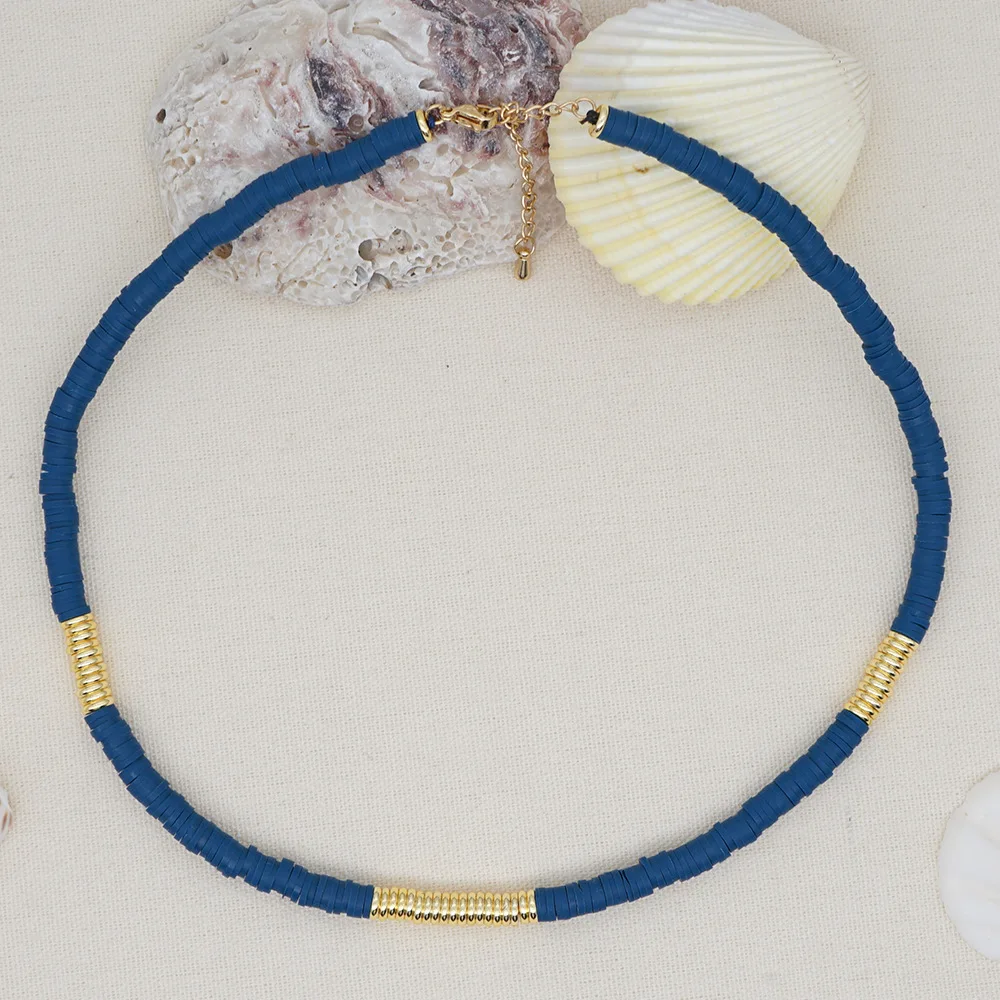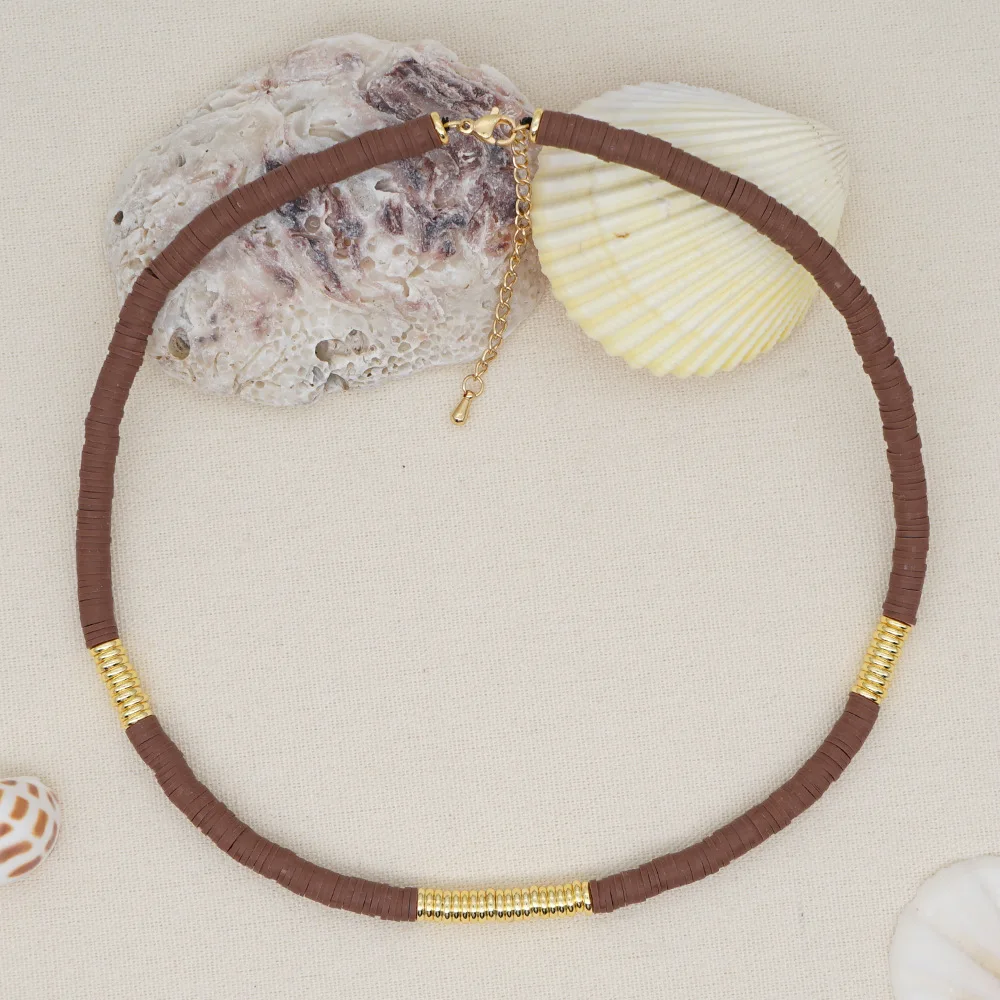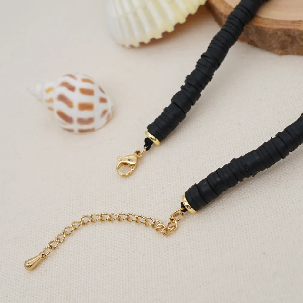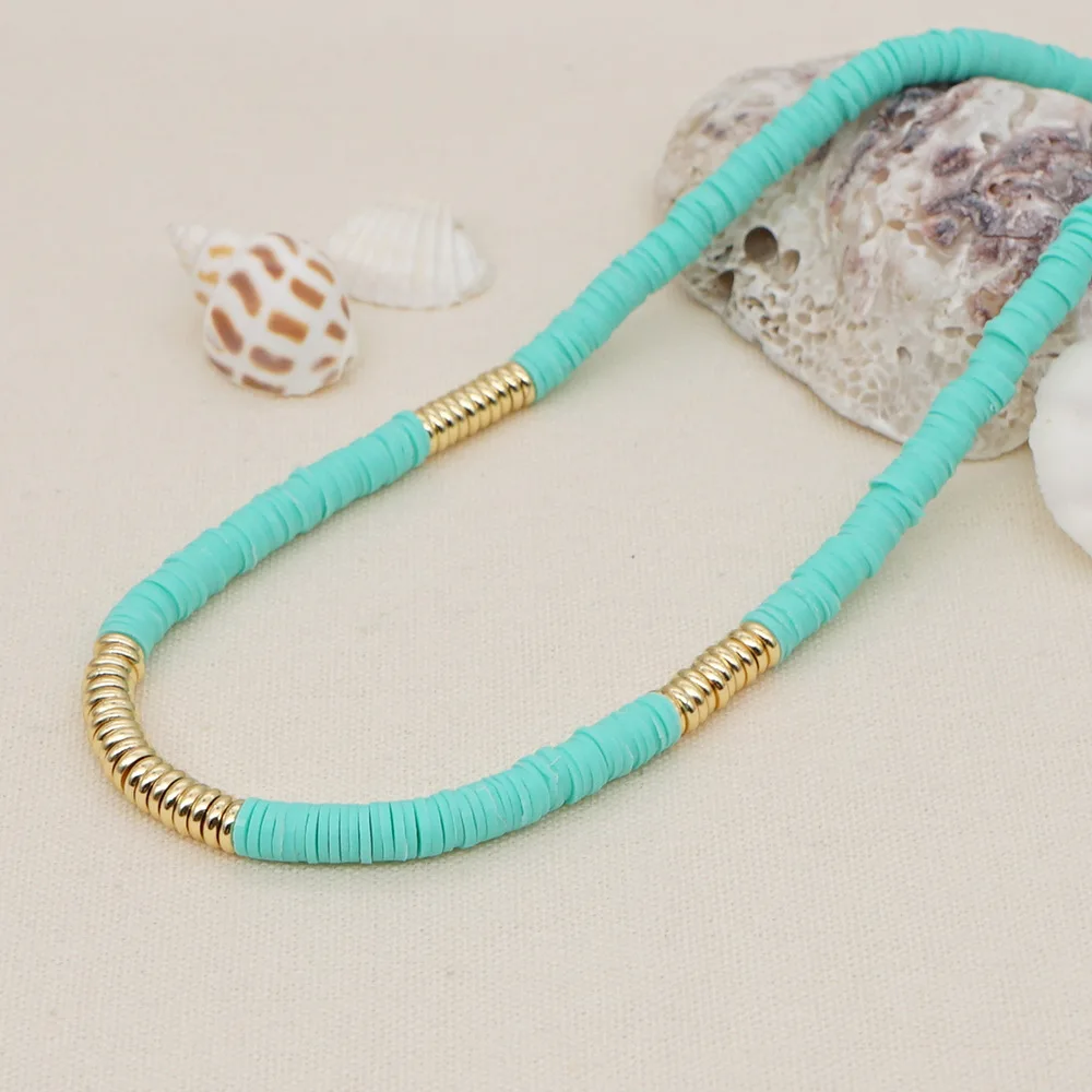 BLIN Color Soft Pottery Gold Stainless Steel Round Piece Strand Chokers Necklaces Women Ethnic African Necklace Jewelry