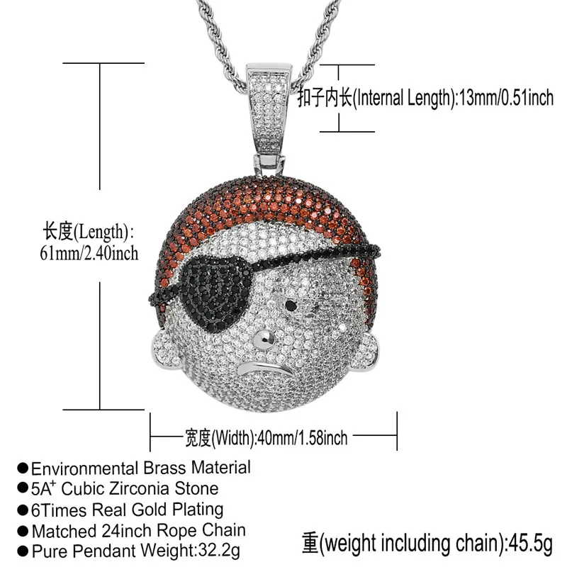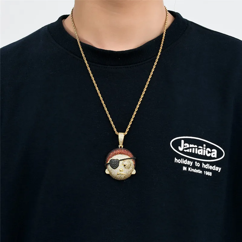 Bling Cartoon Boy Figure Pendant Necklace Iced Out AAA Zircon Anime Necklace Rap Hip Hop Jewelry