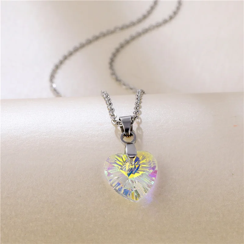 Bling Crystal Colorful Heart Pendant Necklace Exquisite Stainless Steel Women Choker Wedding Bridal Jewelry