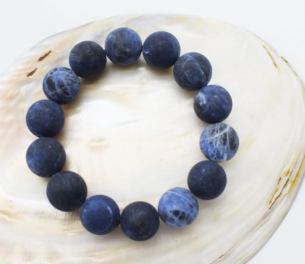 blue blurry sodalite agate round 14mm bracelet 7.5inch beads nature