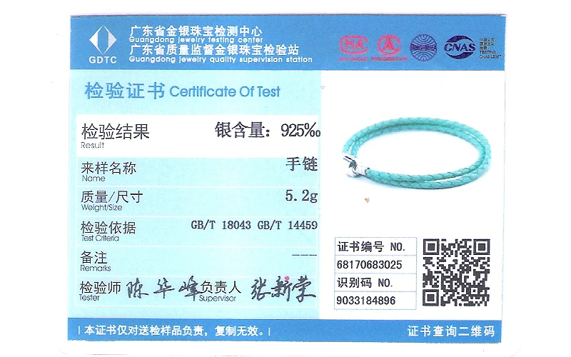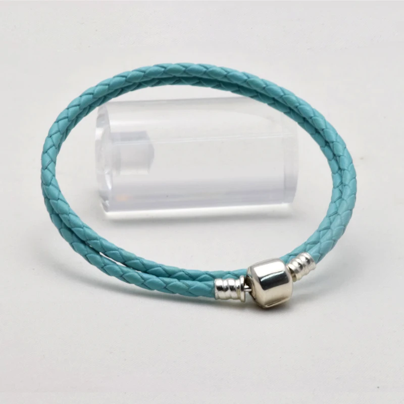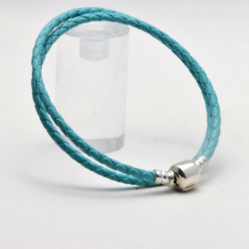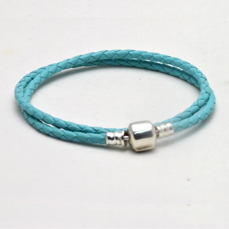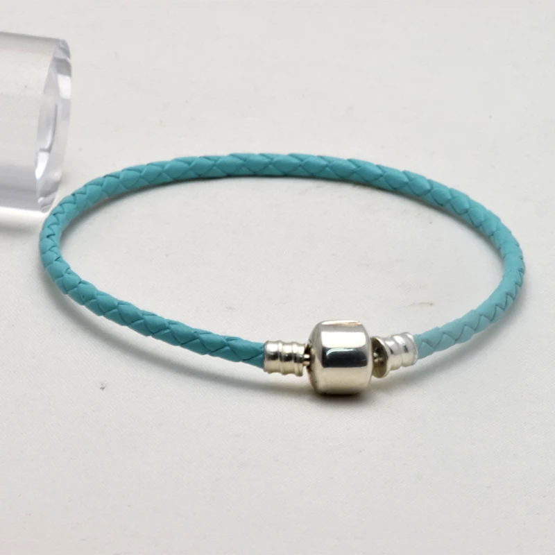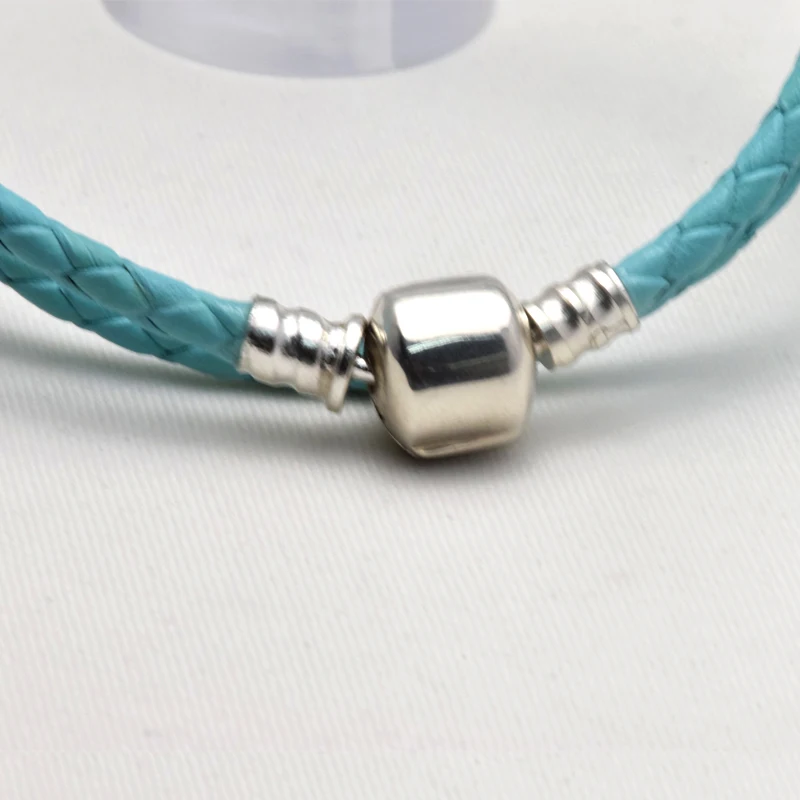 Blue Leather Bracelets 100% 925 Authentic Sterling Silver Fine Jewelry