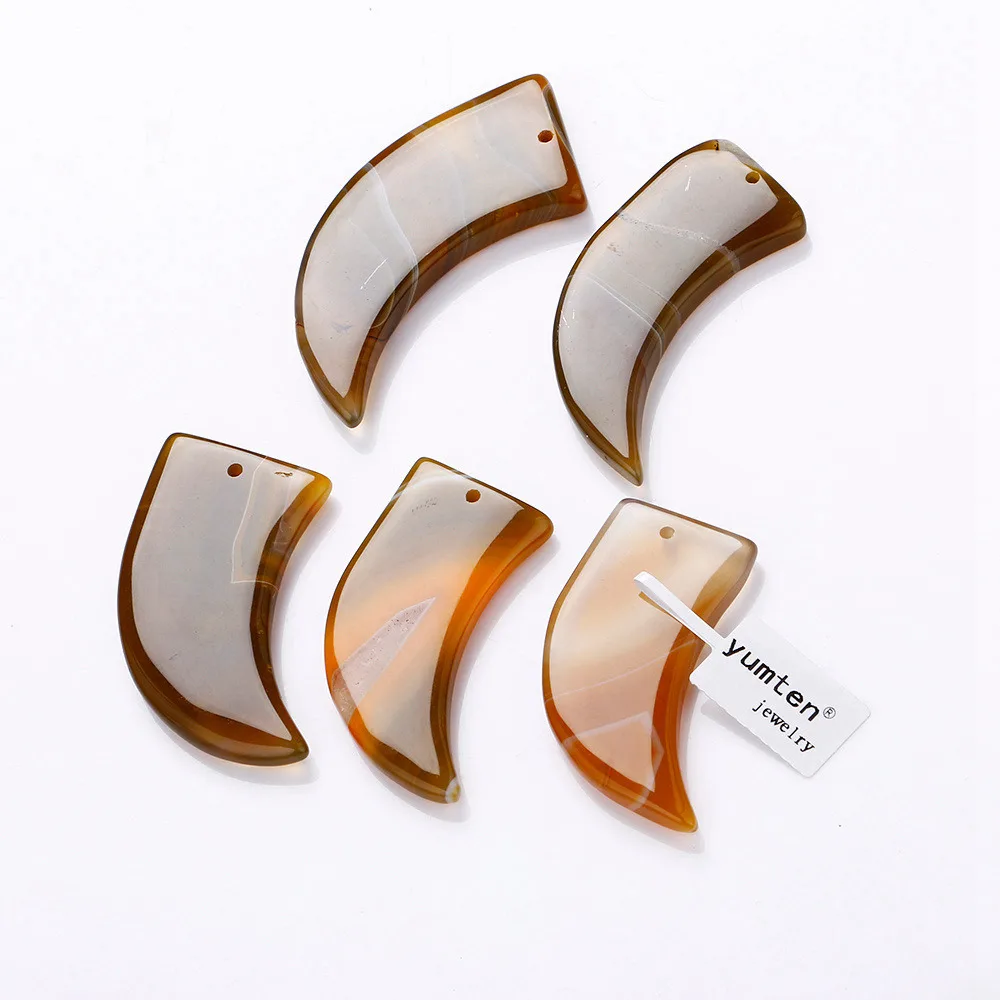 Natural Agate Moon crescent moon Pendant Long Necklace Sweater Chain Multicolor Shape Bead Chain Jewelry Multi Gem Men Women DK
