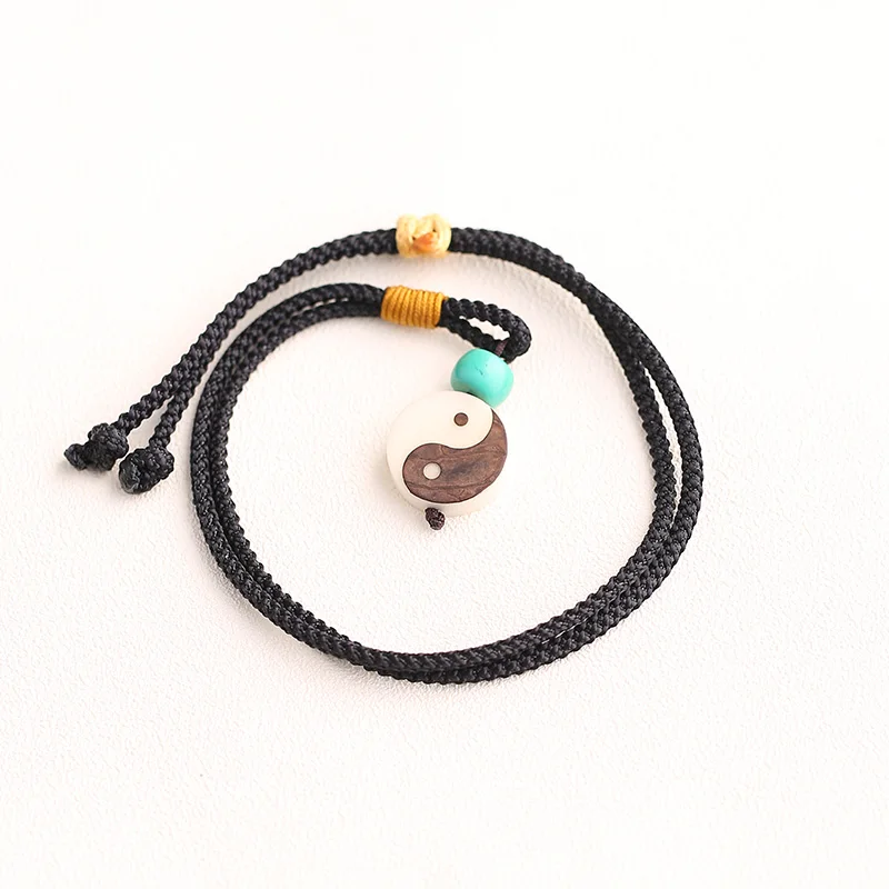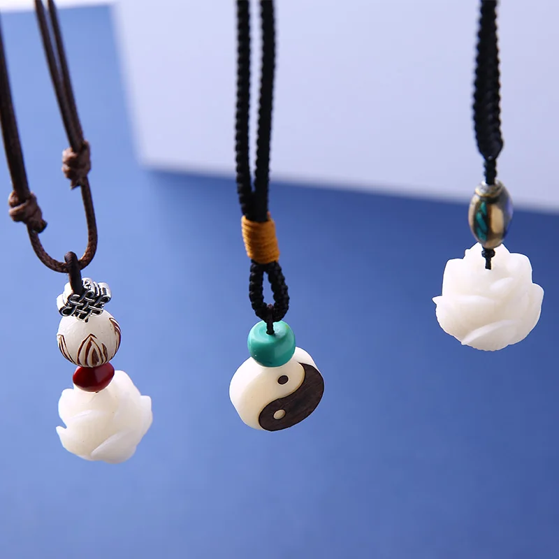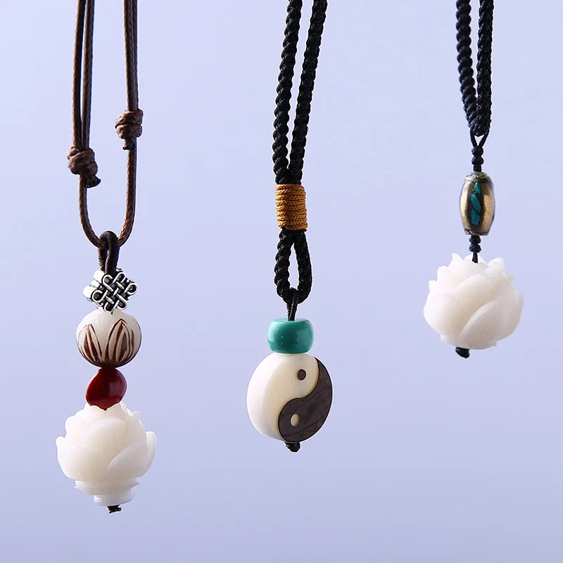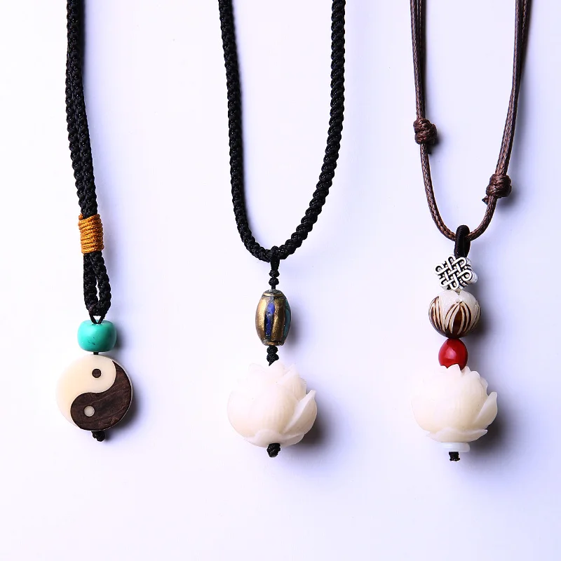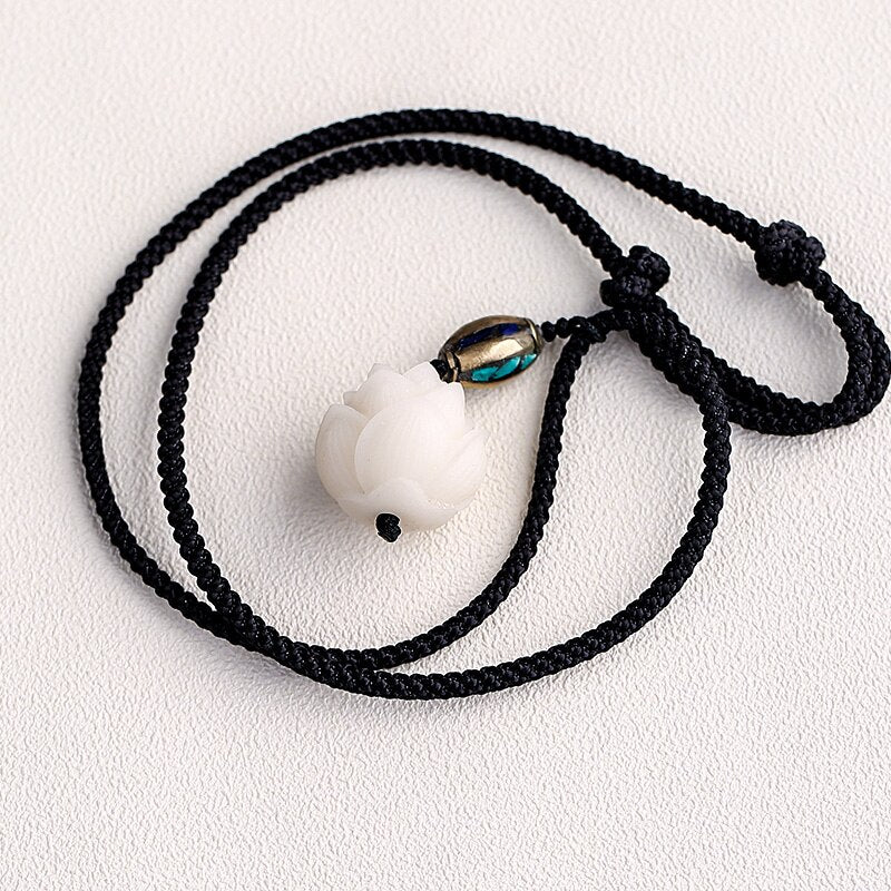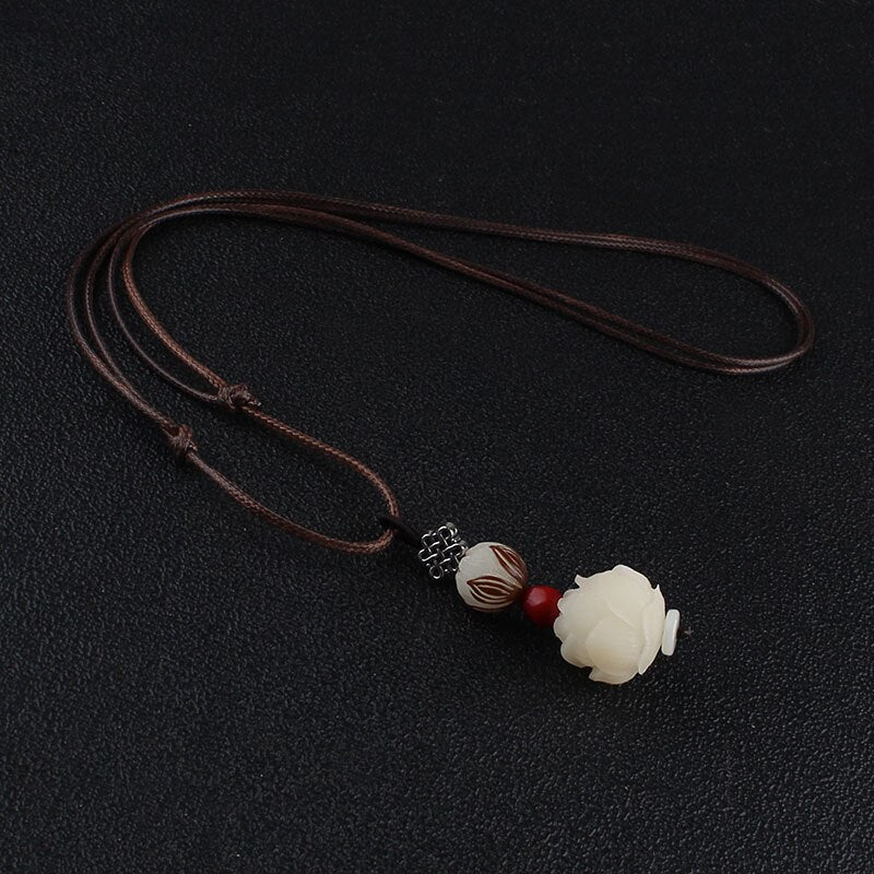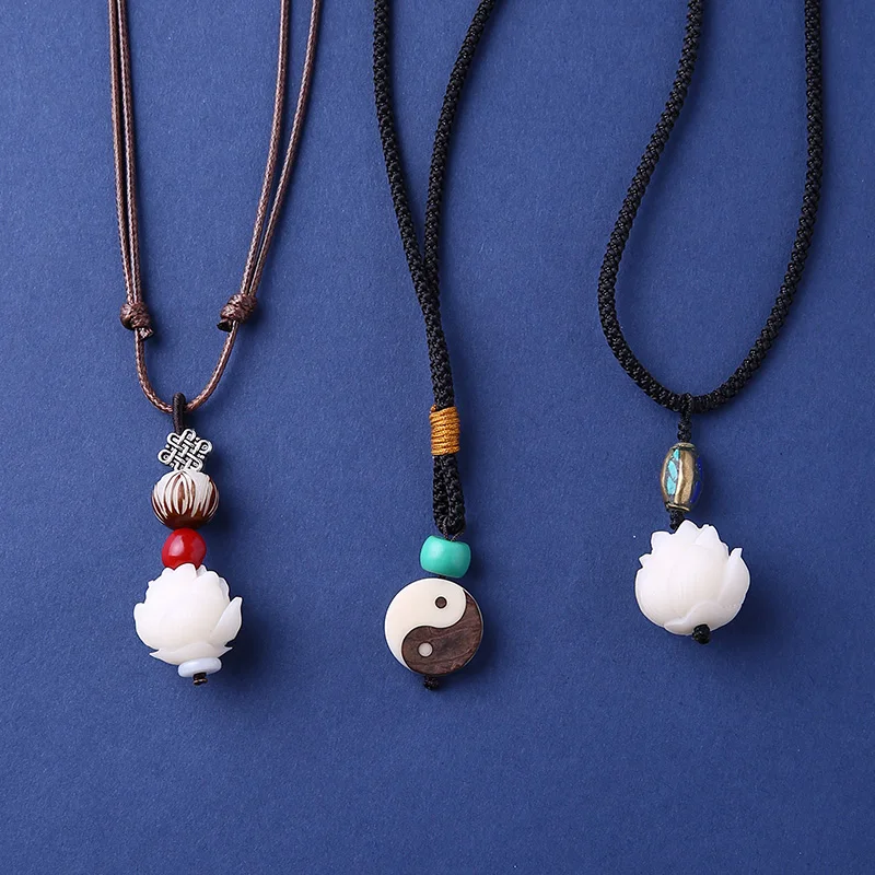 Bodhi Seed Handcrafted Lotus Flower Pendant Elegant Rope Long Necklace For Women Girl Tai Chi YIN YANG Necklace Jewelry