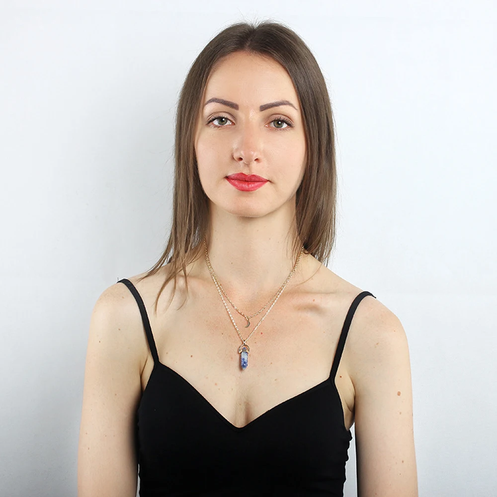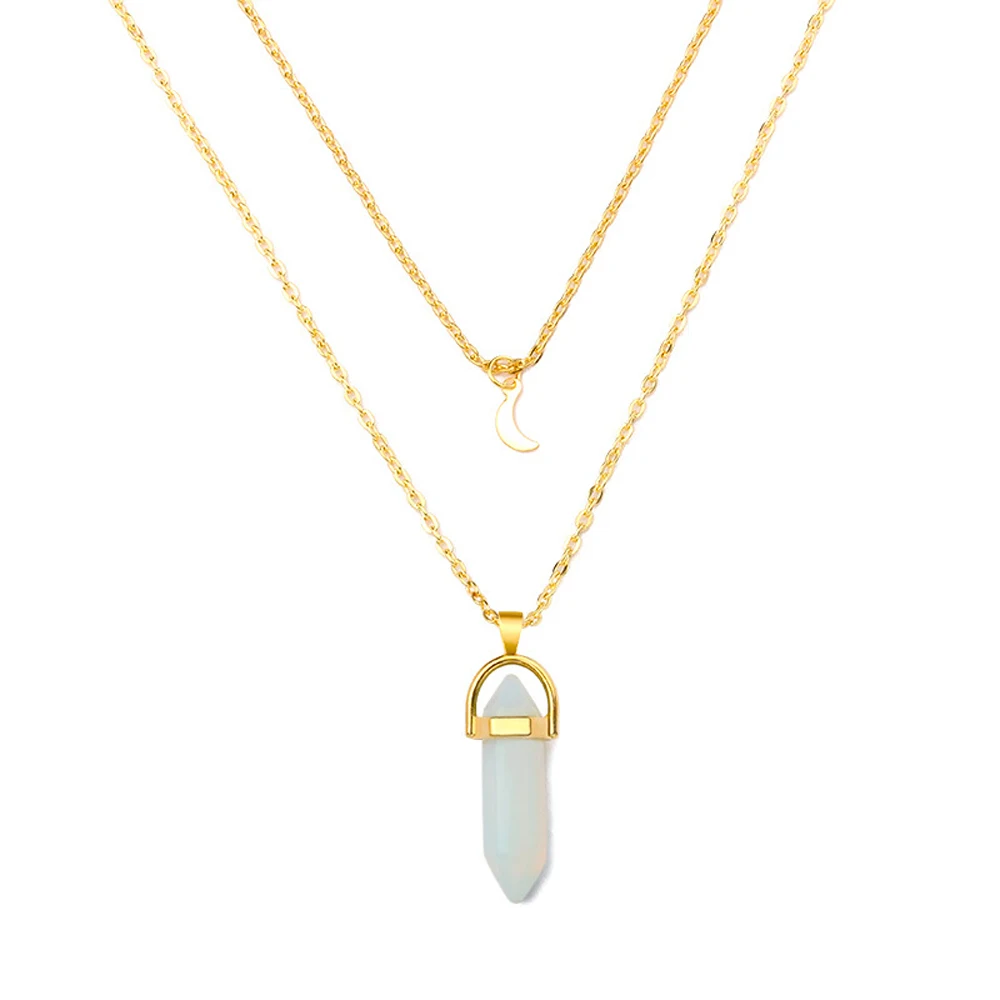 Bohemia 1 PCS Natural Stone Moon Choker Gold Color Crystal Pendant Necklace For Women Wedding Party Gift