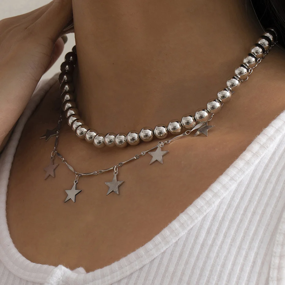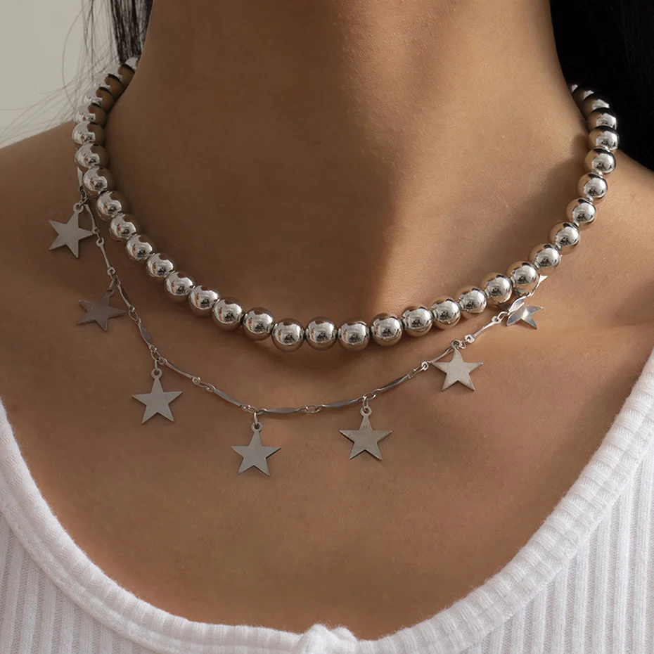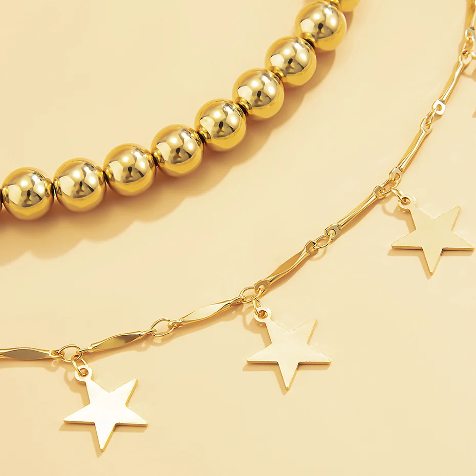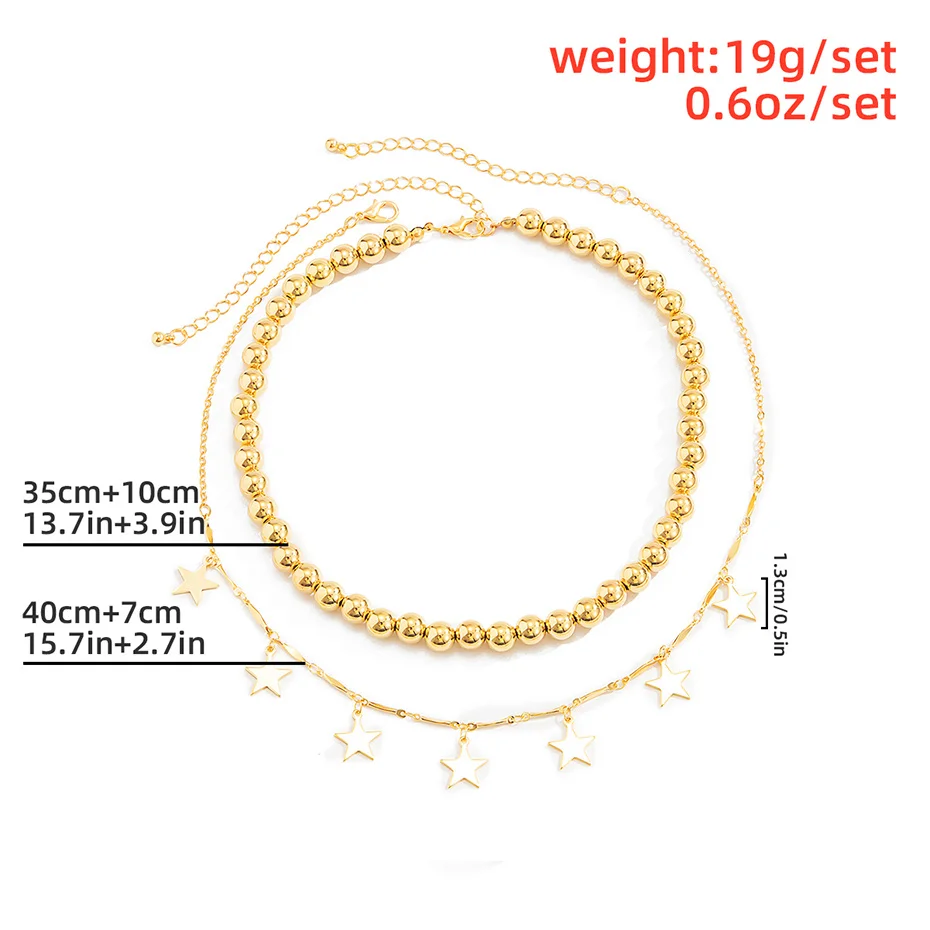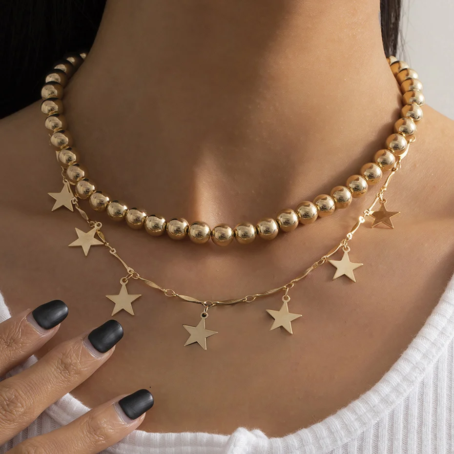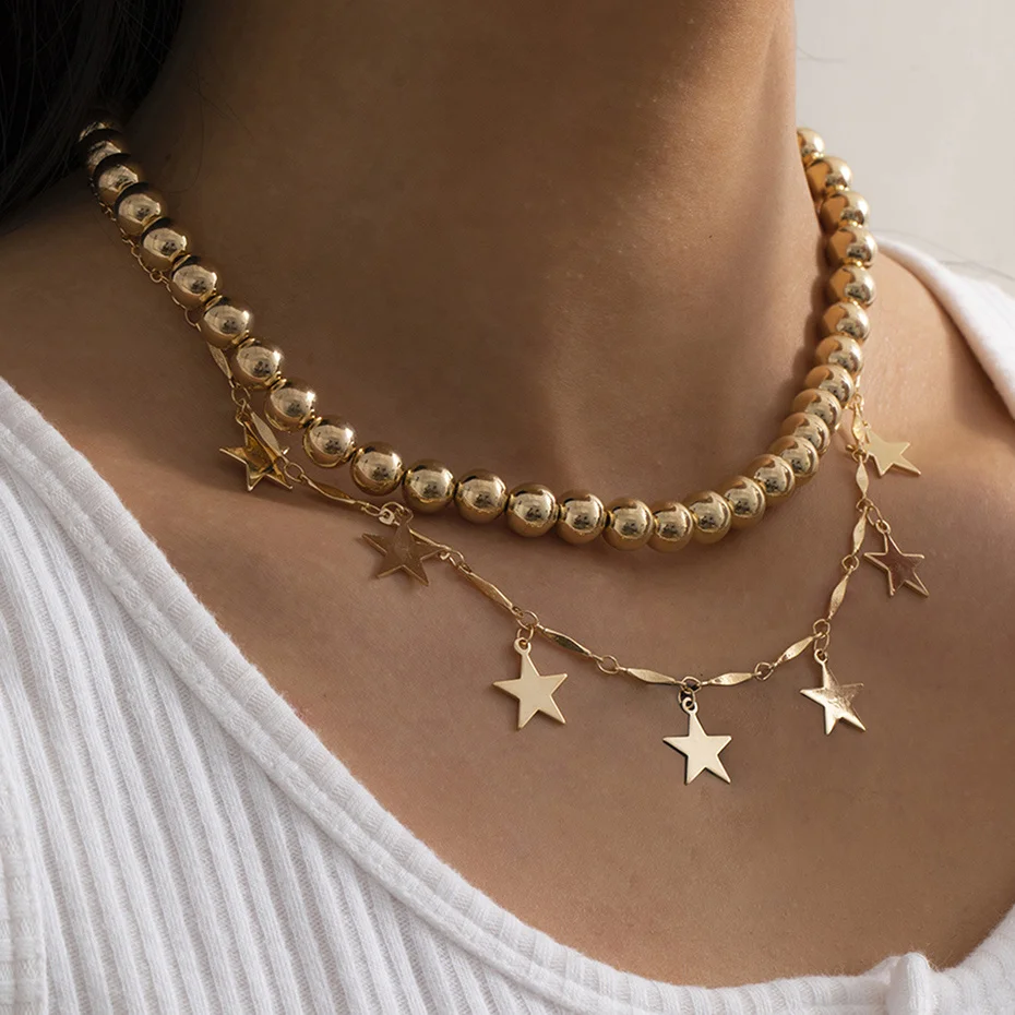 Bohemia Star Choker Necklace Women's Neck Chain Gold Color Hiphop Punk Ball Beads Necklace Kpop Collier Femme Chocker Jewelry