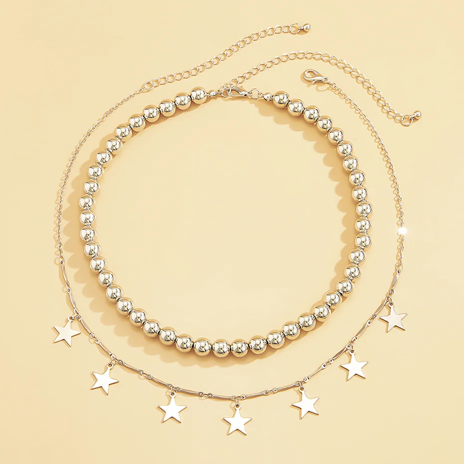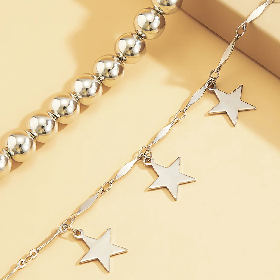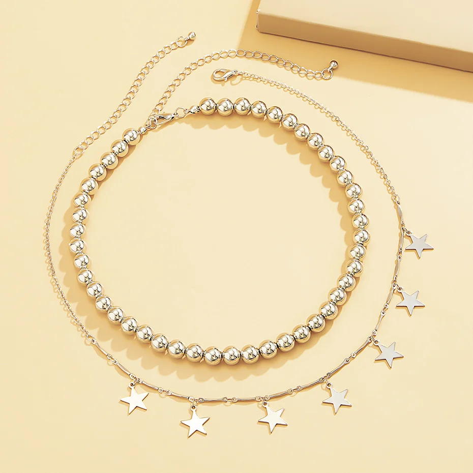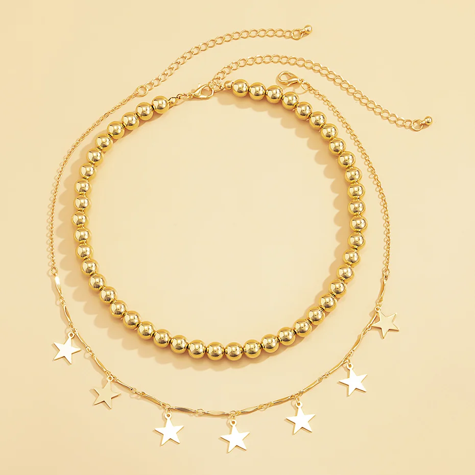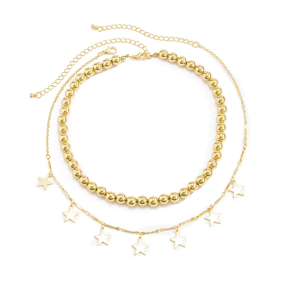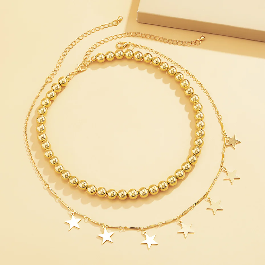 Bohemia Star Choker Necklace Women's Neck Chain Gold Color Hiphop Punk Ball Beads Necklace Kpop Collier Femme Chocker Jewelry