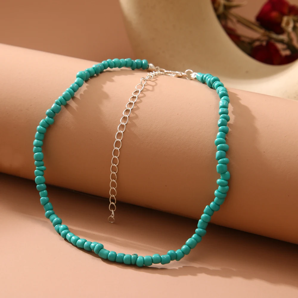 Bohemian Colorful Seed Bead Flower Choker Necklace Statement Short Collar Clavicle Chain Necklace for Women Jewelry