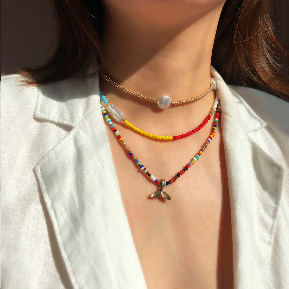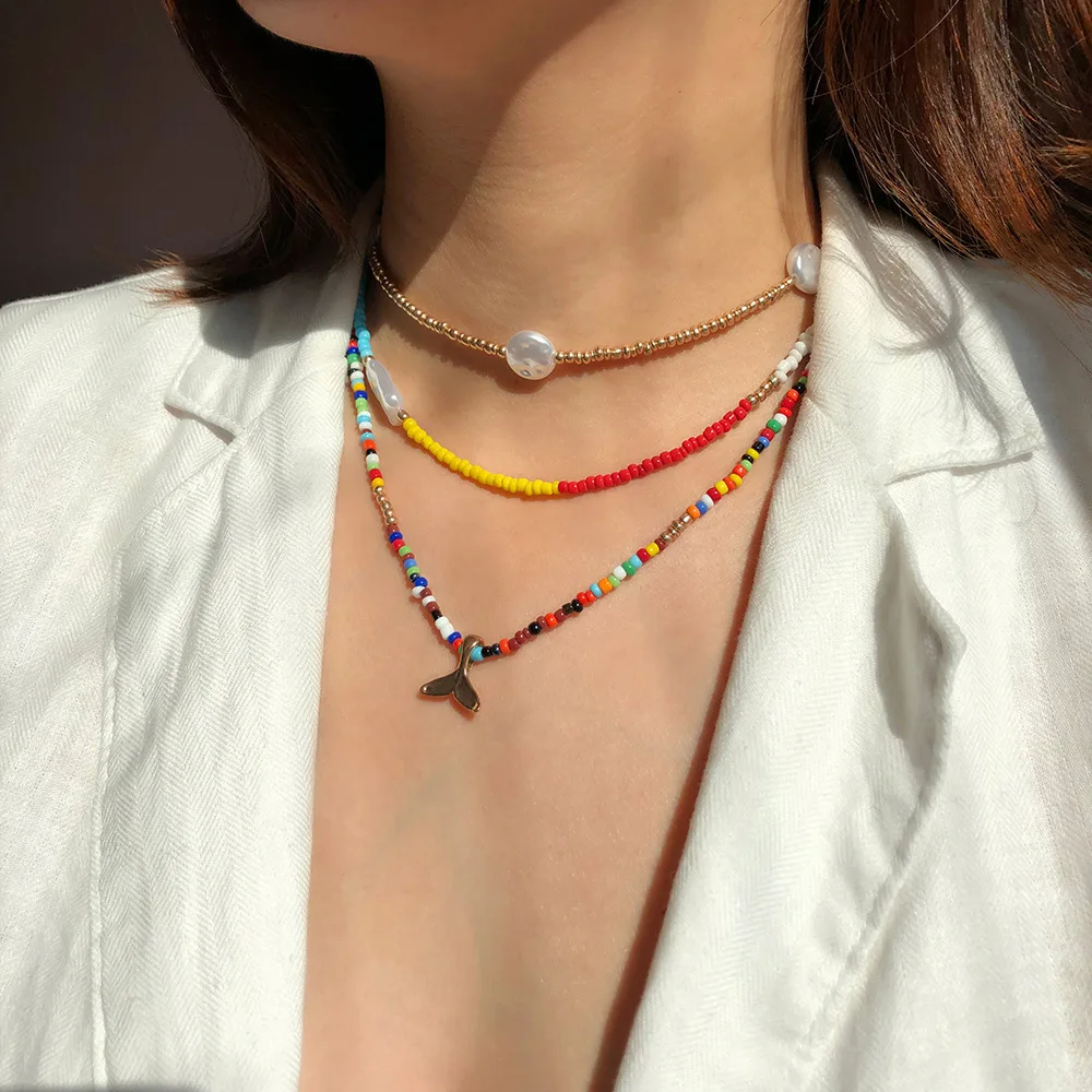 Bohemian Exquisite Colorful Acrylic Seed Beads Strand Necklace Women Irregular Imitation Pearl Choker Jewelry Accessories 1 Gift