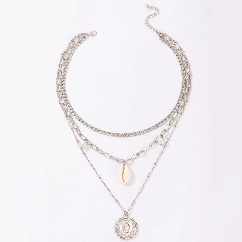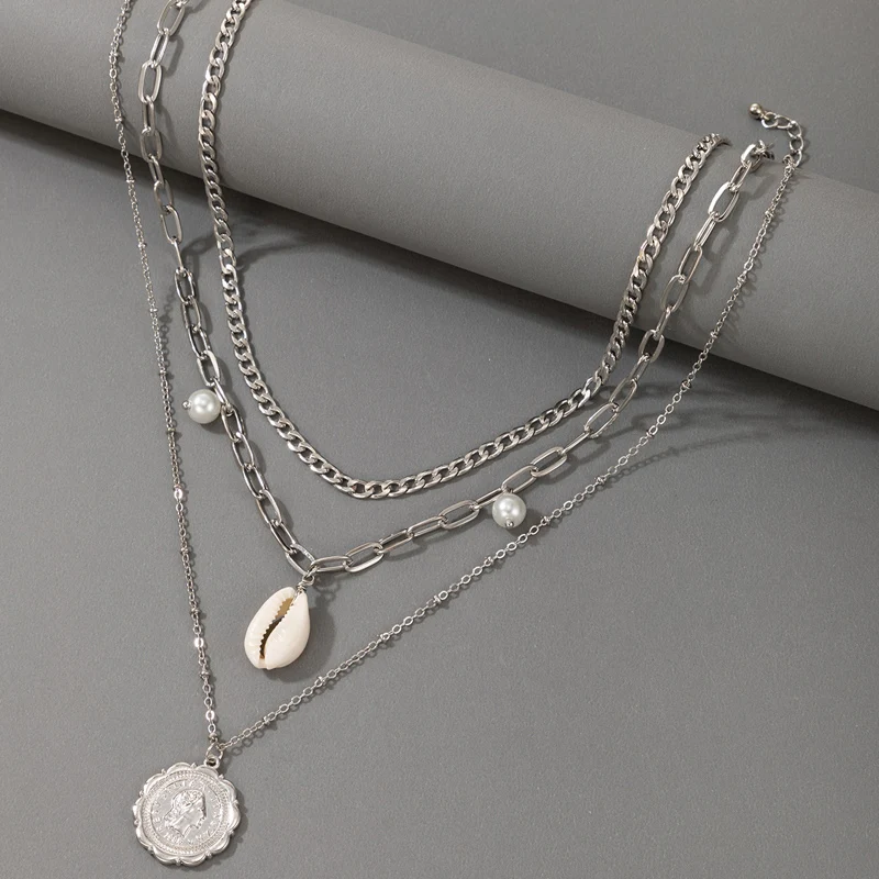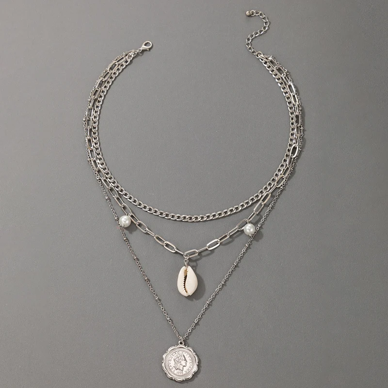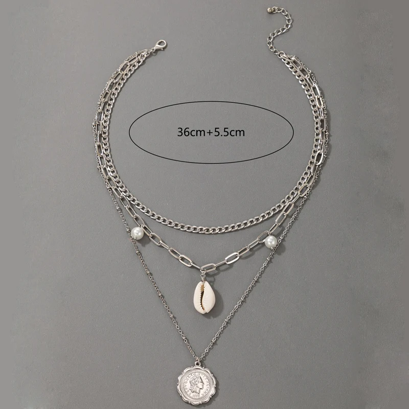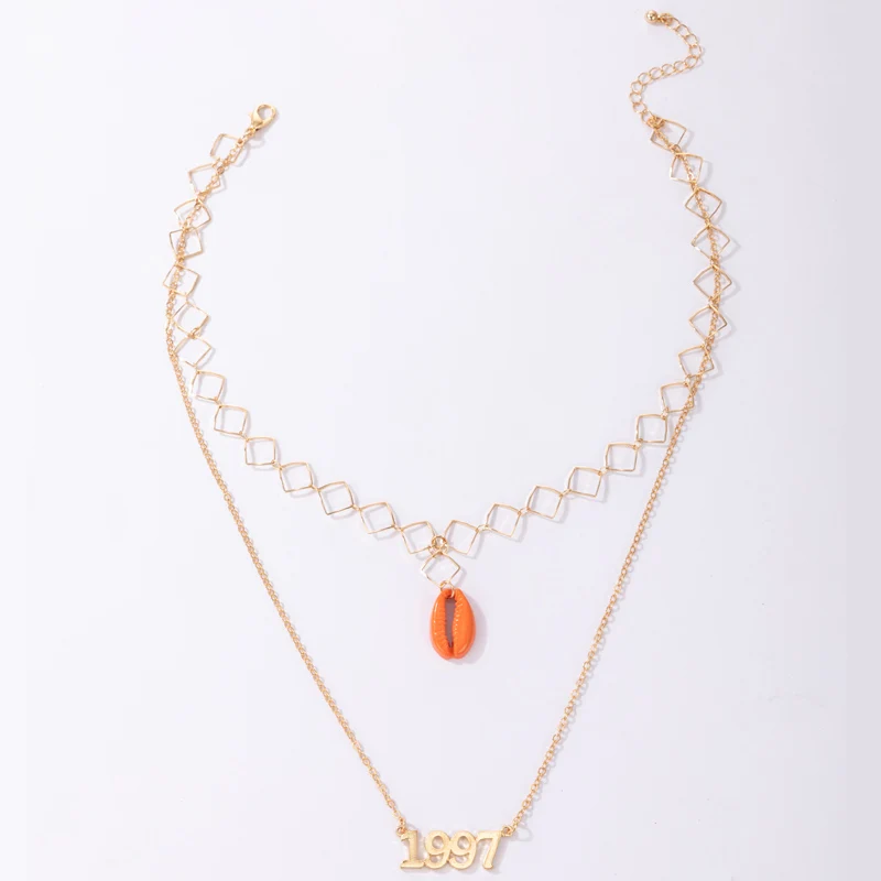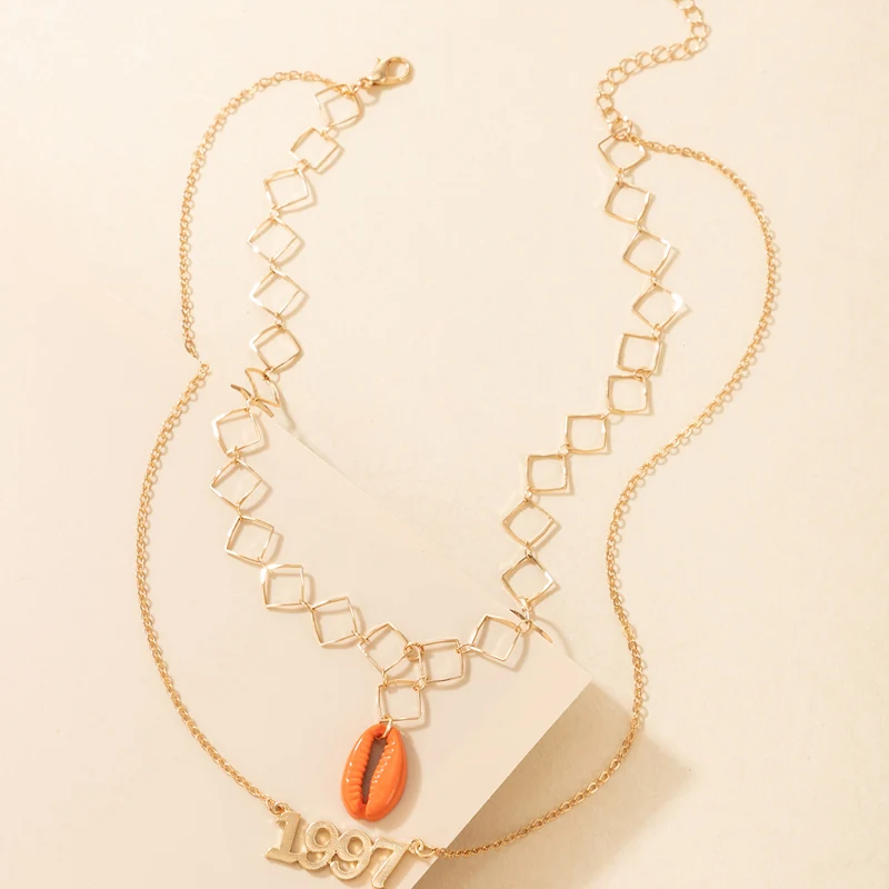 Bohemian Gold Color Geometric Hollow Square Chain Necklace Multilayer Shell 1997 Year Pendant Choker Women Summer Jewelry Gift