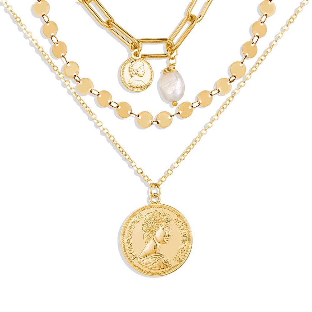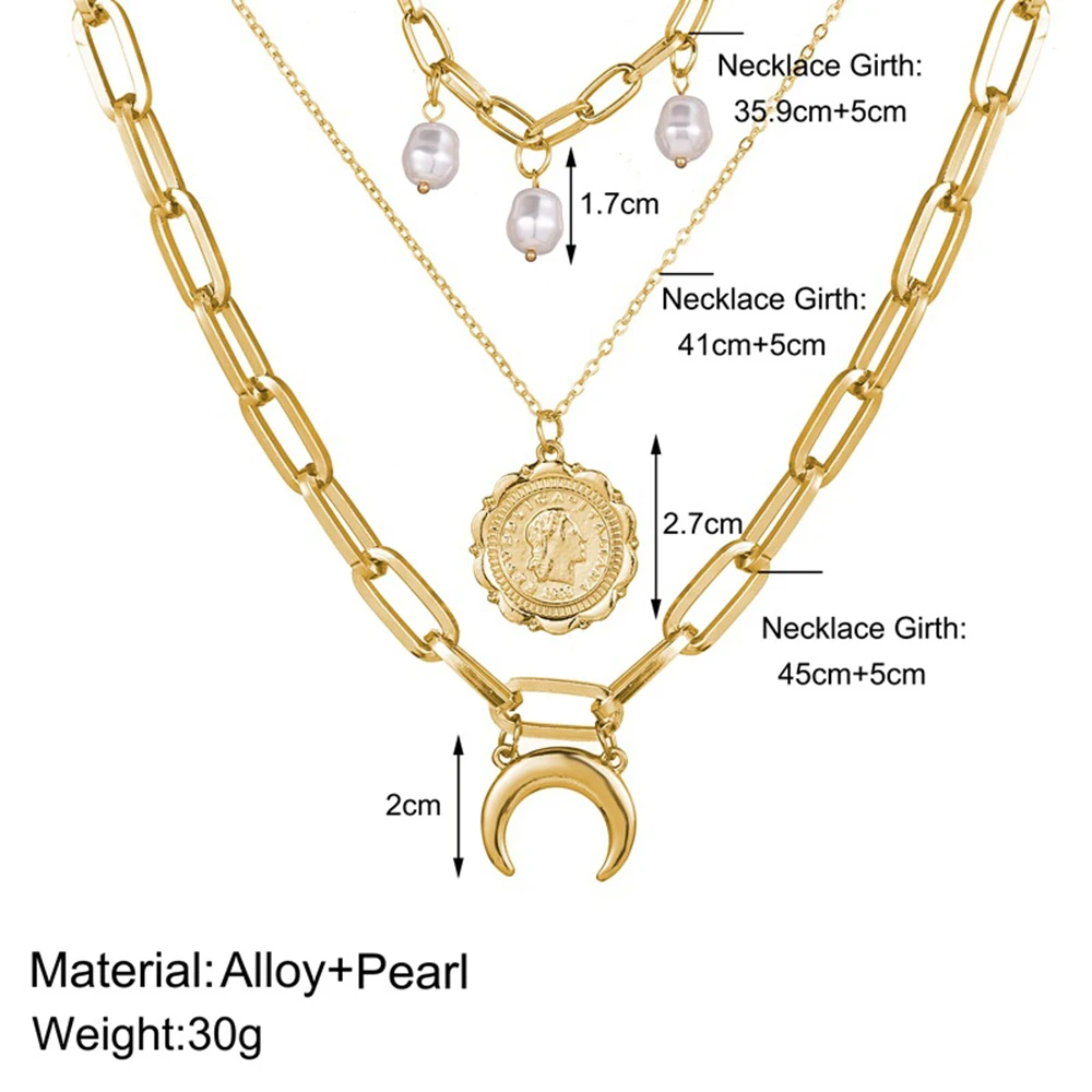 Bohemian Gold Necklaces For Women Multilayer Pearl Pendants Necklace Portrait Chokers 2022 Trendy Jewelry Gift
