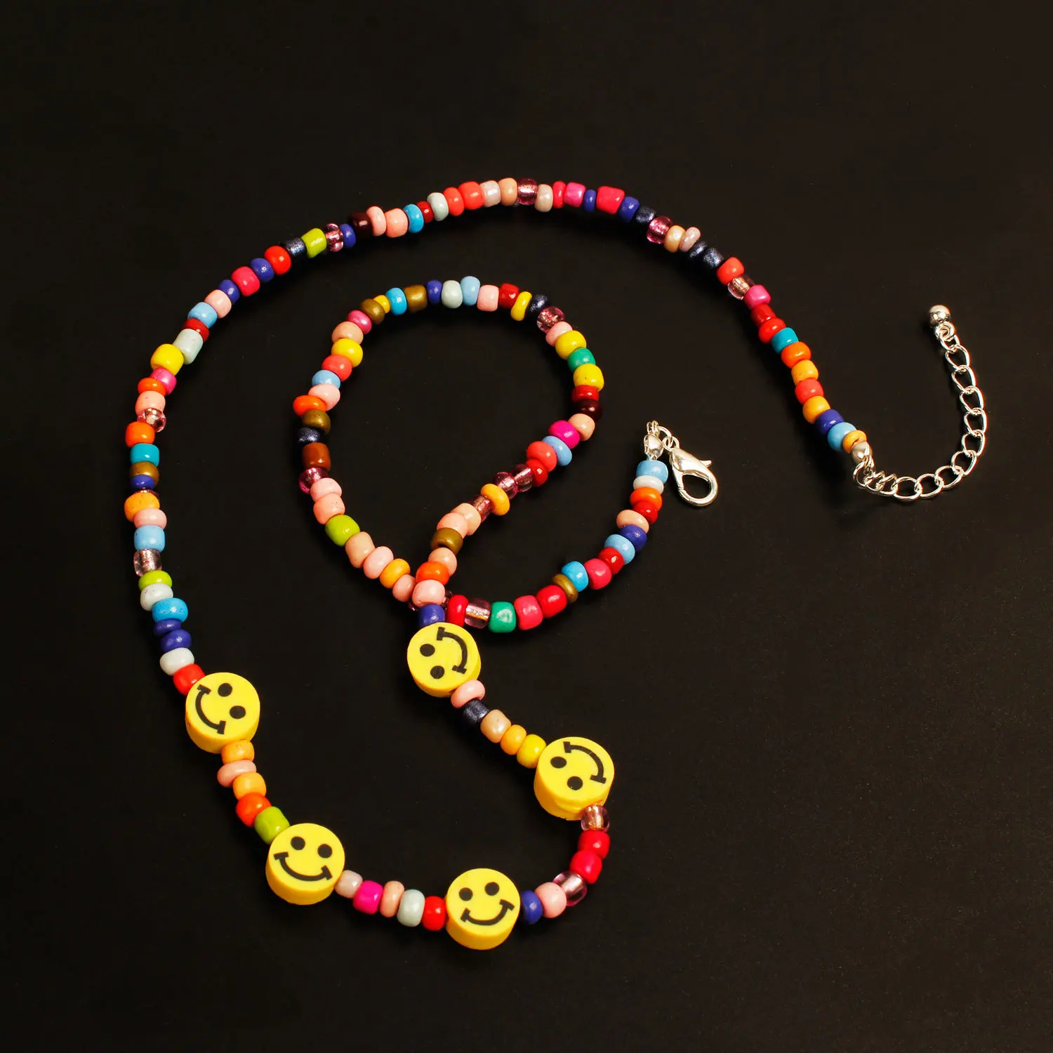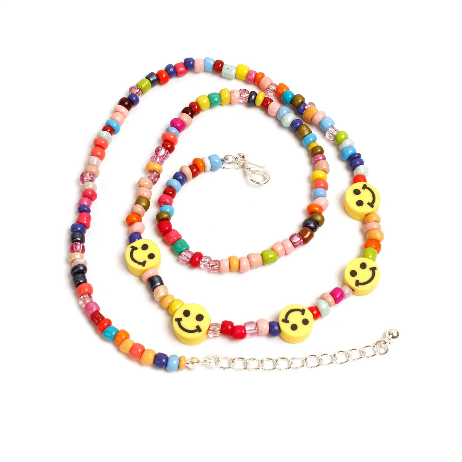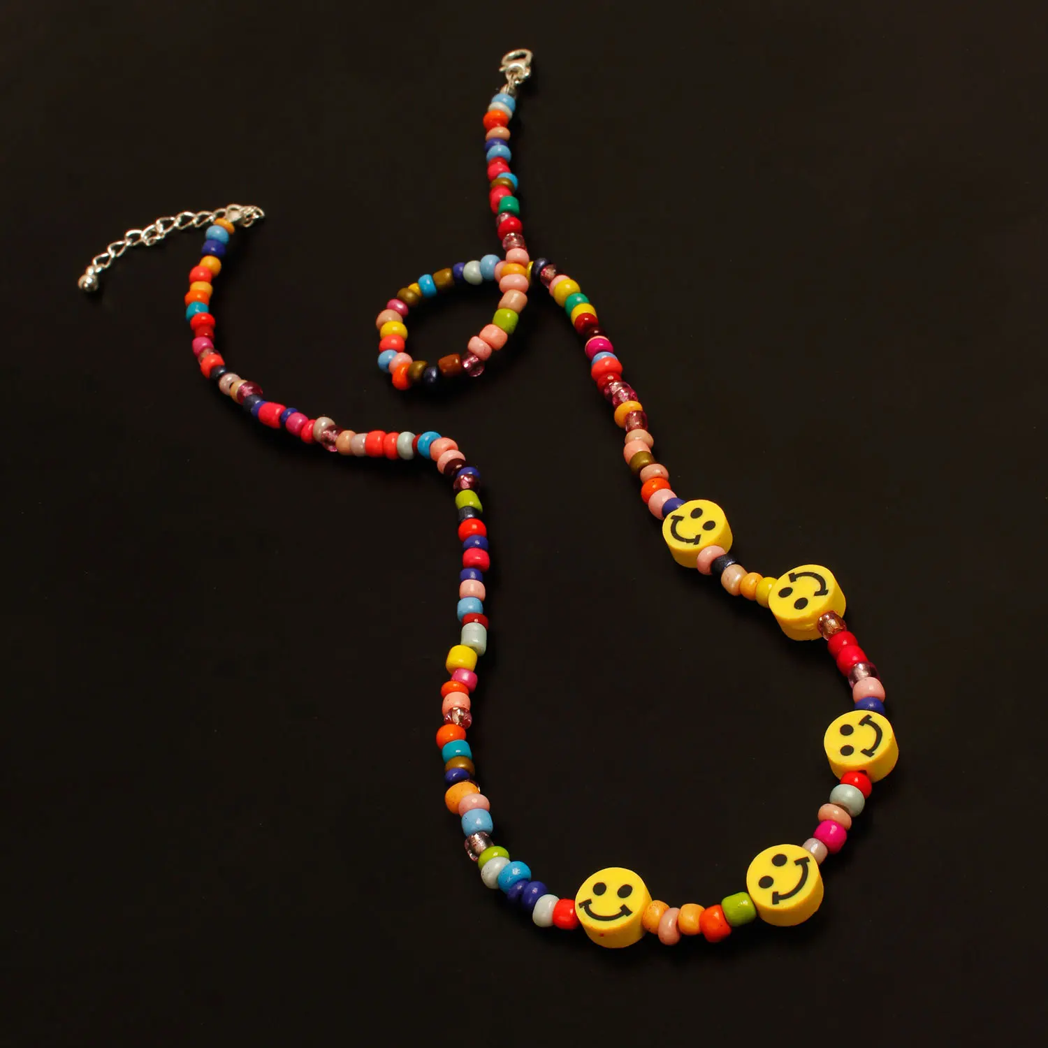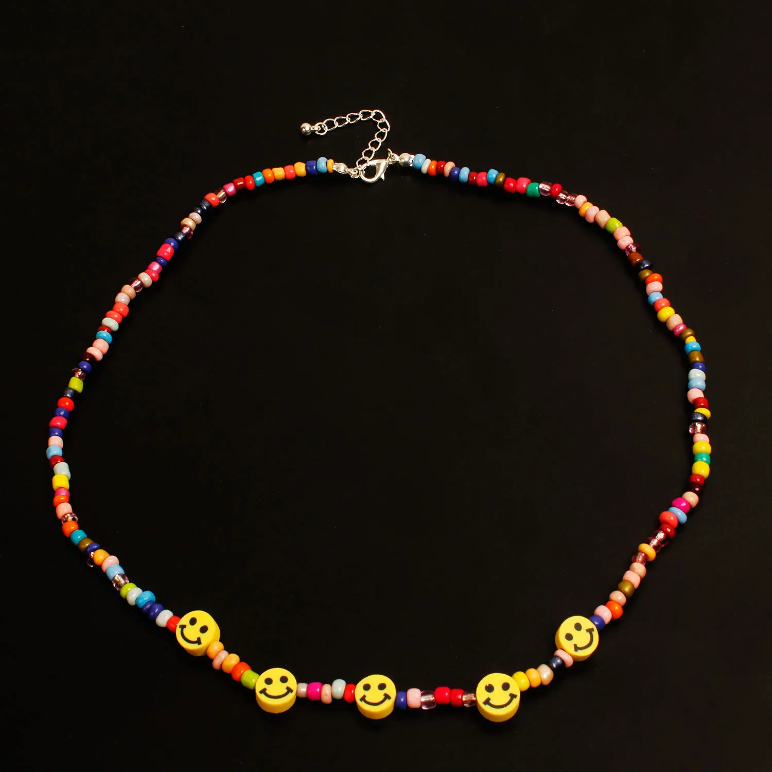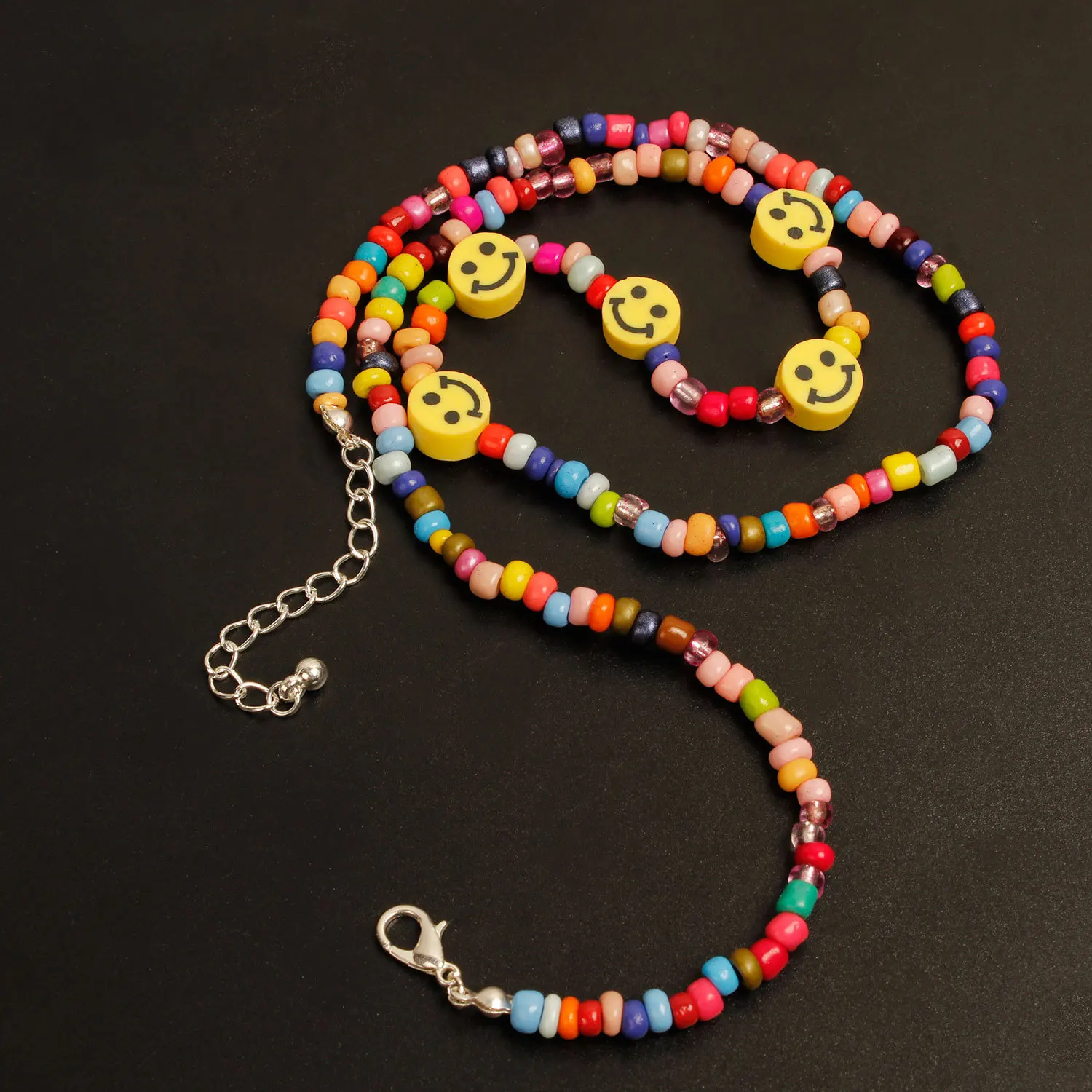 Bohemian Handmade Rainbow Beads Choker Necklace Candy Color Bead Satellite Smile Face Necklace for Women Party Jewelry