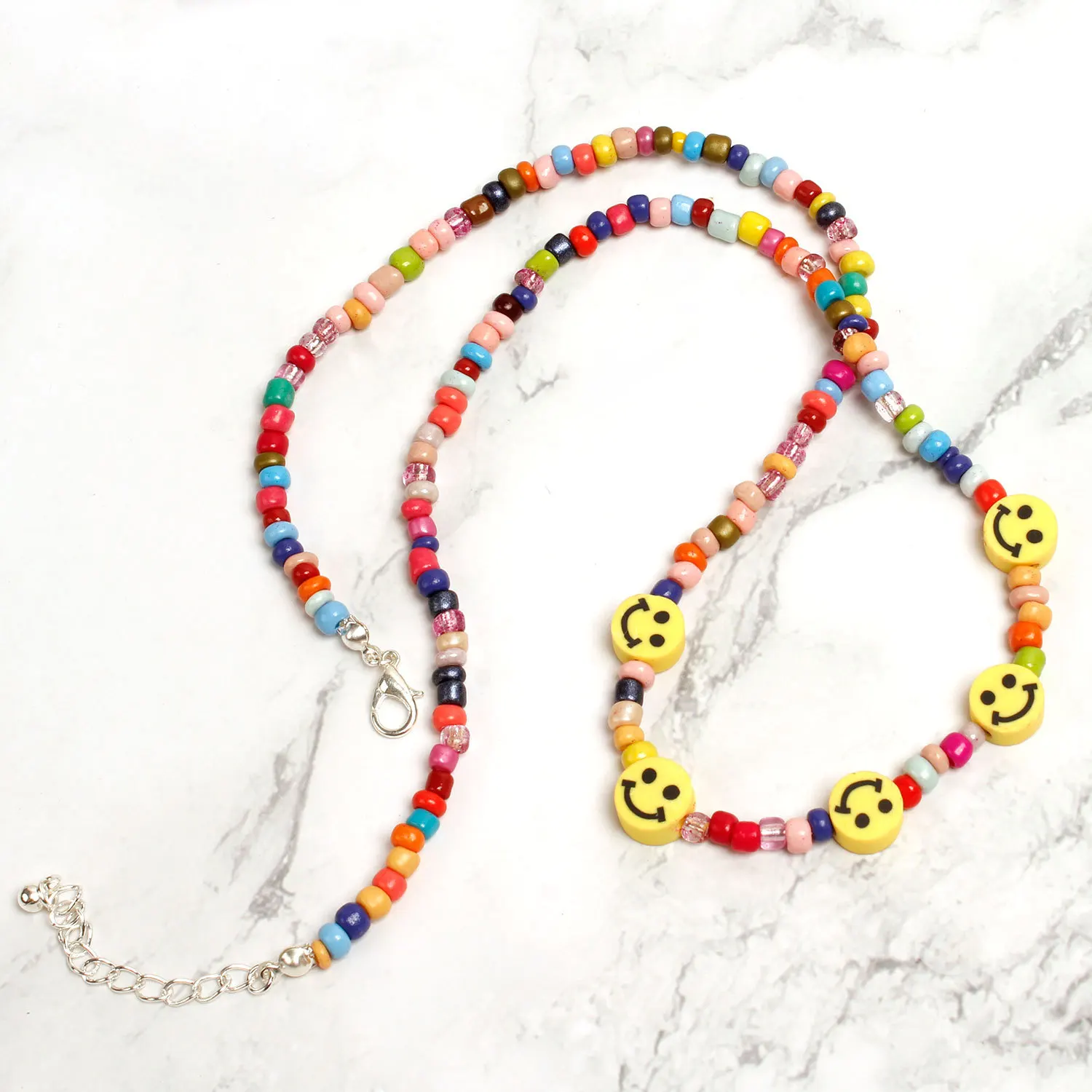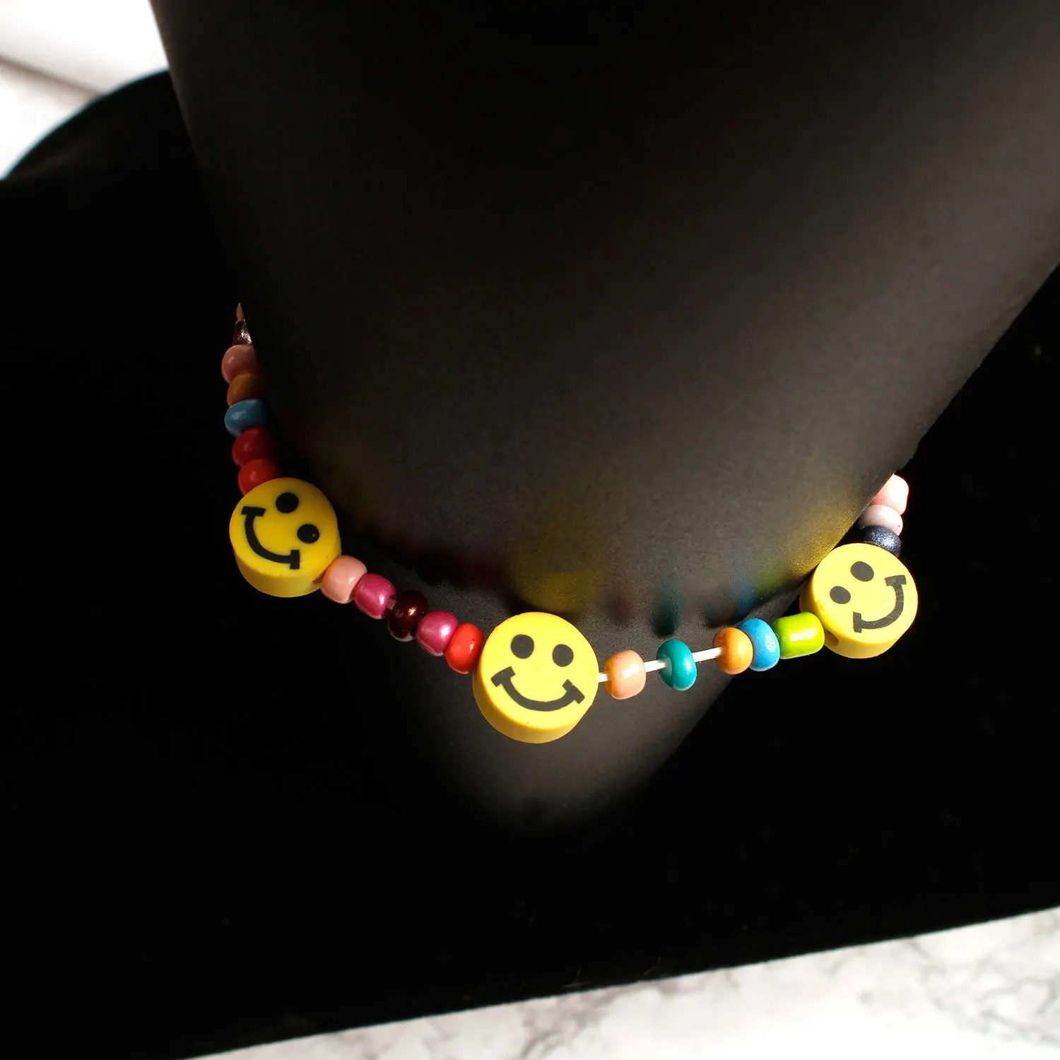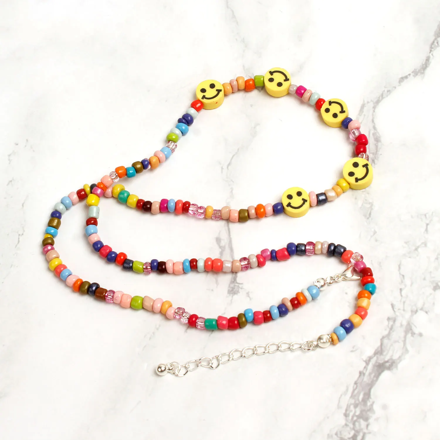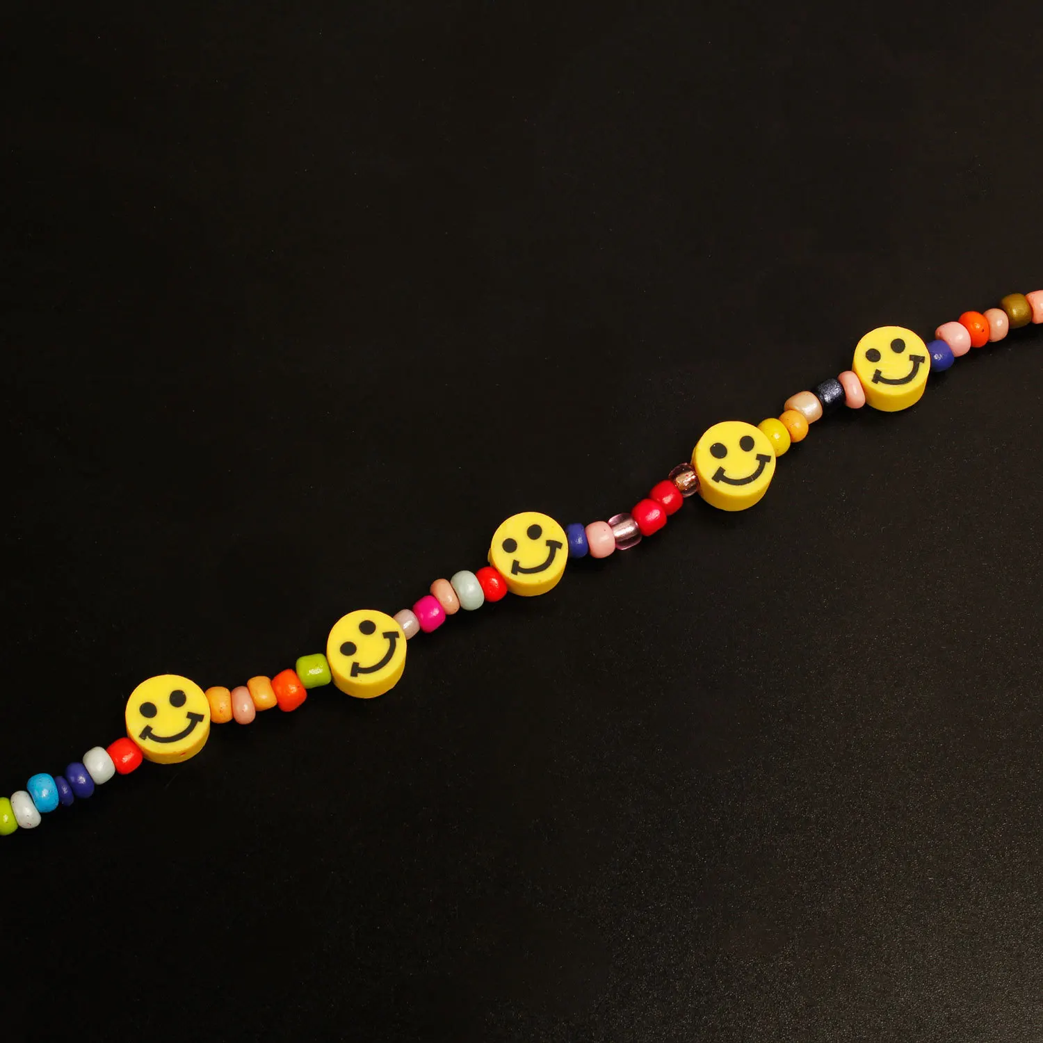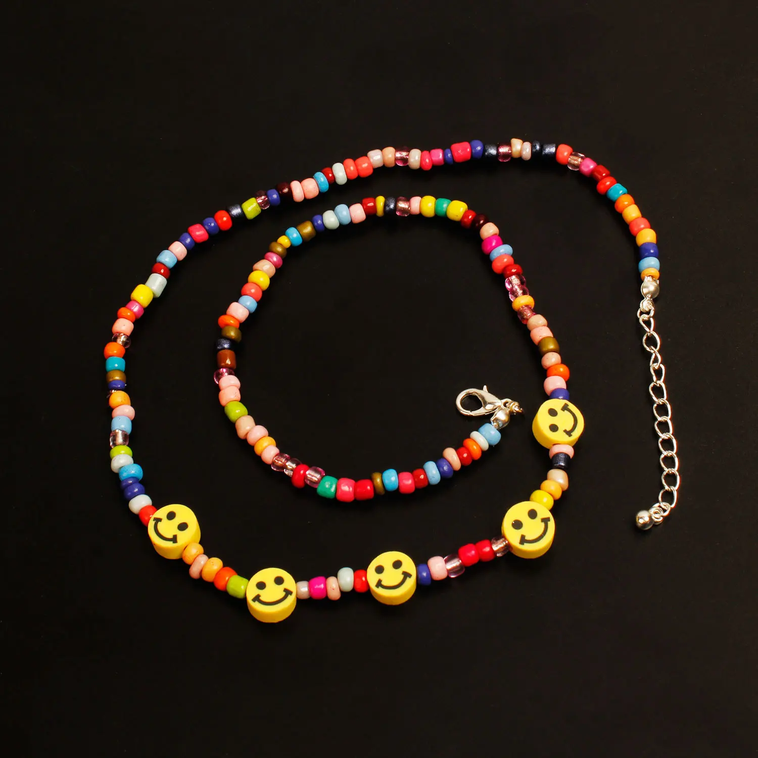 Bohemian Handmade Rainbow Beads Choker Necklace Candy Color Bead Satellite Smile Face Necklace for Women Party Jewelry