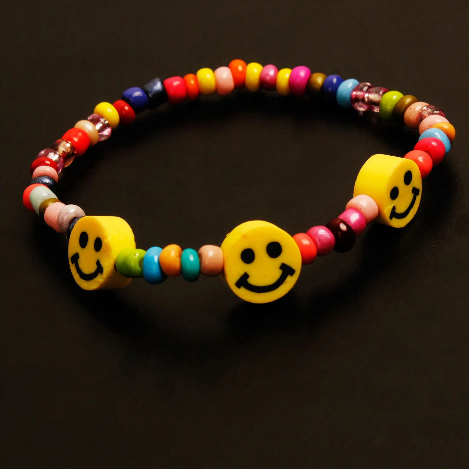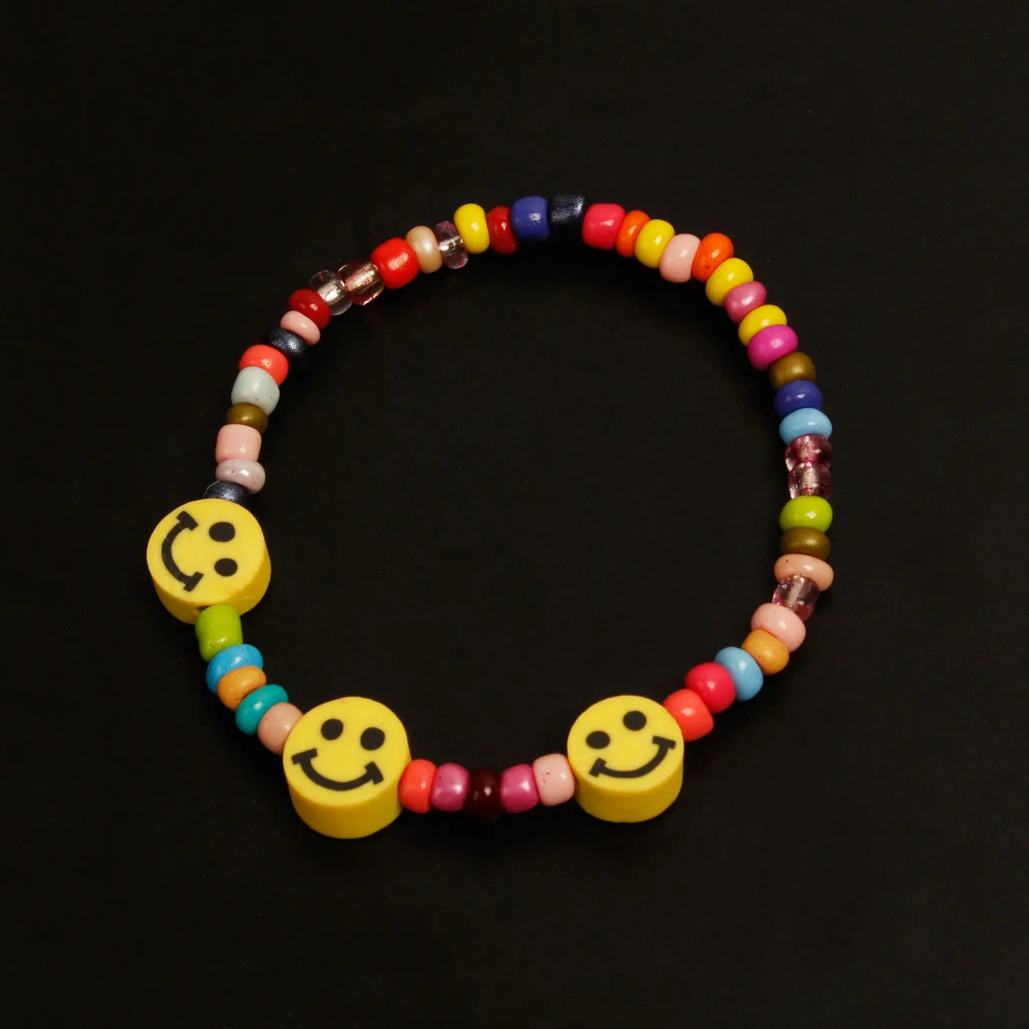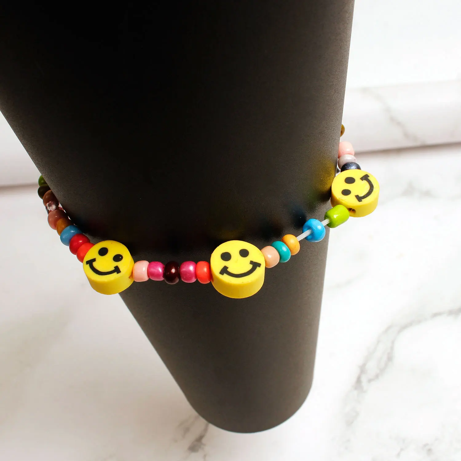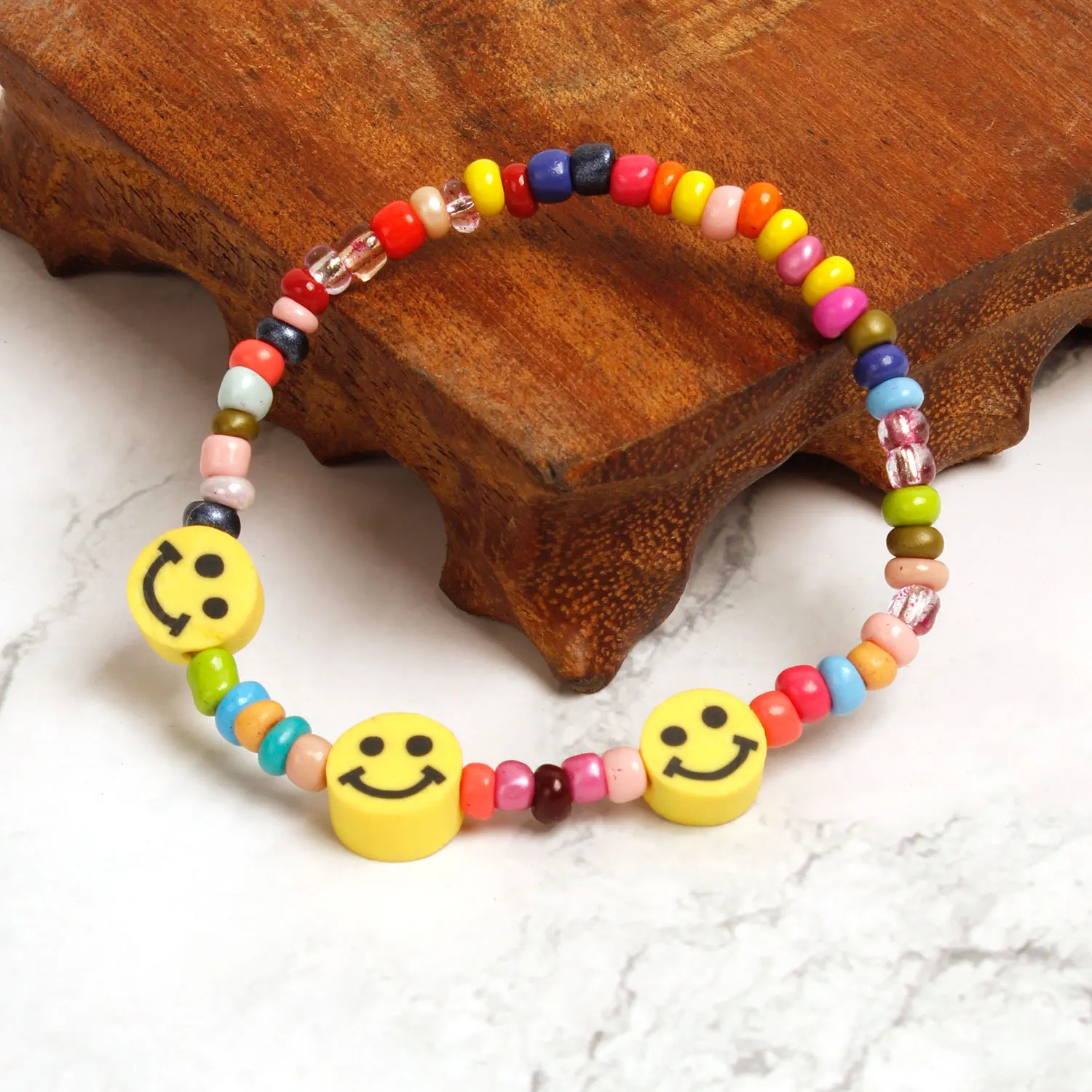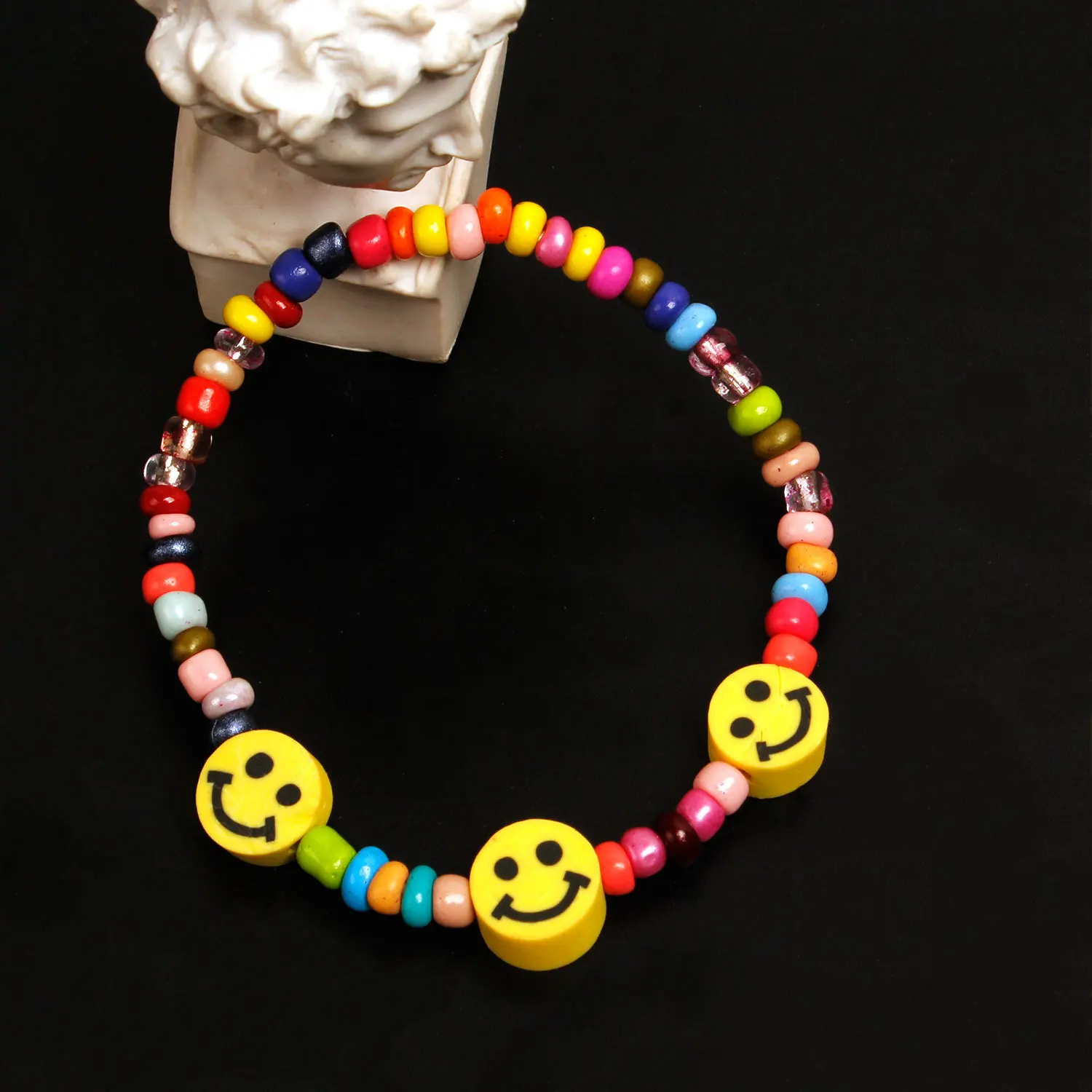 Bohemian Handmade Rainbow Beads Choker Necklace Candy Color Bead Satellite Smile Face Necklace for Women Party Jewelry