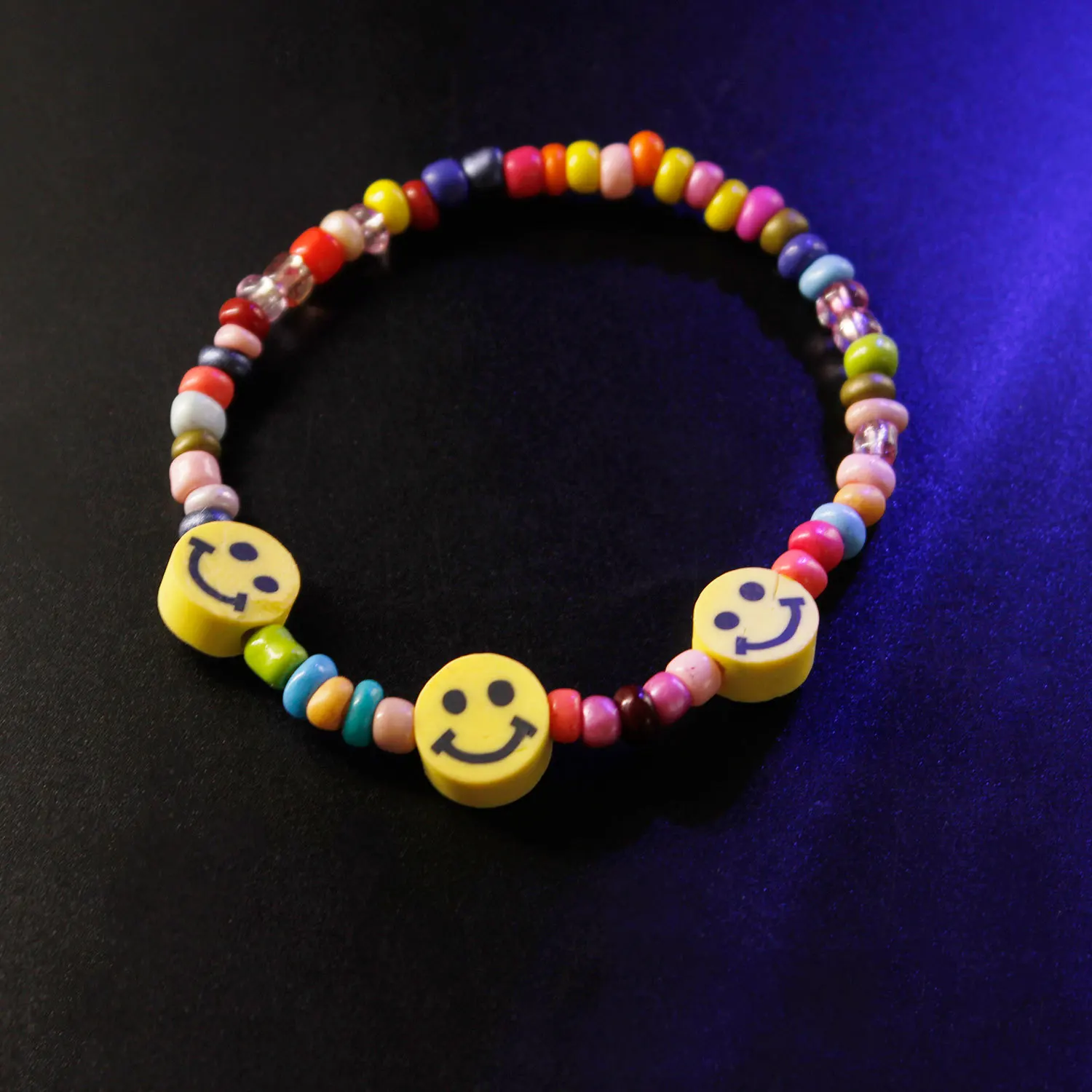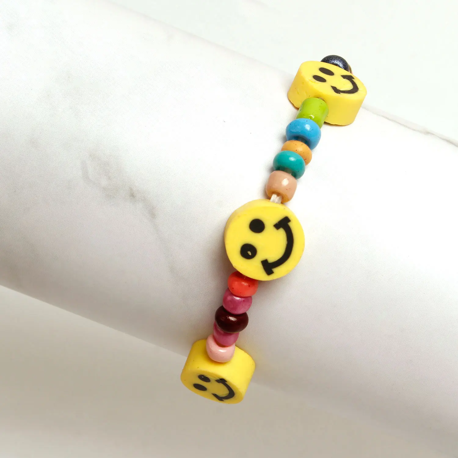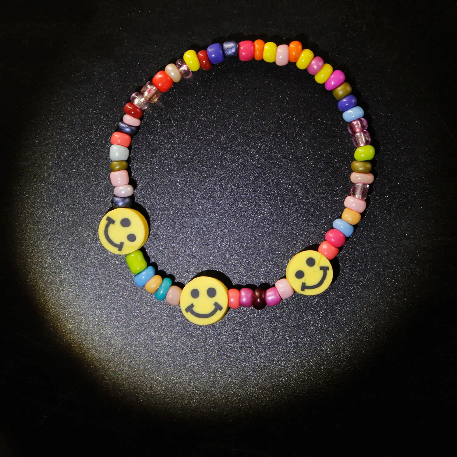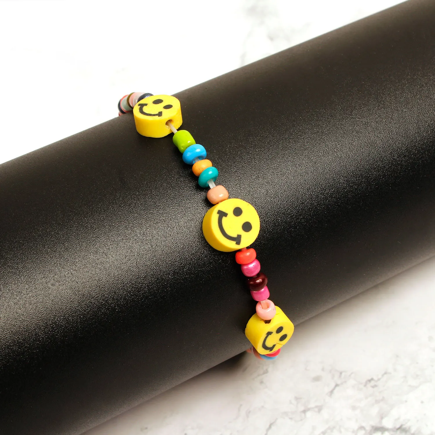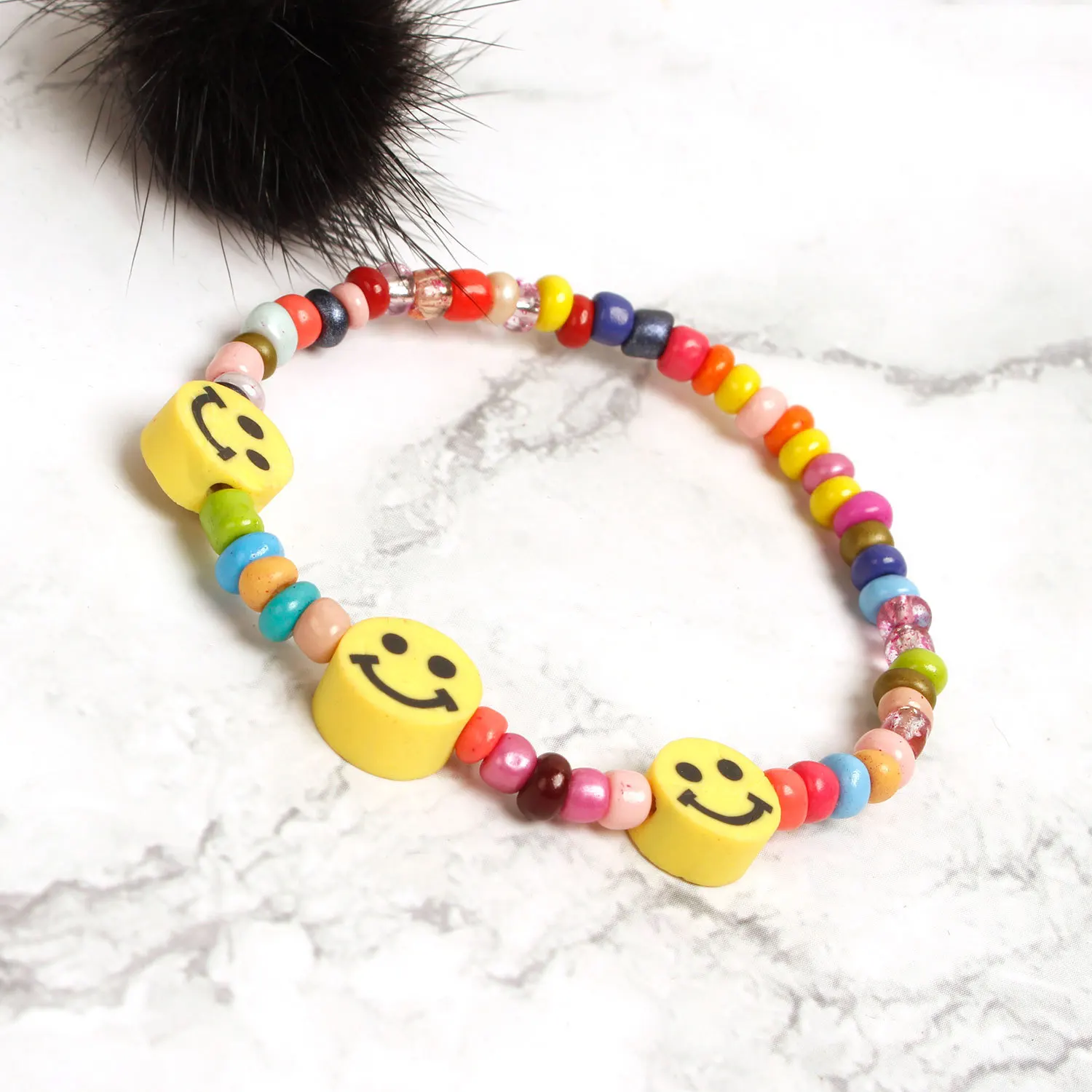 Bohemian Handmade Rainbow Beads Choker Necklace Candy Color Bead Satellite Smile Face Necklace for Women Party Jewelry