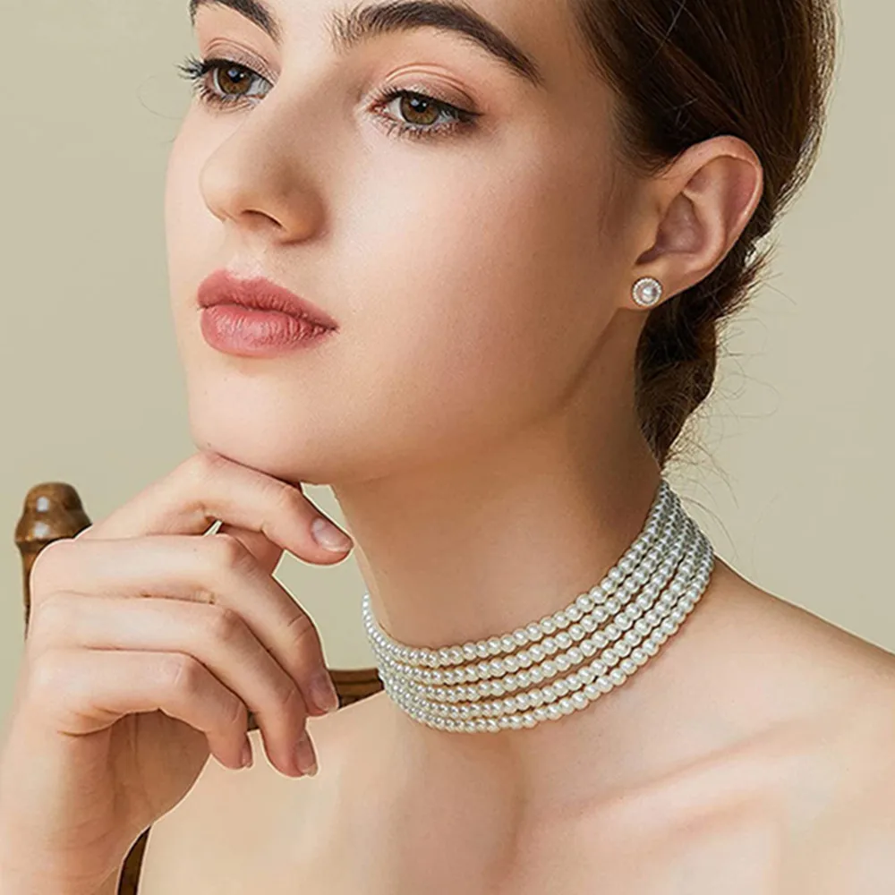 Bohemian Imitation Pearls 1-5 Multi-layer Wedding Collar Necklace for Women Elegant Pearl Clavicle Chain Choker Necklace Jewelry