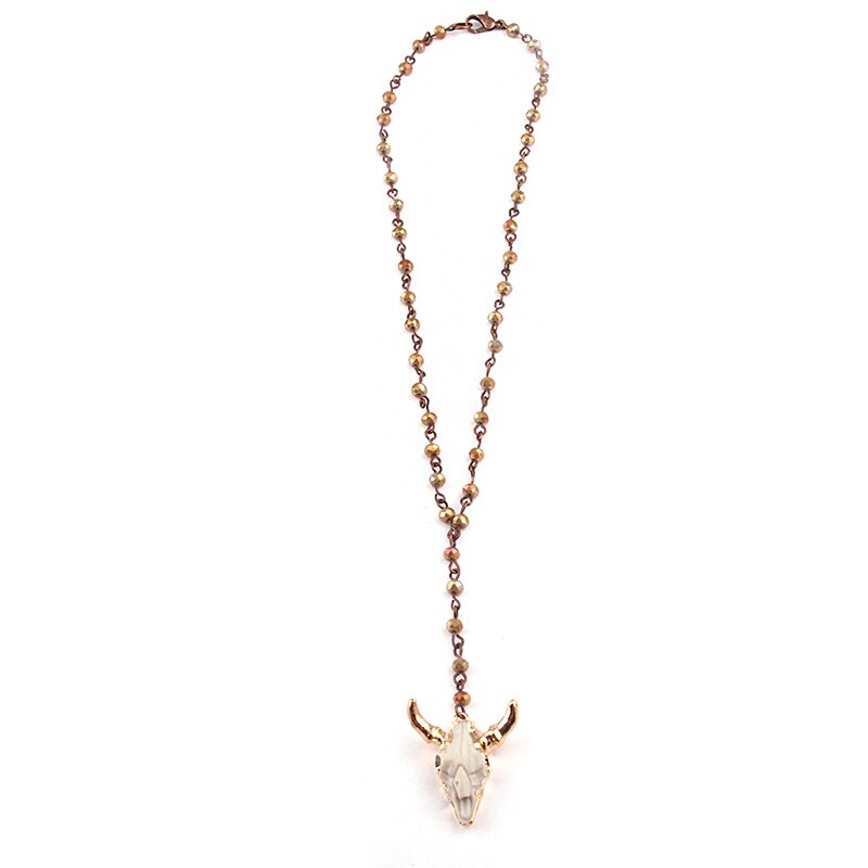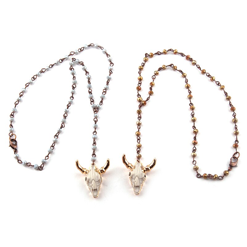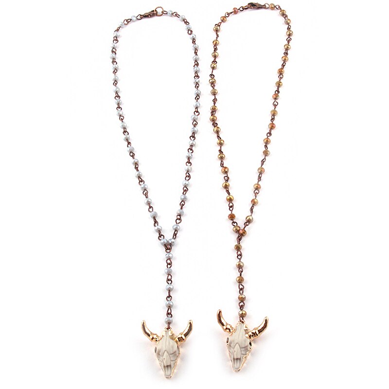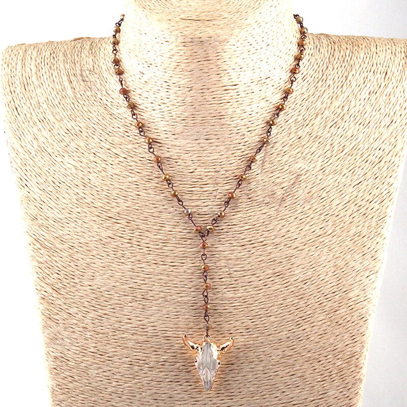 Bohemian Mini Grey crystal Rosary Chain Cute Horn OX Charm Women Ethnic Choker Simple Lady Necklace