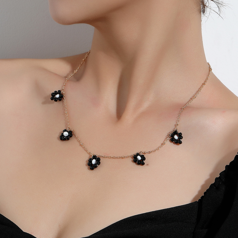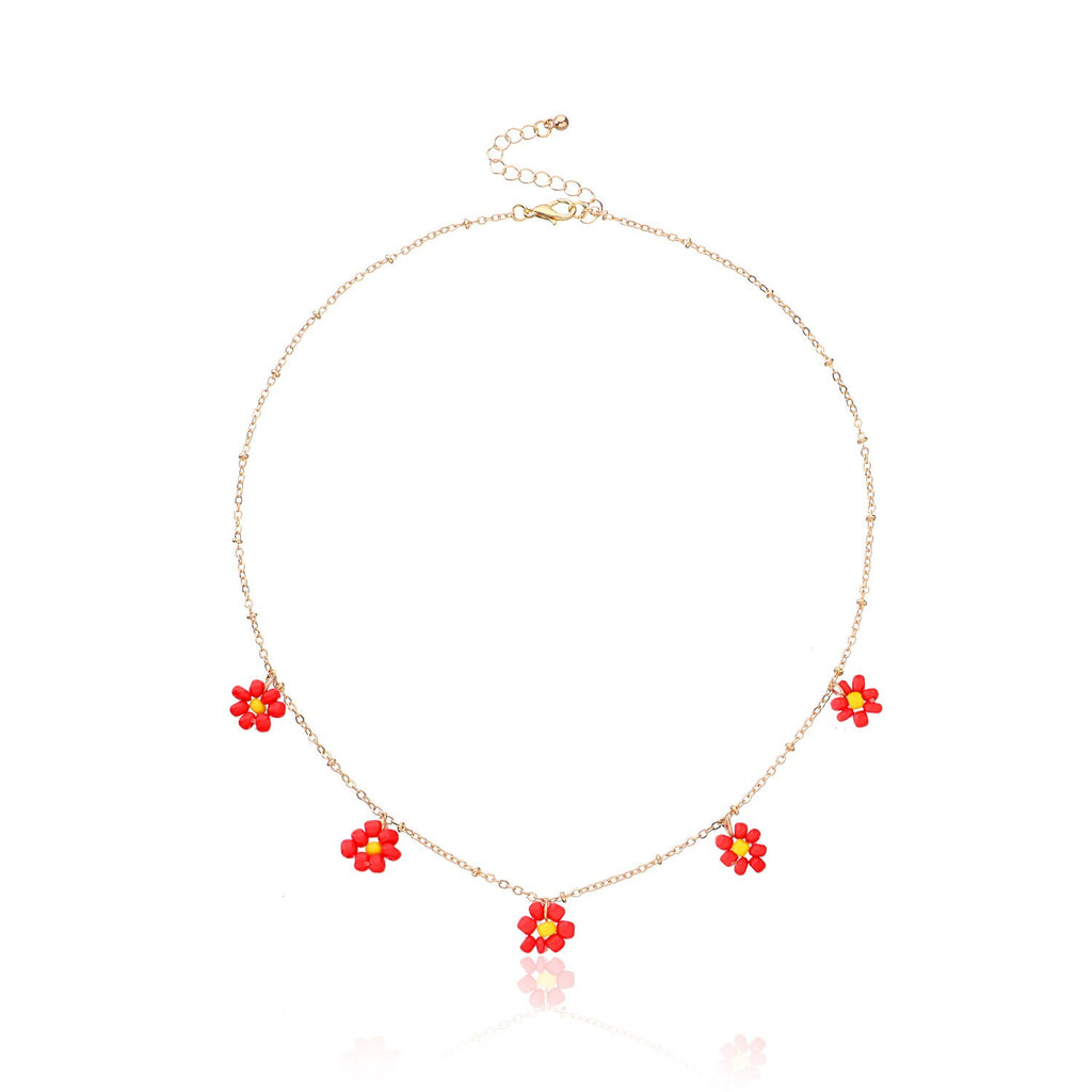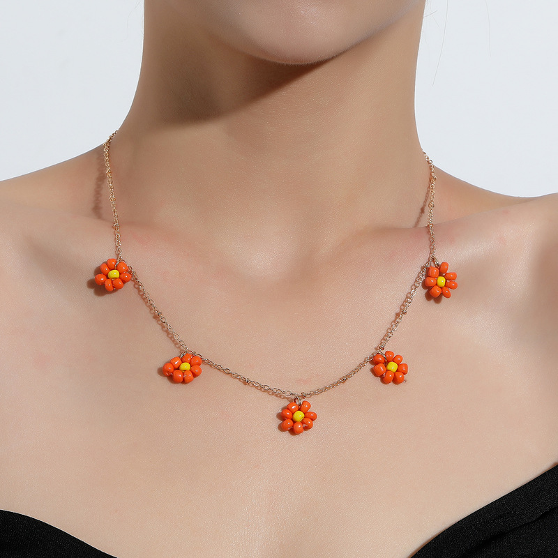Bohemian Trendy Daisy Flower Seed Bead Choker Pendant Chain Necklace for Women Girl Wedding Party Jewelry Gift