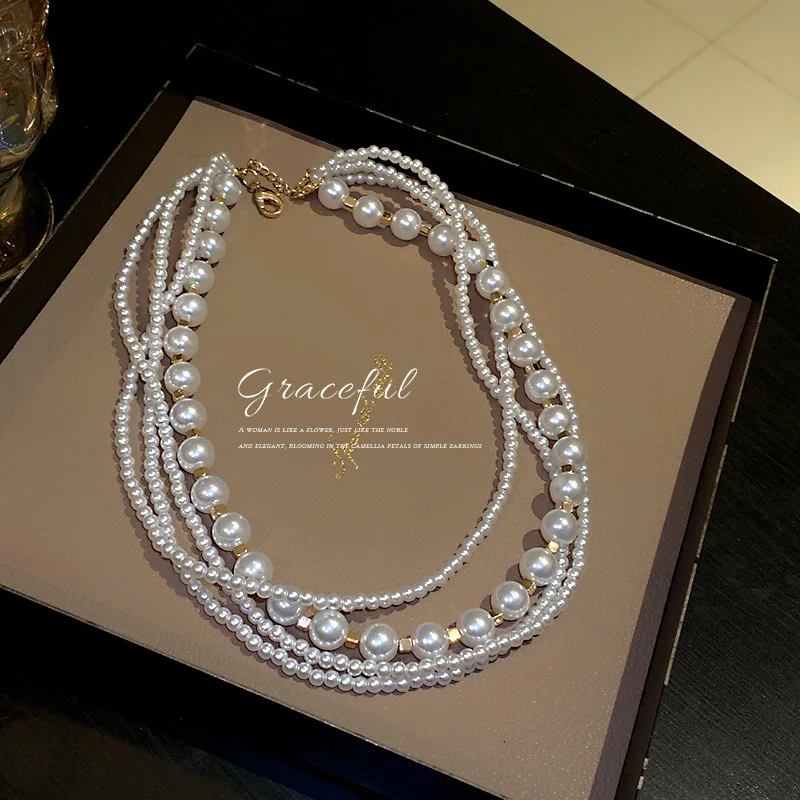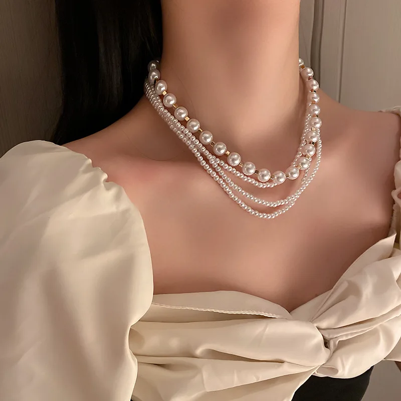 Bohemian Women Imitation Pearl Choker Necklace Multi Layer Long Necklace for Collars Statement Necklace Summer Jewelry