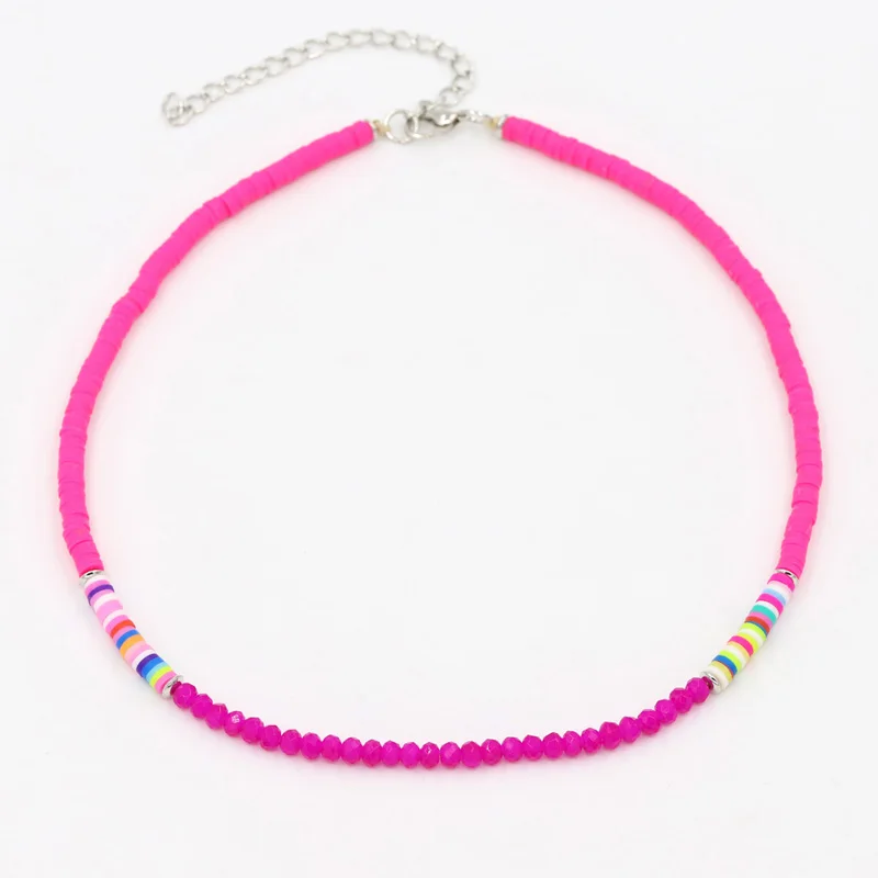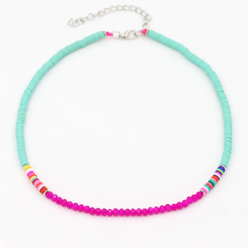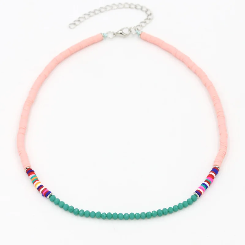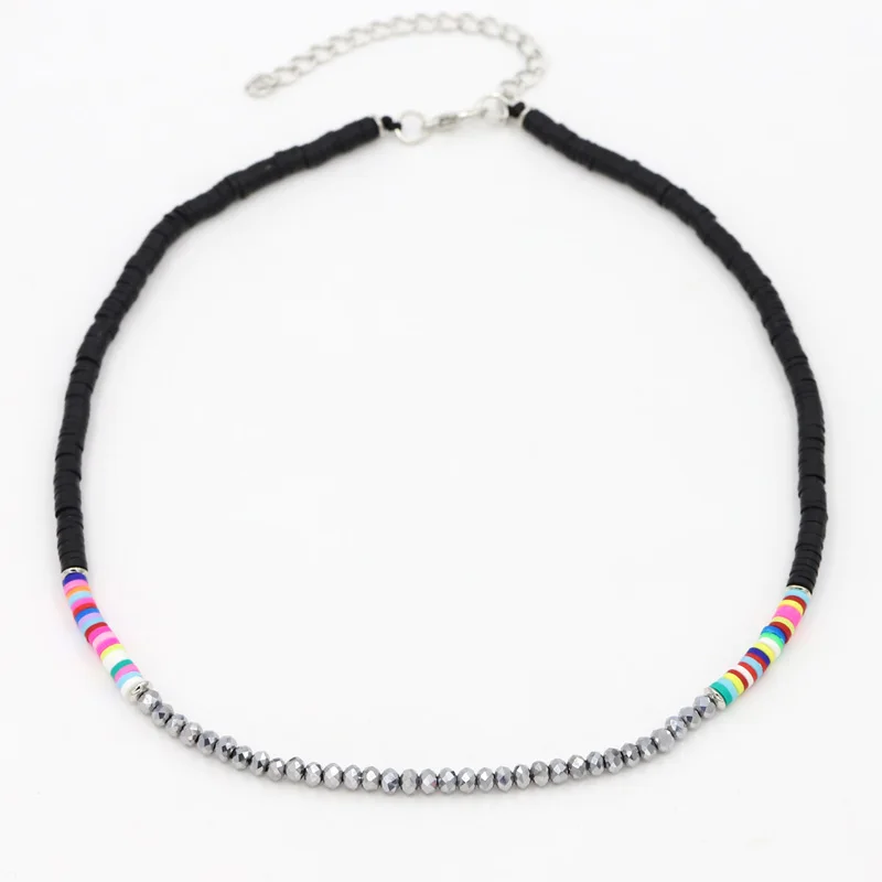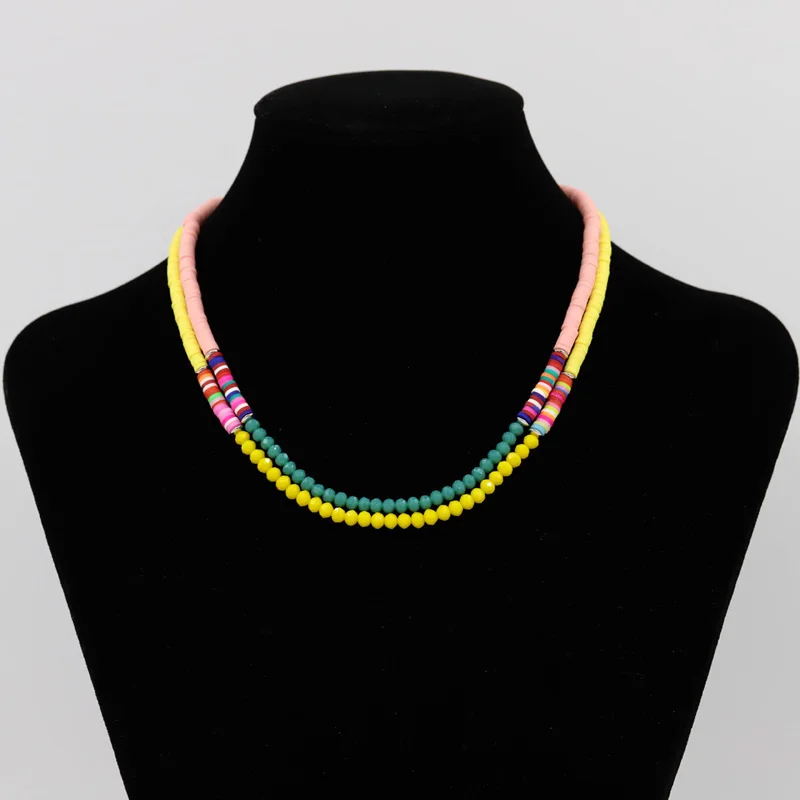 Bohemian Women's Necklace Multicolor Polymer Clay Crystal String Adjustable Choker Necklace Female Beach Jewelry