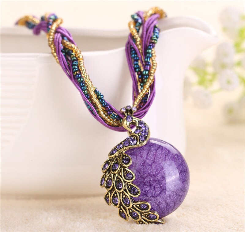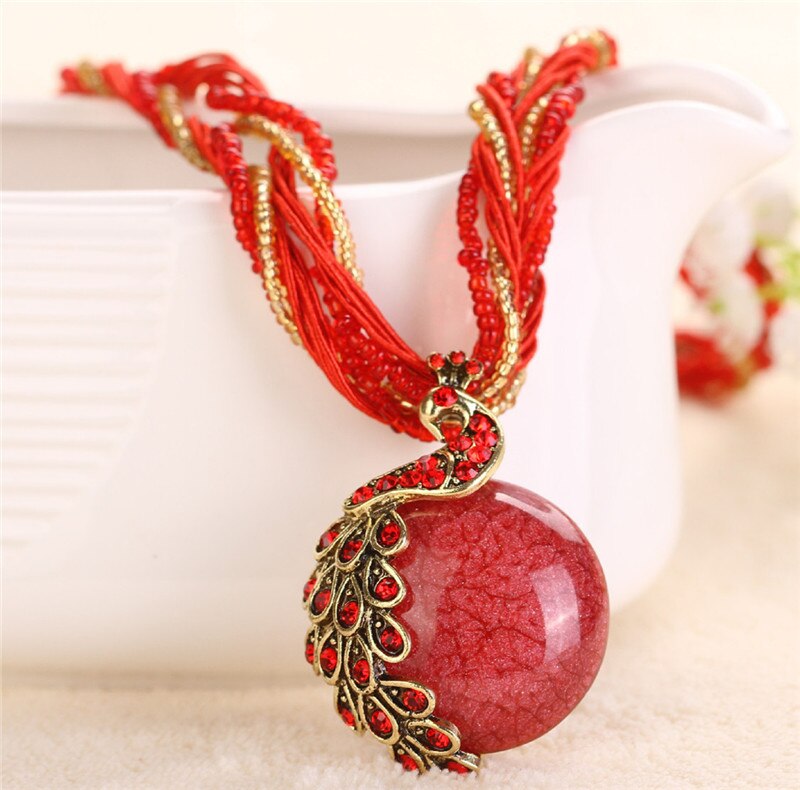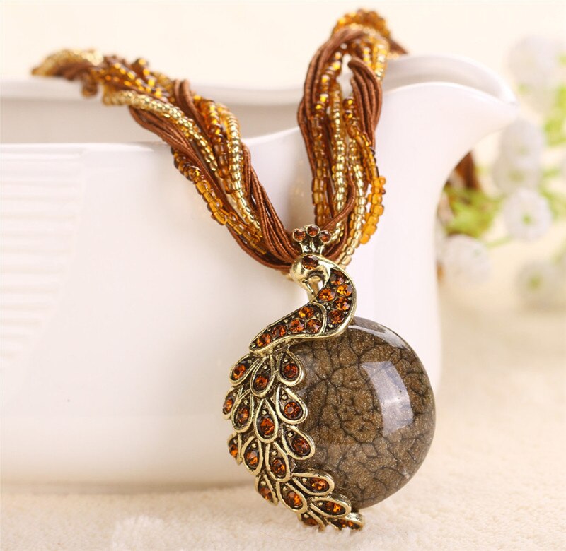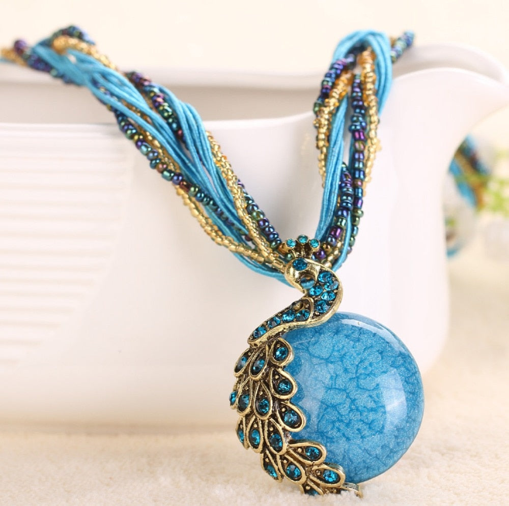 Boho Ethnic Jewelry choker Handmade Pendant Necklace Natural Stone Bead Peacock statement Maxi Necklace For Women Girls Gifts