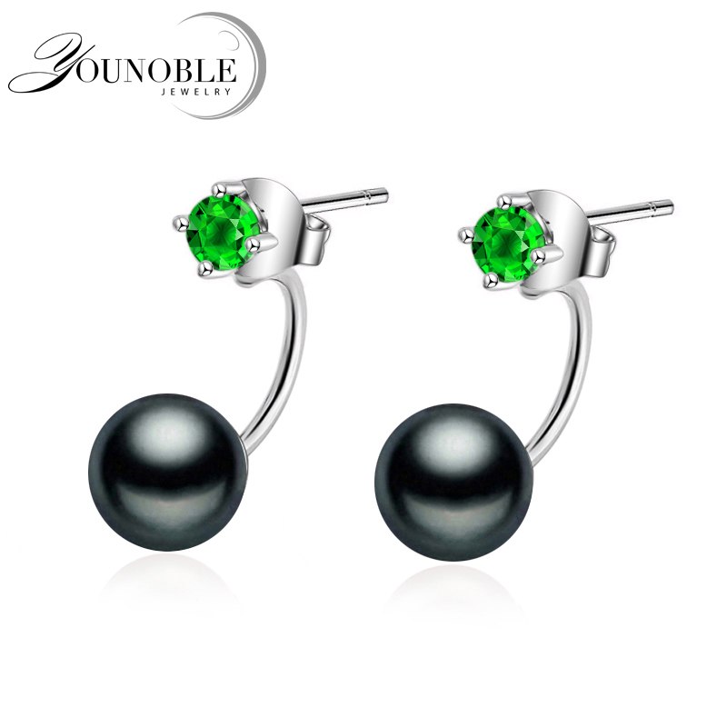 Boho fashion women's earrings,girl's best gift 925 sterling silver natural black pearl earrings