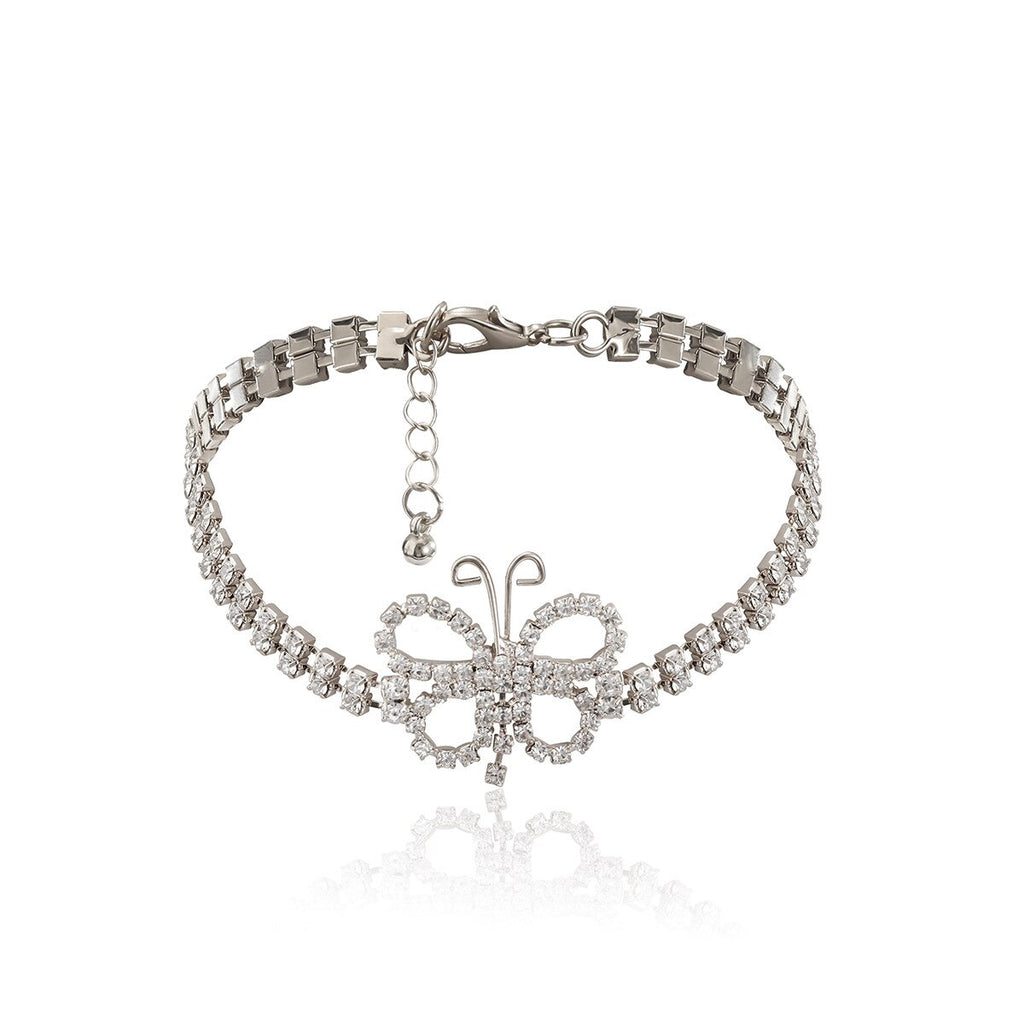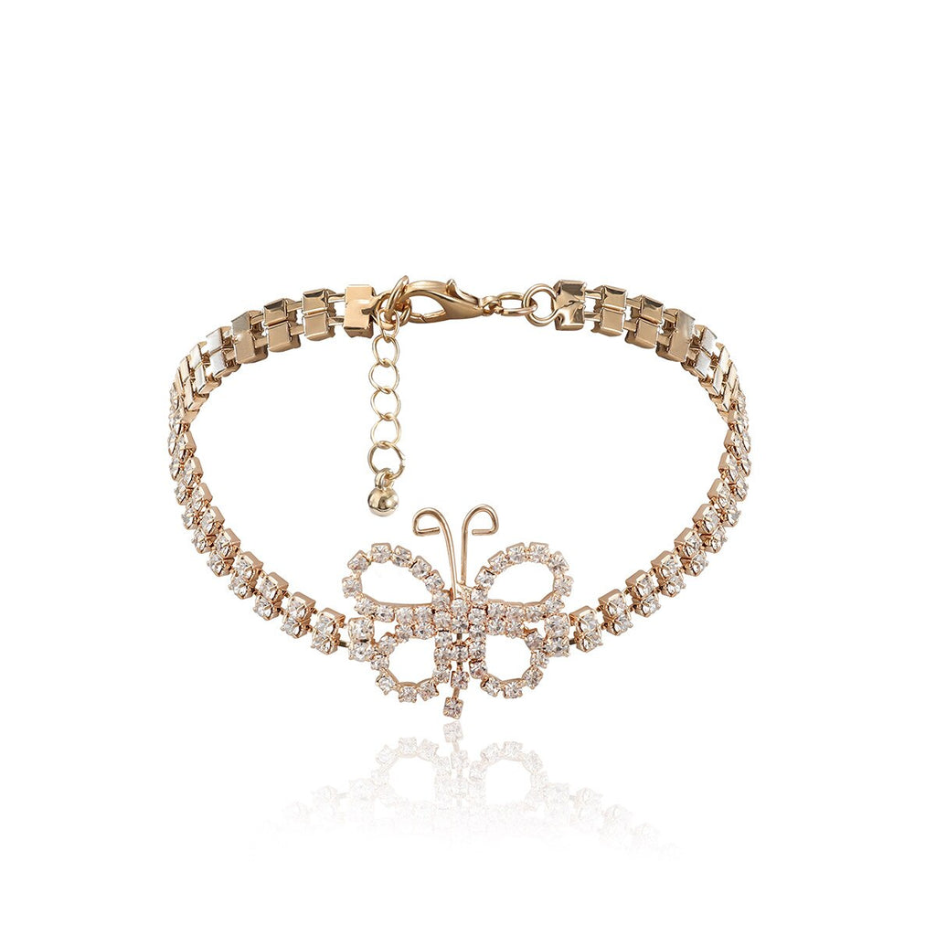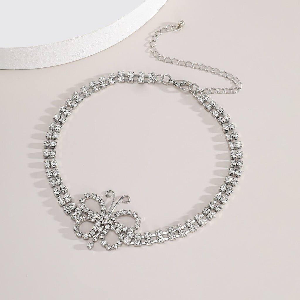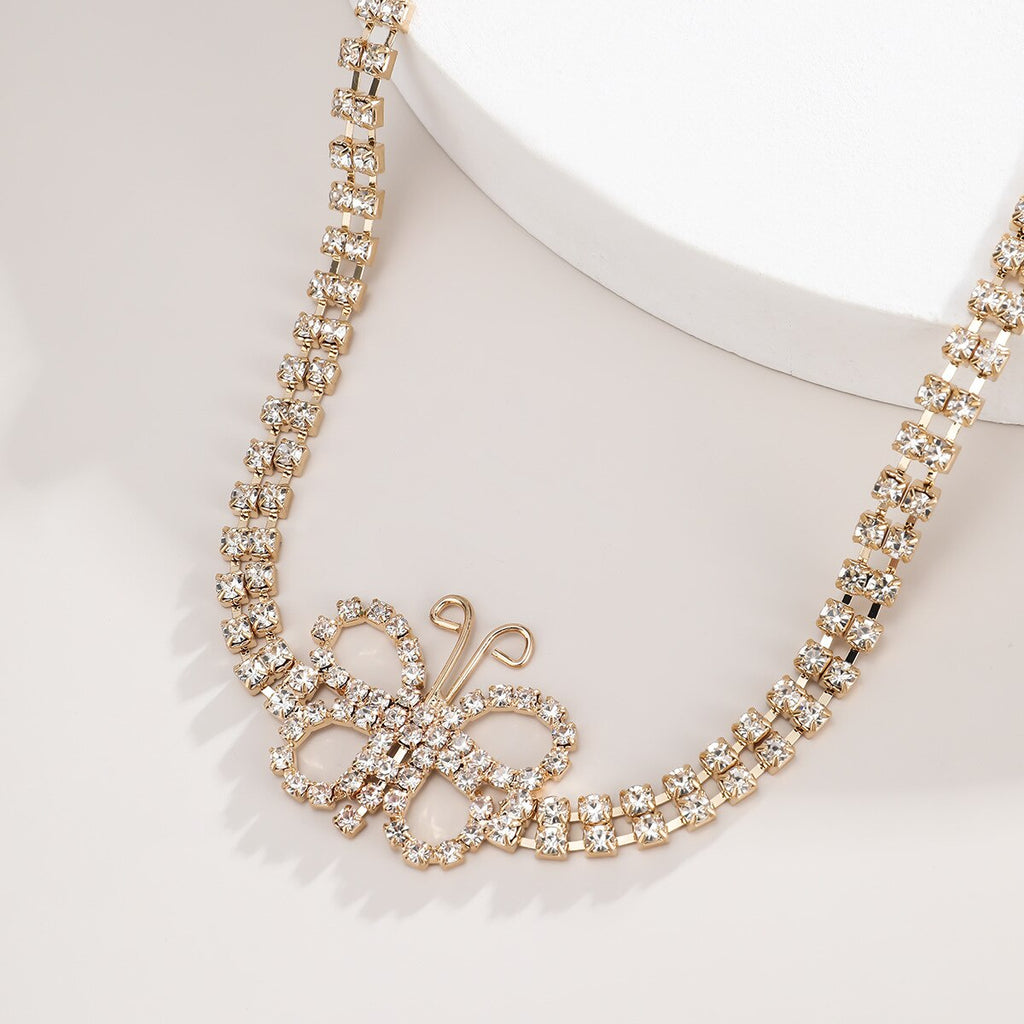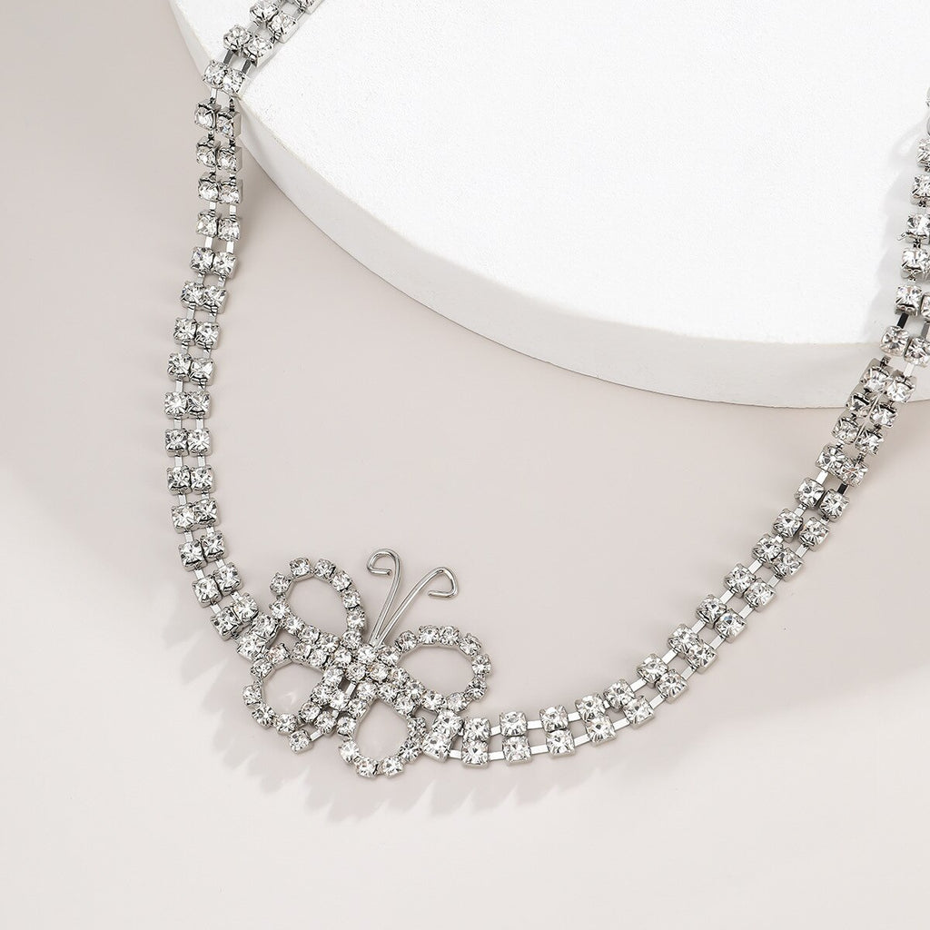 Boho Rhinestone Hollow Out Butterfly Charm With Crystal Chain Necklaces Bijoux For Women Elegant Choker Jewelry