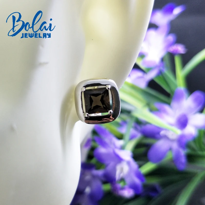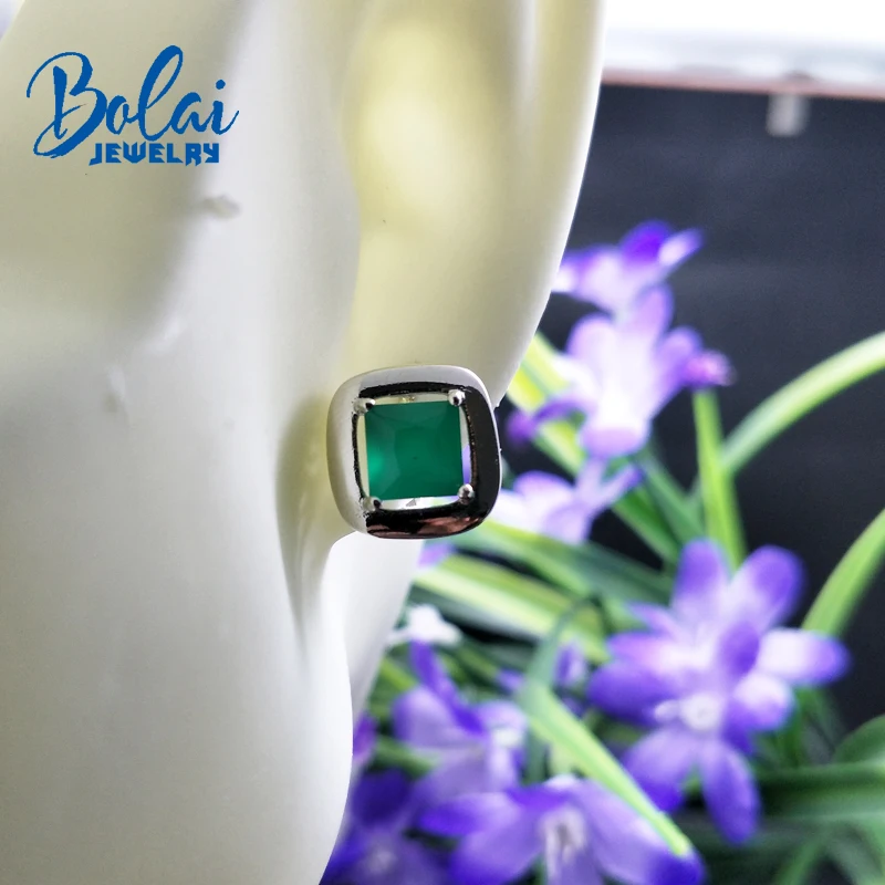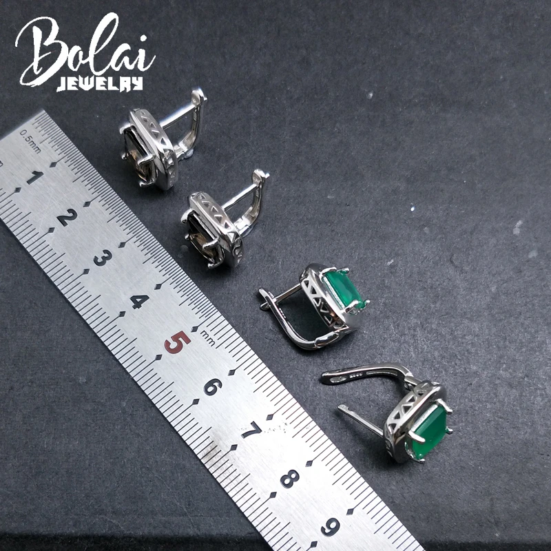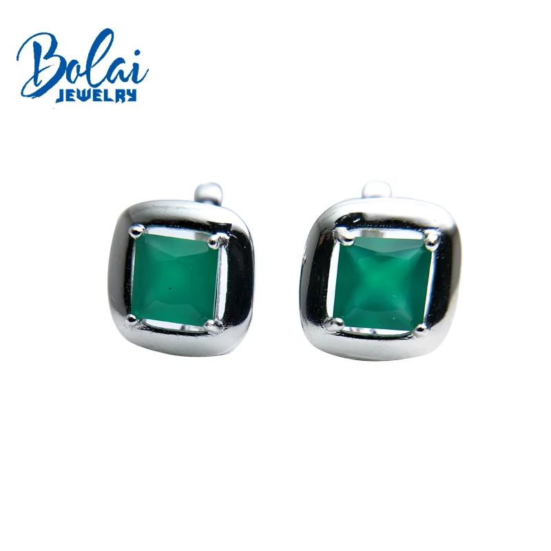 Bolaijewelry,925 silver fine jewlery with earrings natural green agate and smoky Square7.0mm girl of choice Christmas box choice