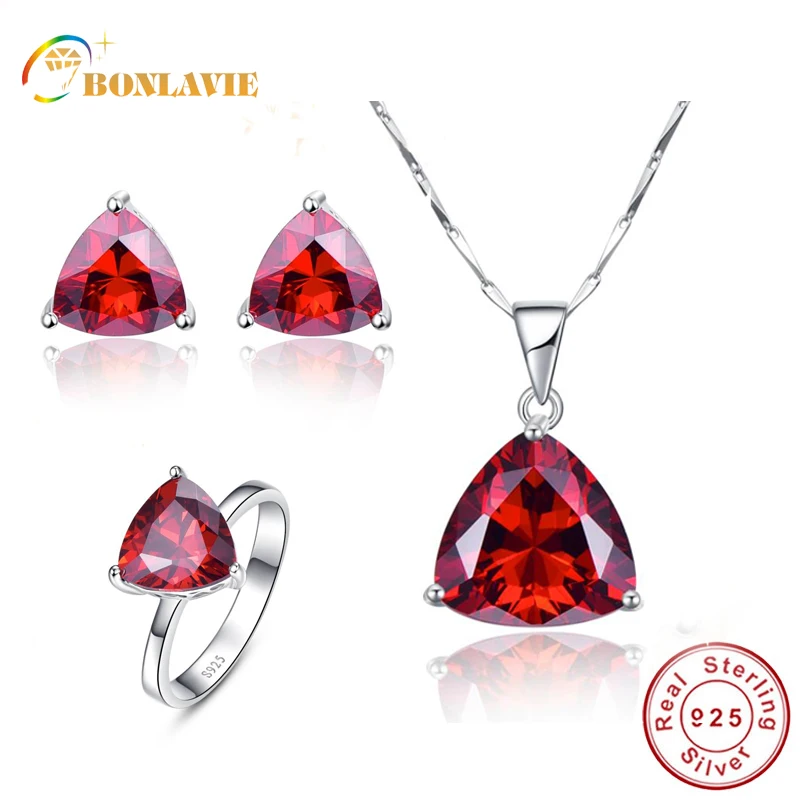 Triangle Natural Garnet 925 Sterling Silver jewelry sets wedding bands woman engagement necklace/earring/ring sets gift