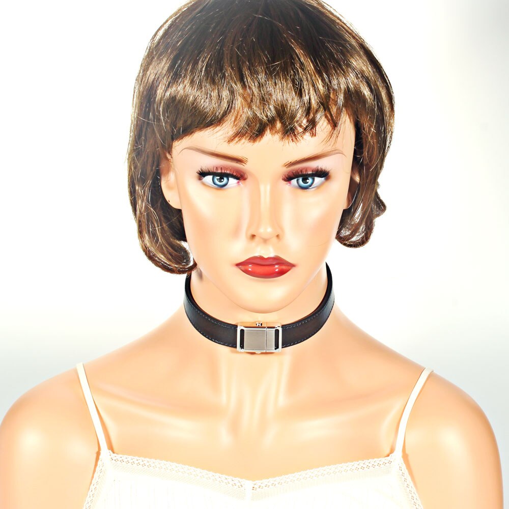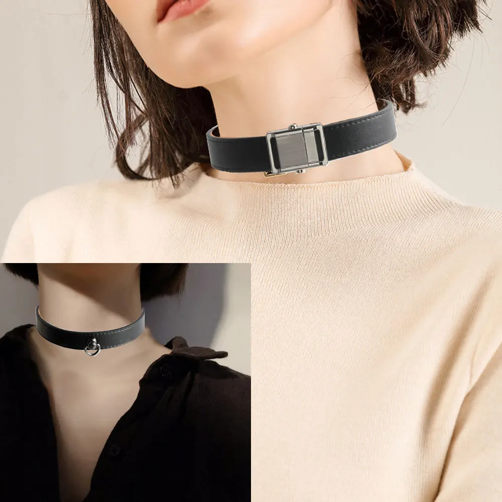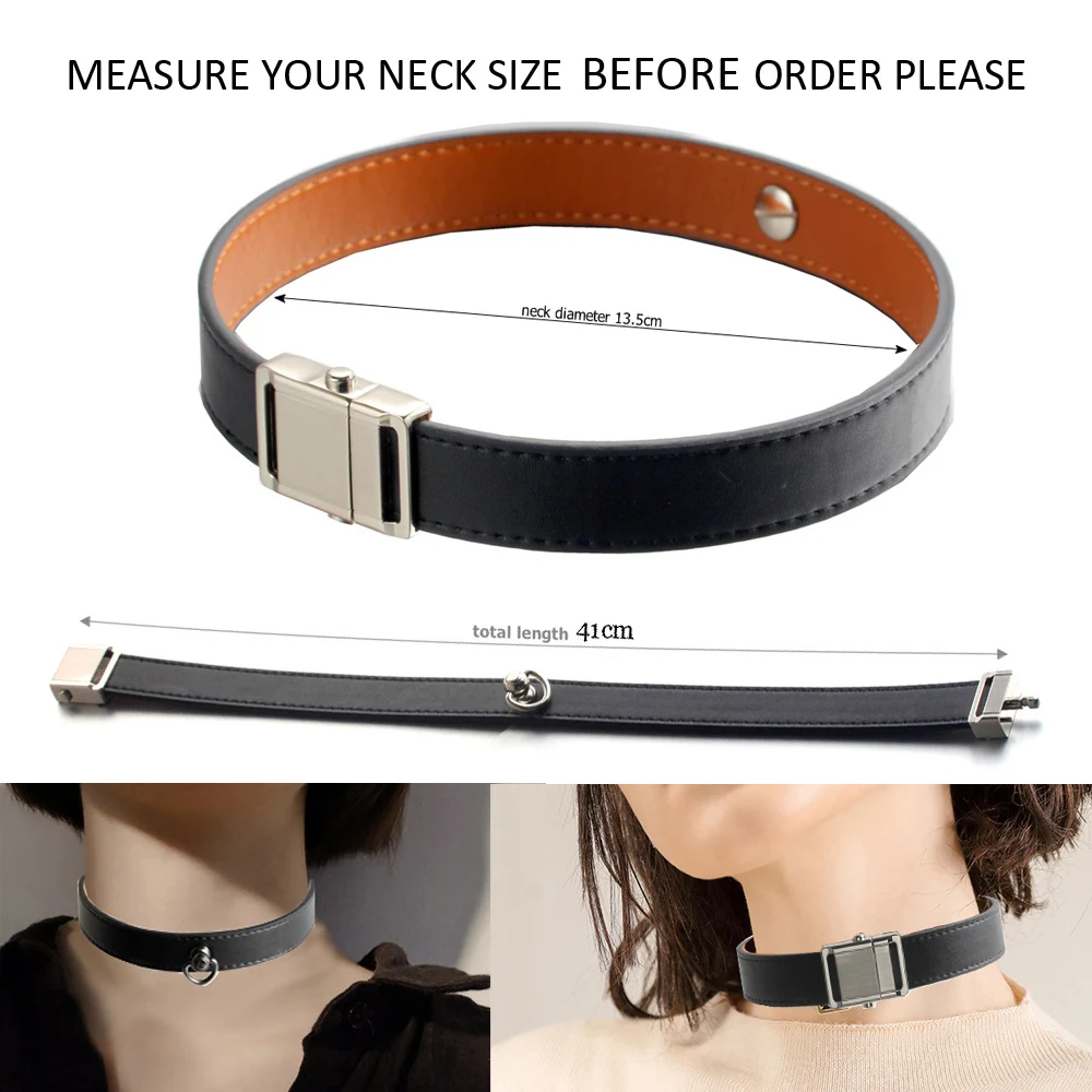 brand Leather button buckle Leather necklace collar Choker Necklaces 41CM