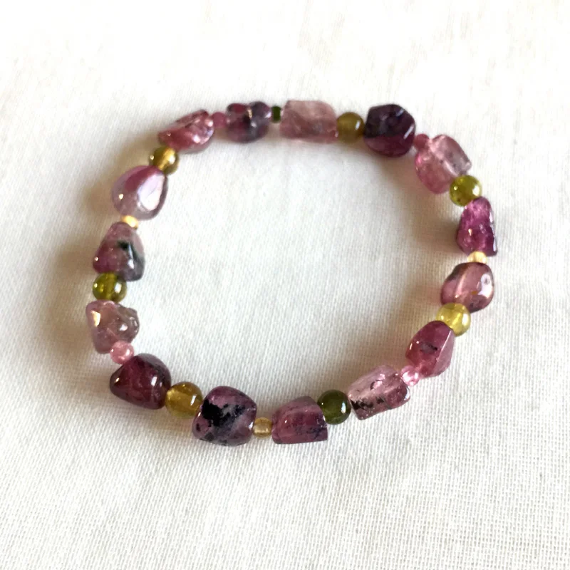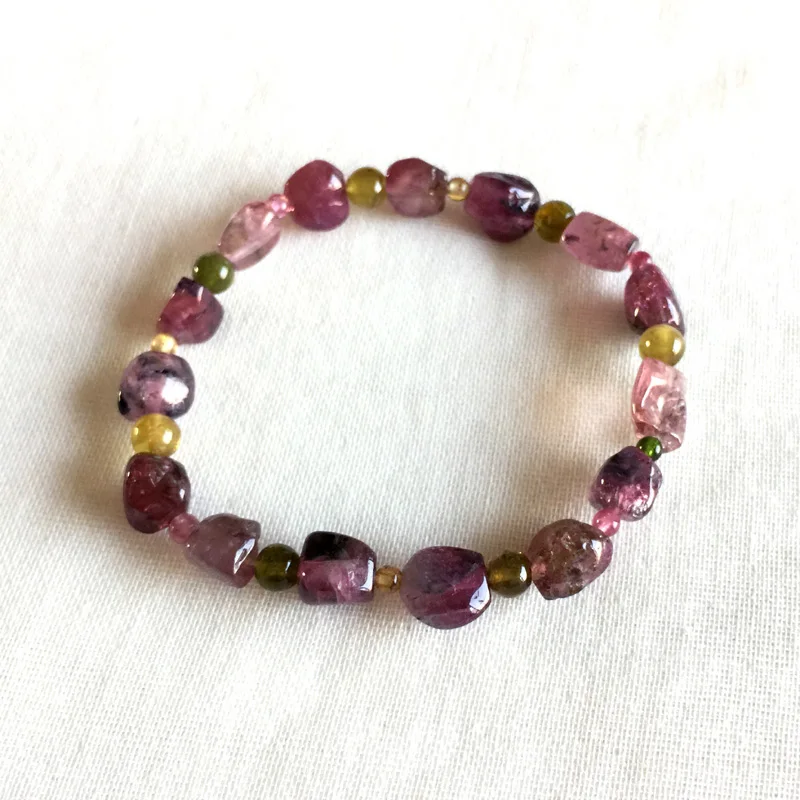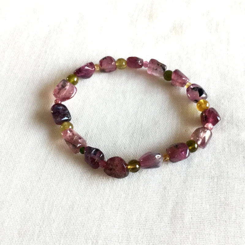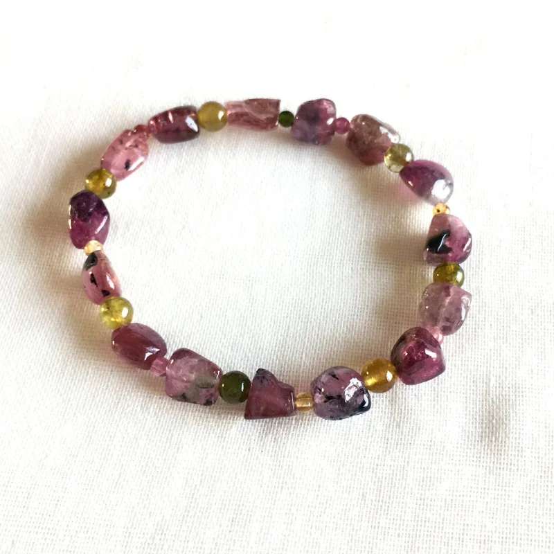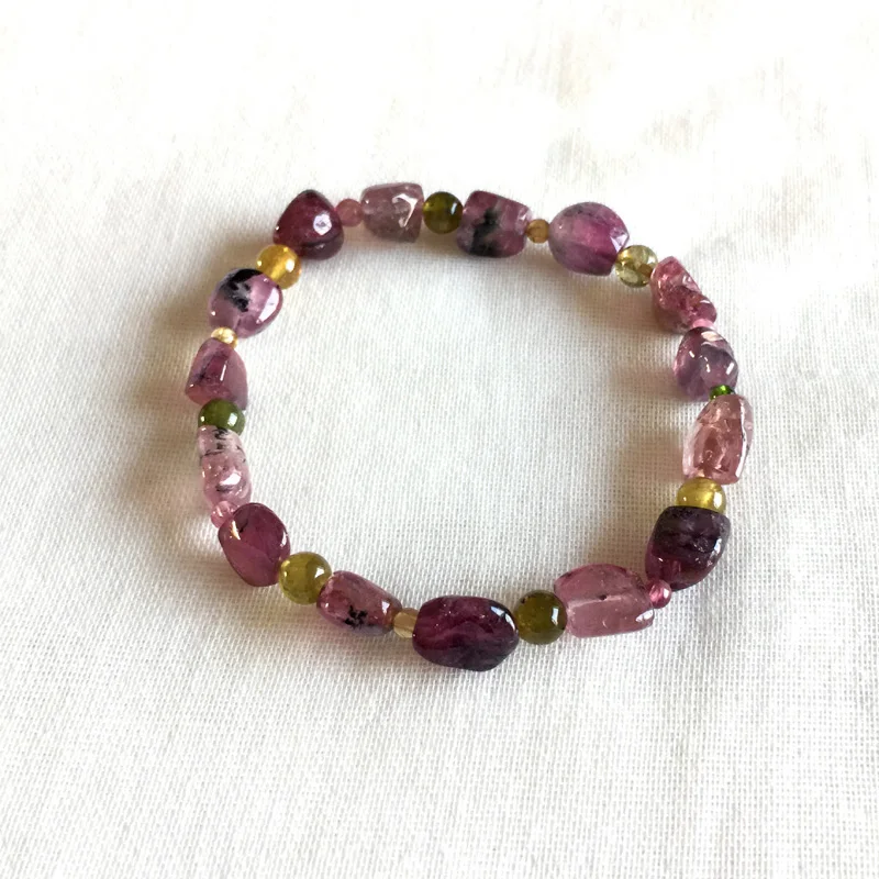 Brazil Natural Genuine Colorful Purple Pink Red Tourmaline Multi-color Bracelet Nugget Round beads 6x8mm 05160