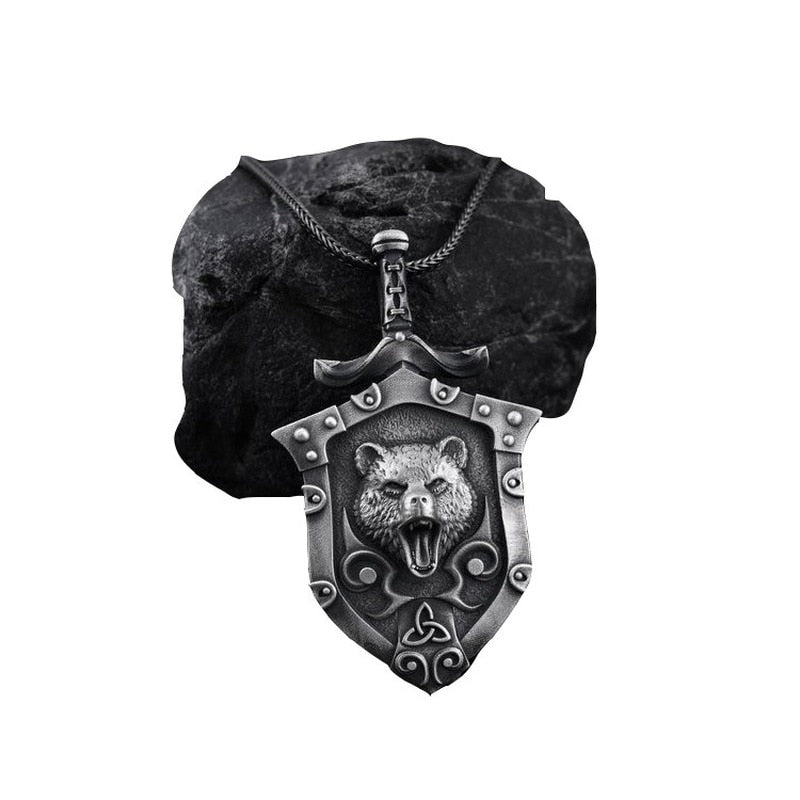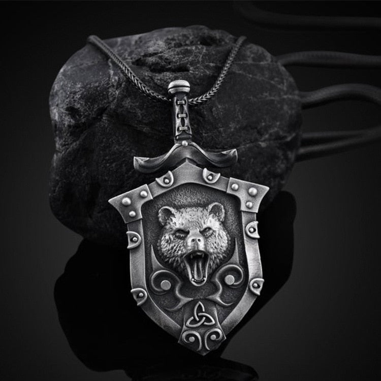 Brown Bear Shield Metal Pendant Men's Hip Hop Punk Necklace