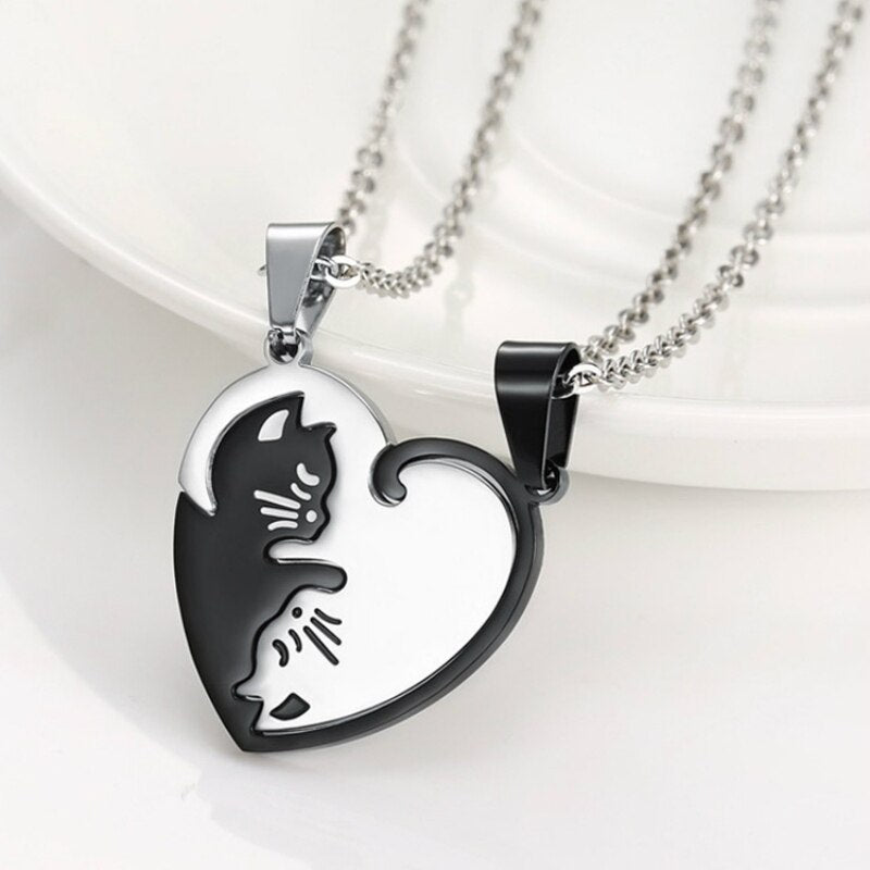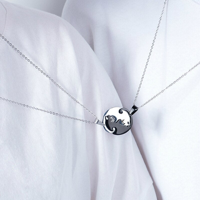 BTS-669 de acero inoxidable abrazo gato colgante cosido collar moda 2021 nueva pareja collar de los hombres y las mujeres joyería de moda al por mayor