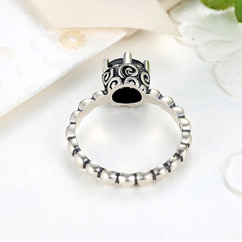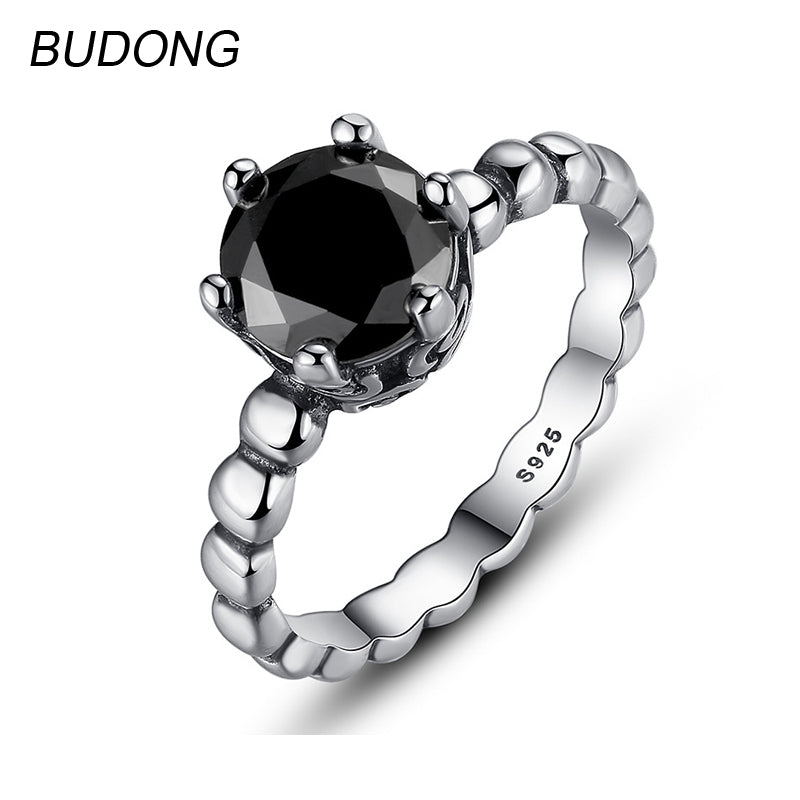 925 Sterling Silver Rings for Women Fine Jewelry Fashion Black AAA Cubic Zircon Prong Finger Ring Size 6/7/8/9