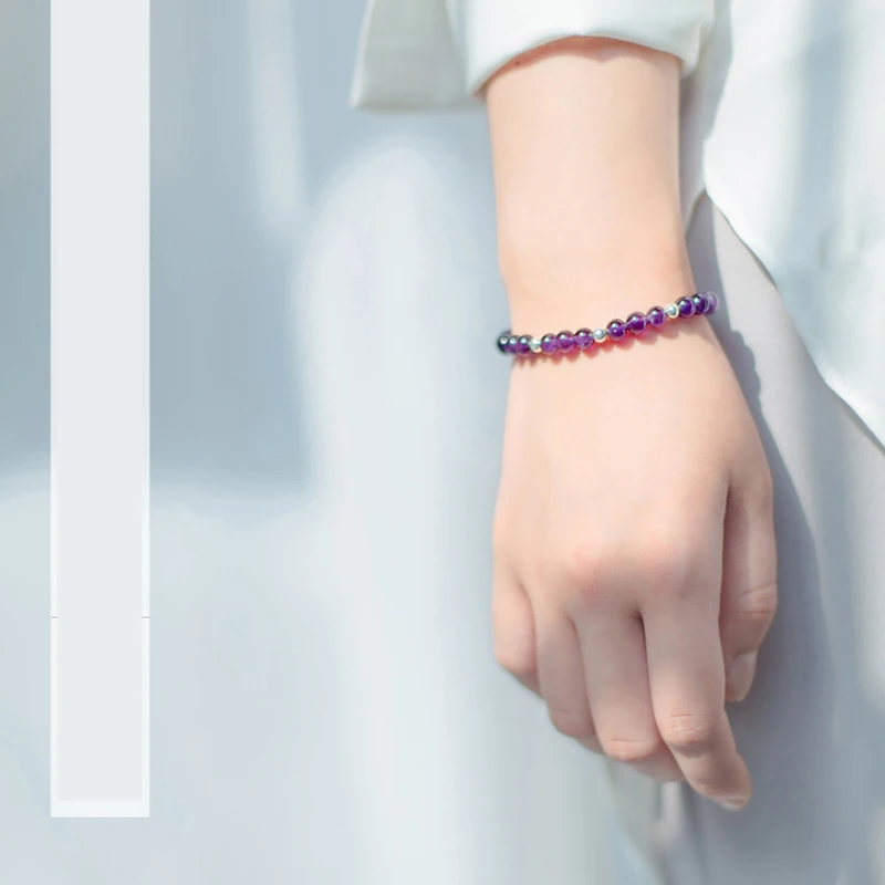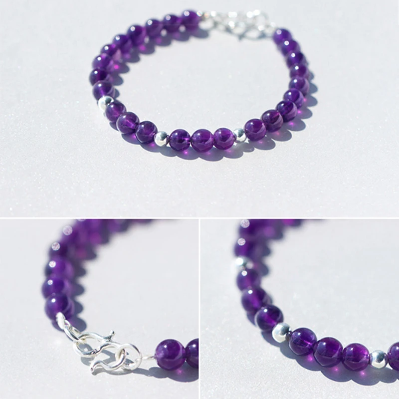 Amethyst Beads Bracelets For Women Elegant Keep Smart Silence And Pr For Love Fine Jewelry Suit For Birthd Gift