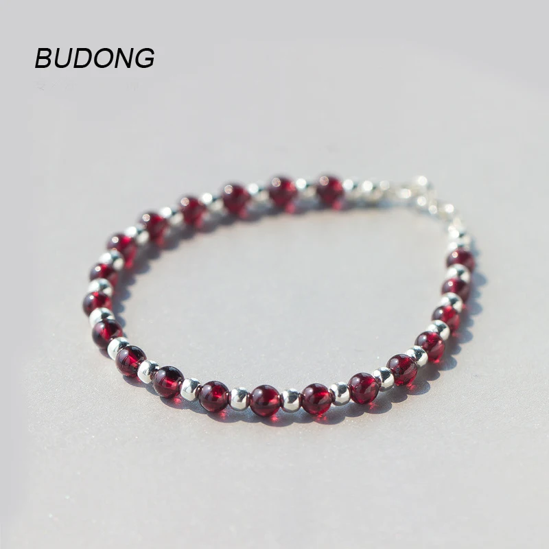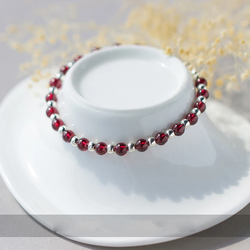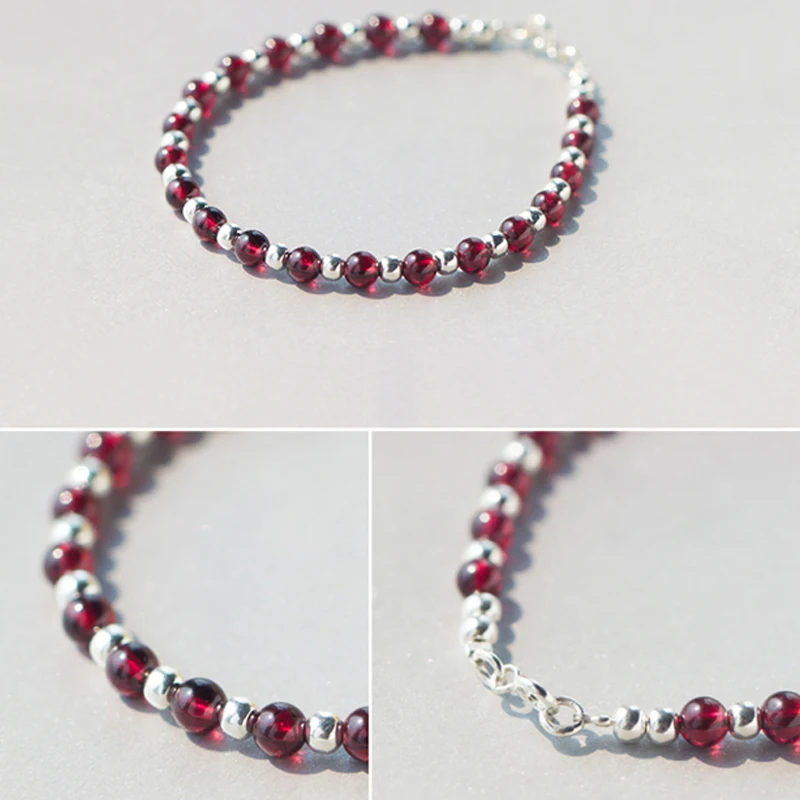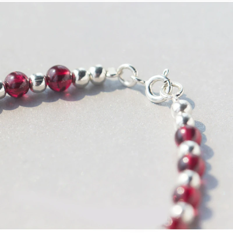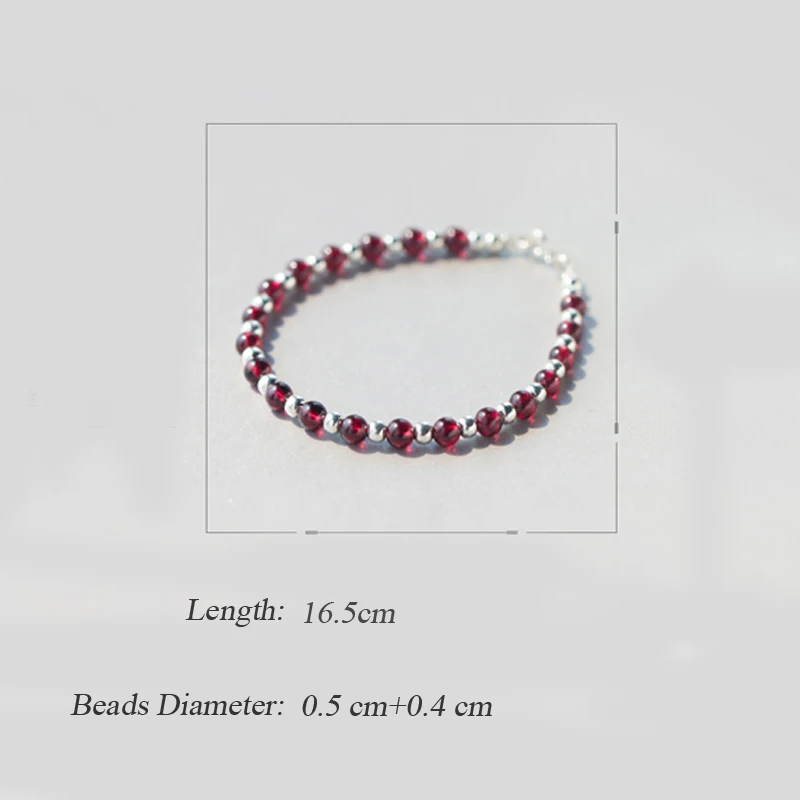 Garnet And Silver Beads Chain For Women Bracelet 16.5 cm In Length Classic Natural Stone Fine Jewelry