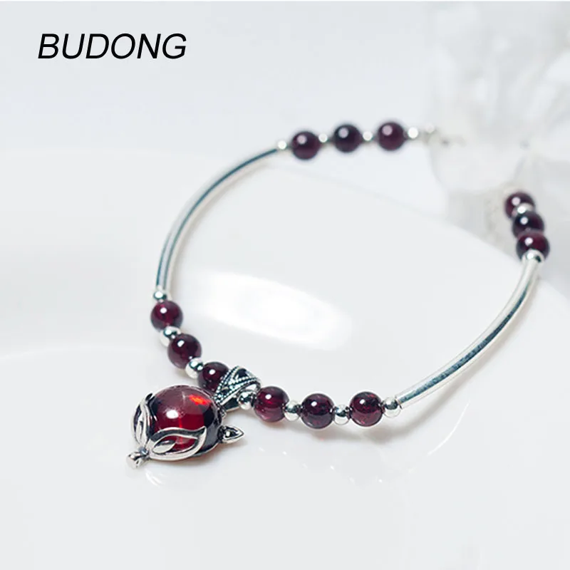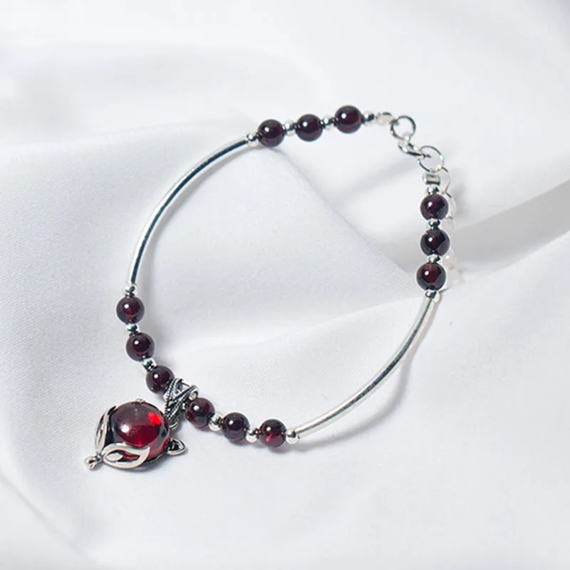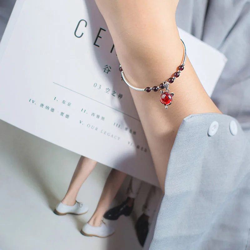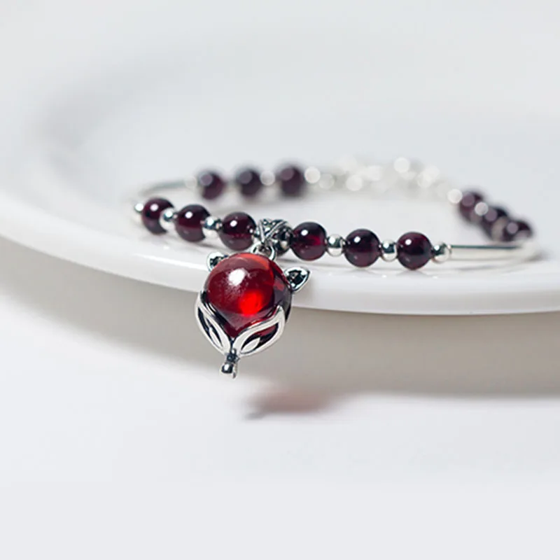 Garnet Fox Bracelets For Women With 925 Sterling Silver And Round Garnet Beads Cute Fine Jewelry For Lady Christmas Gift