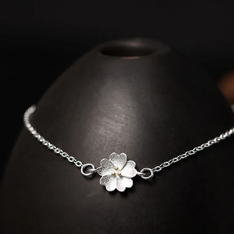 Genuine 925 Sterling Bracelet for Women Fashion Cute Flower Simple Link Chain Bracelets Fine Jewelry Party Accessories
