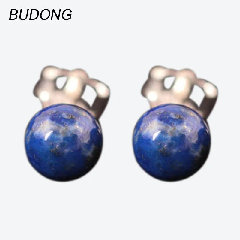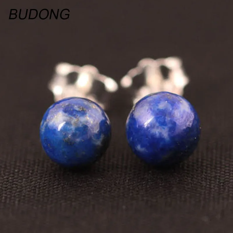 Real 925 Sterling Silver Earring for Women Fine Jewelry Round Ball Natural Blue Lapis Stone Stud Earring Girl Gift