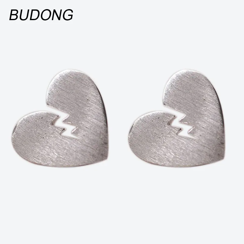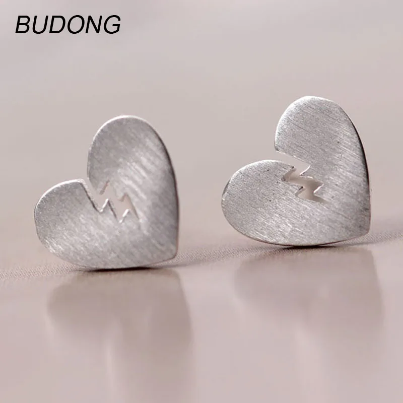 Real 925 Sterling Silver Earring for Women Fine Jewelry Small Creative Heart Heartbroken Design Silver 925 Stud Earring