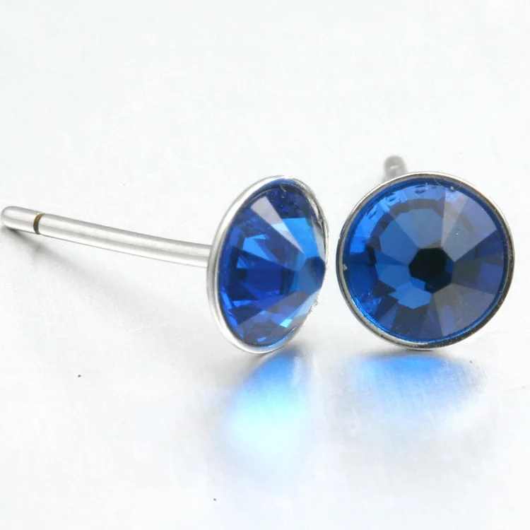 Real 925 Sterling Silver Stud Earring for Women Fashion Created Sapphire Blue Simple Earring Fine Jewelry Accessories